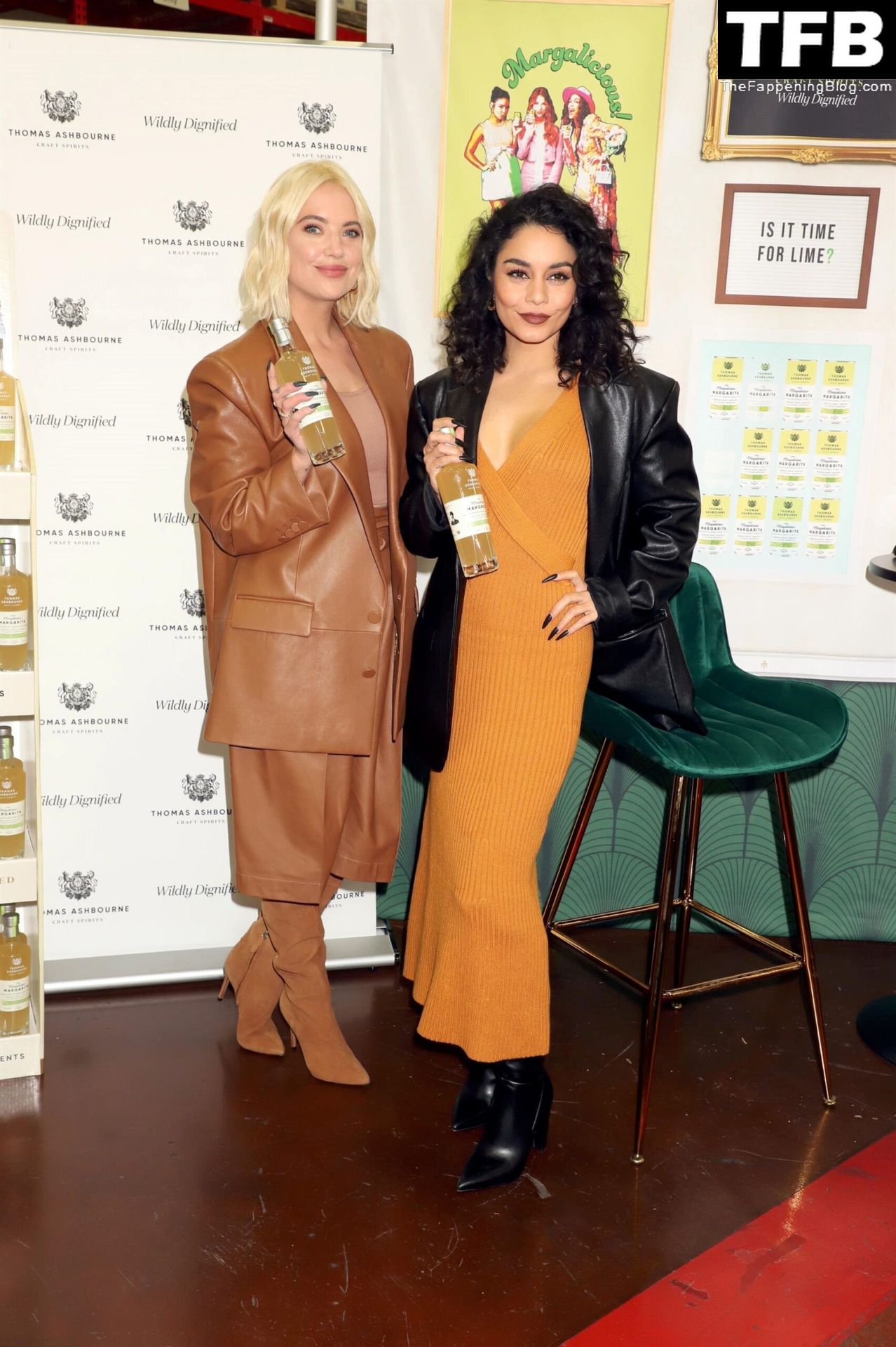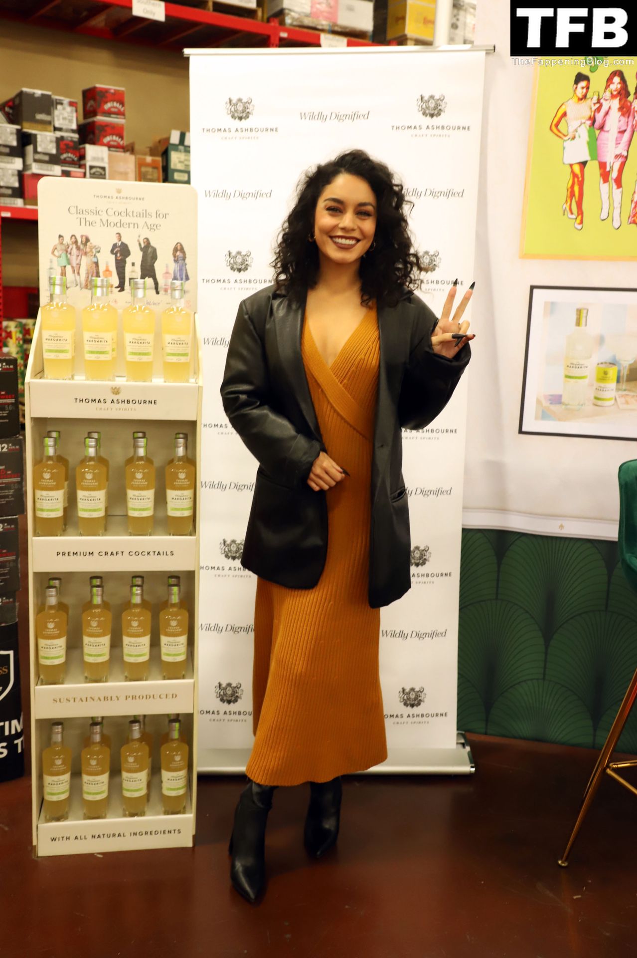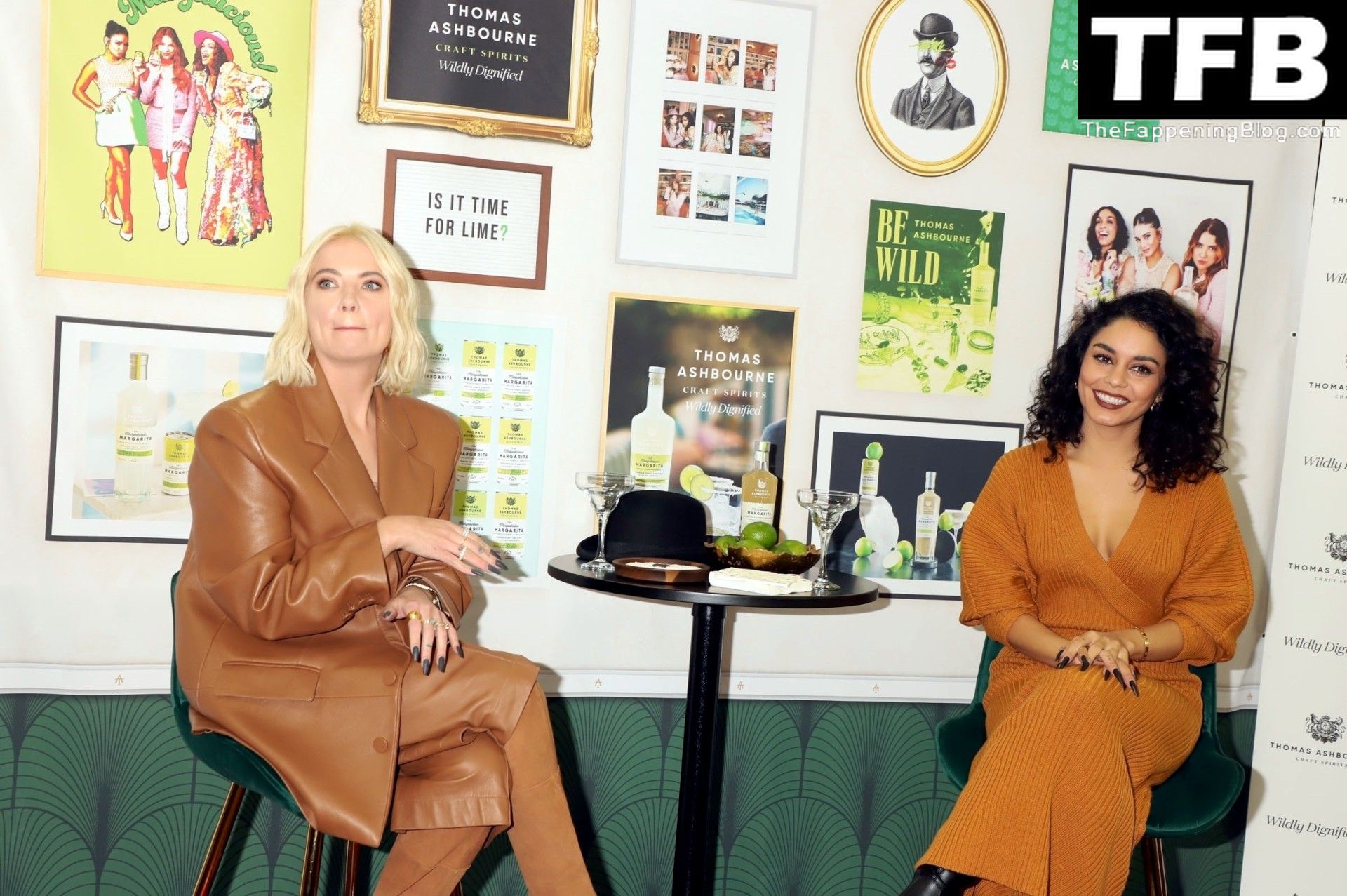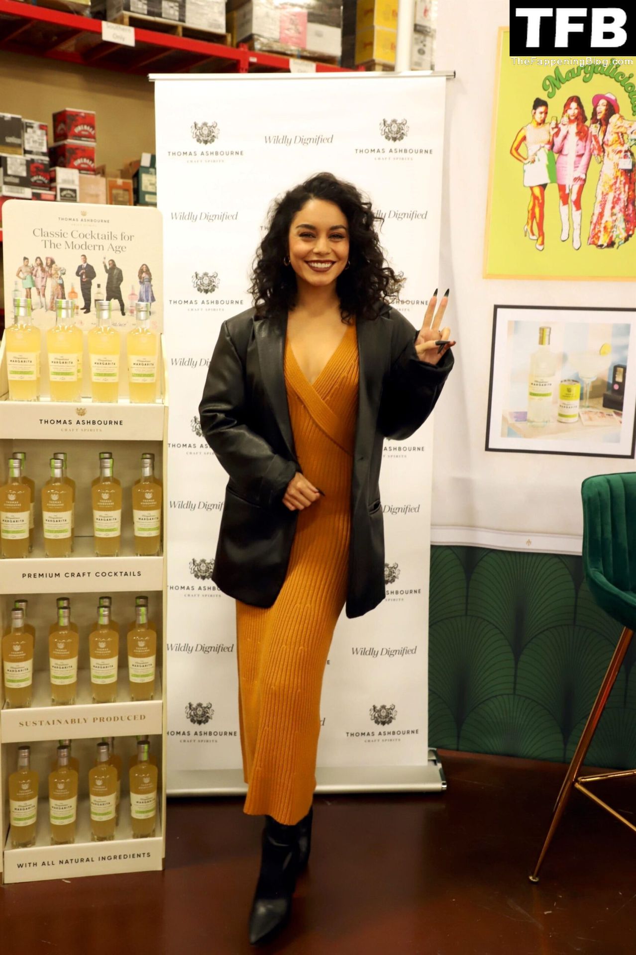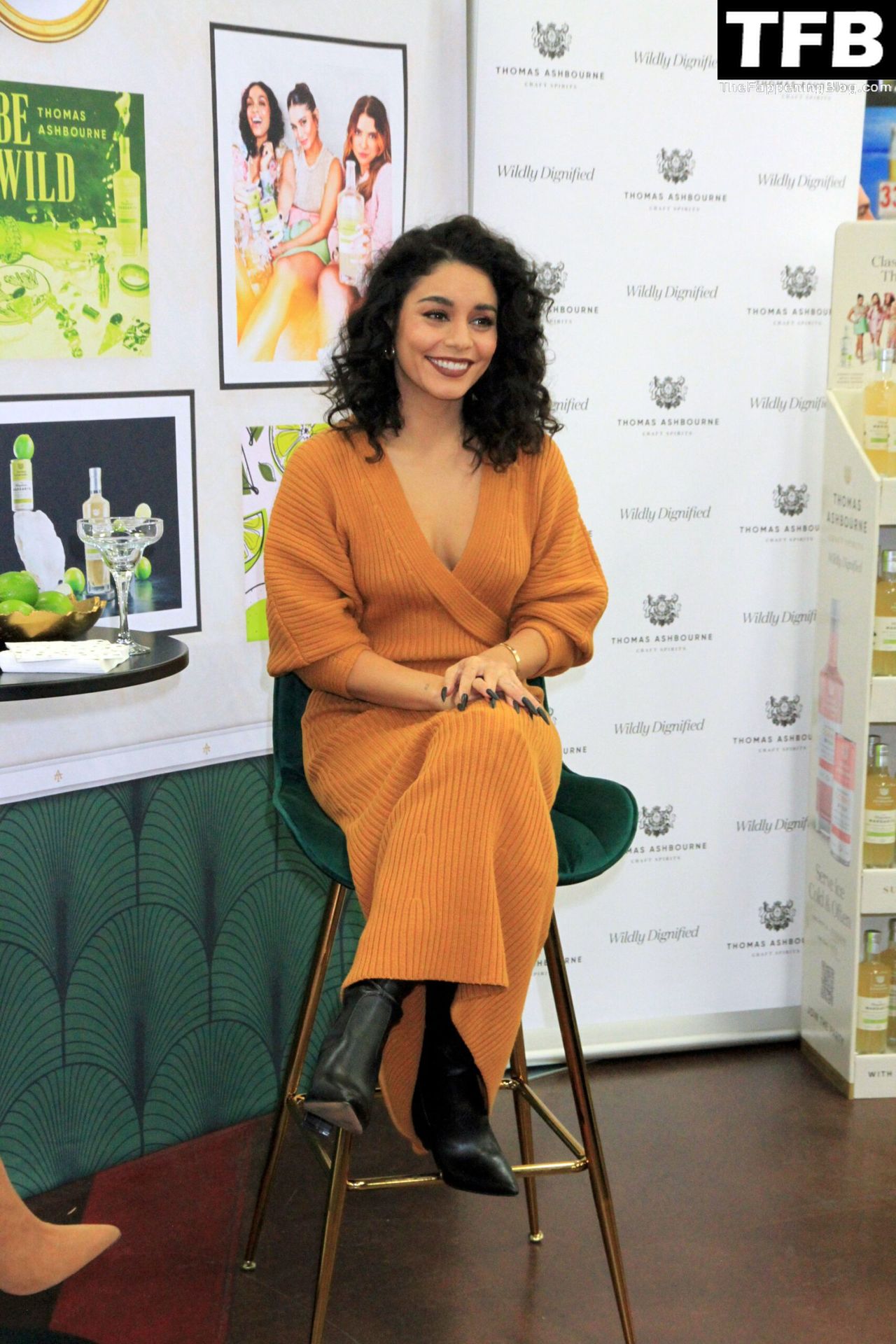 Atrizes Ashley Benson e Vanessa Hudgens assinam garrafas de Thomas Achbourne Craft Spirits em Las Vegas, 11/04/2022.