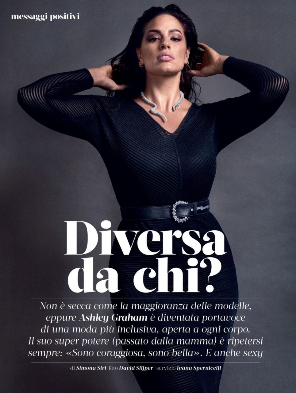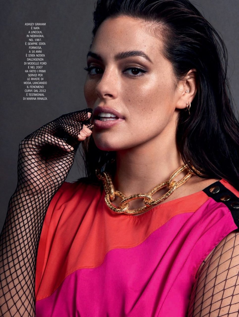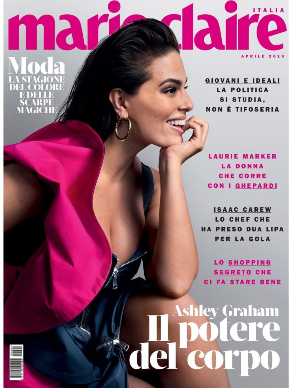 Aqui estão algumas fotos quentes não nuas de Ashley Graham por David Slijper para Ashley Graham Marie Claire Itália (abril de 2019). A modelo plus size posa com diferentes vestidos, mostrando seu decote e pernas sensuais.