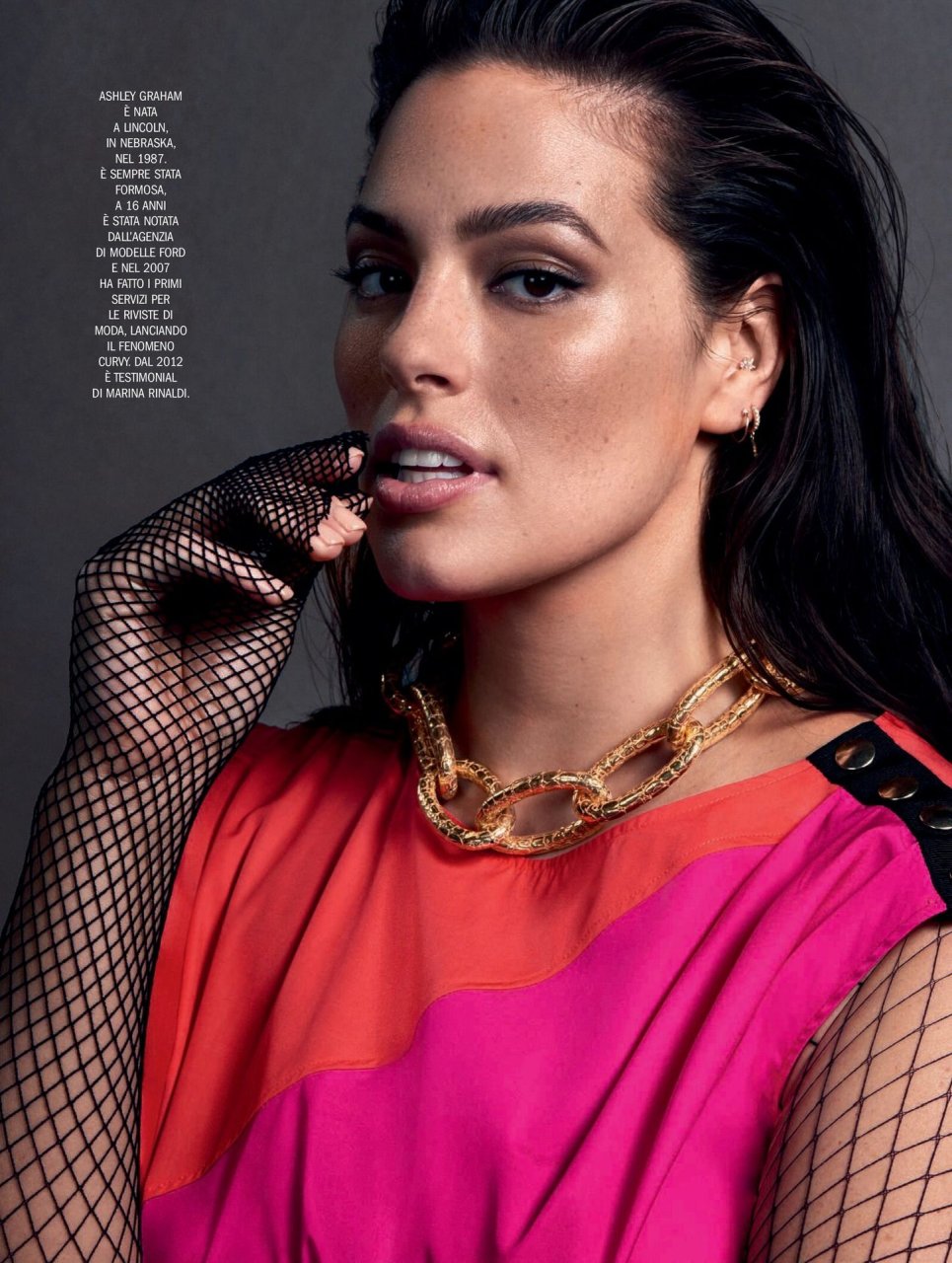 Aqui estão algumas fotos quentes não nuas de Ashley Graham por David Slijper para Ashley Graham Marie Claire Itália (abril de 2019). A modelo plus size posa com diferentes vestidos, mostrando seu decote e pernas sensuais.