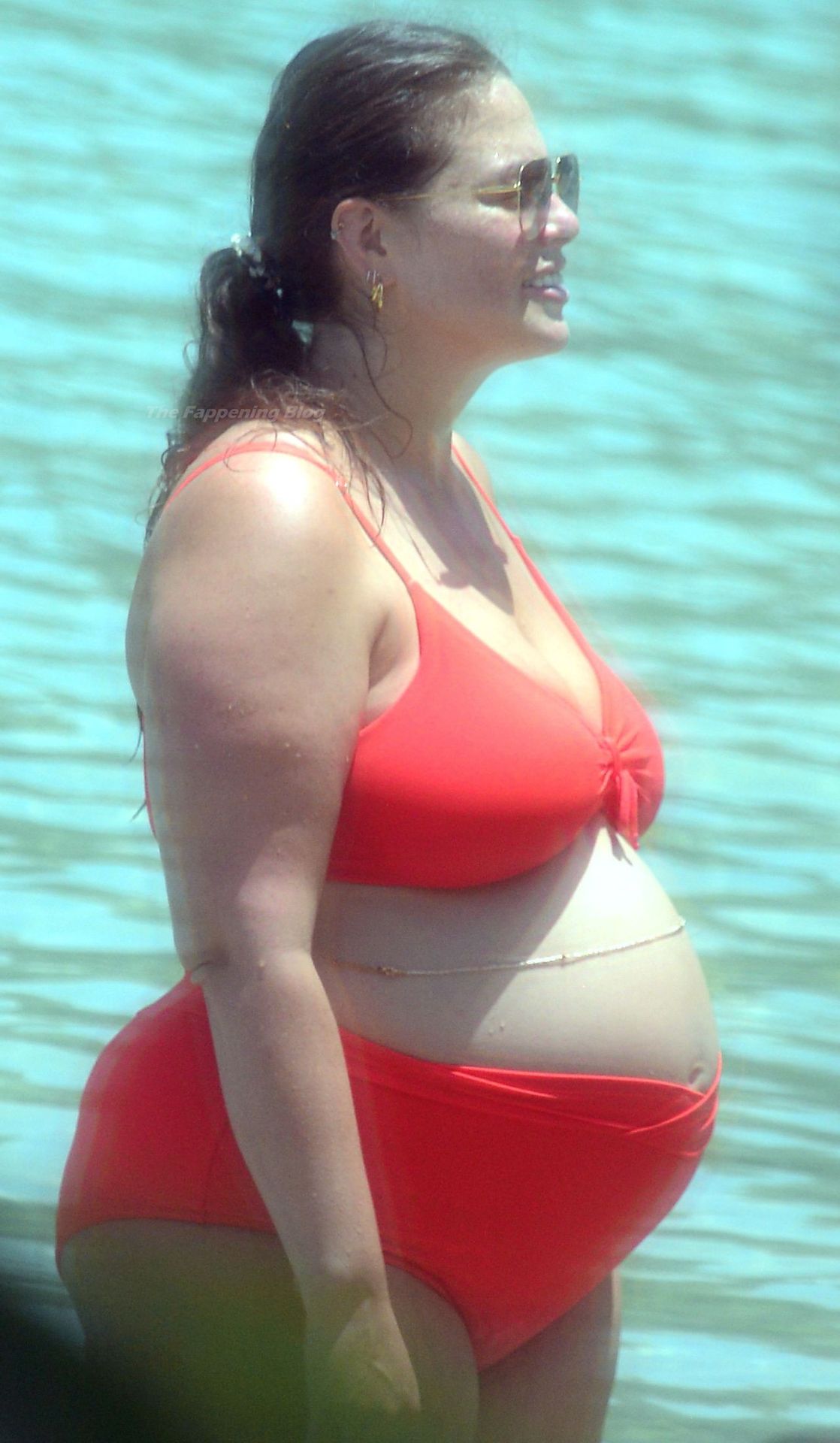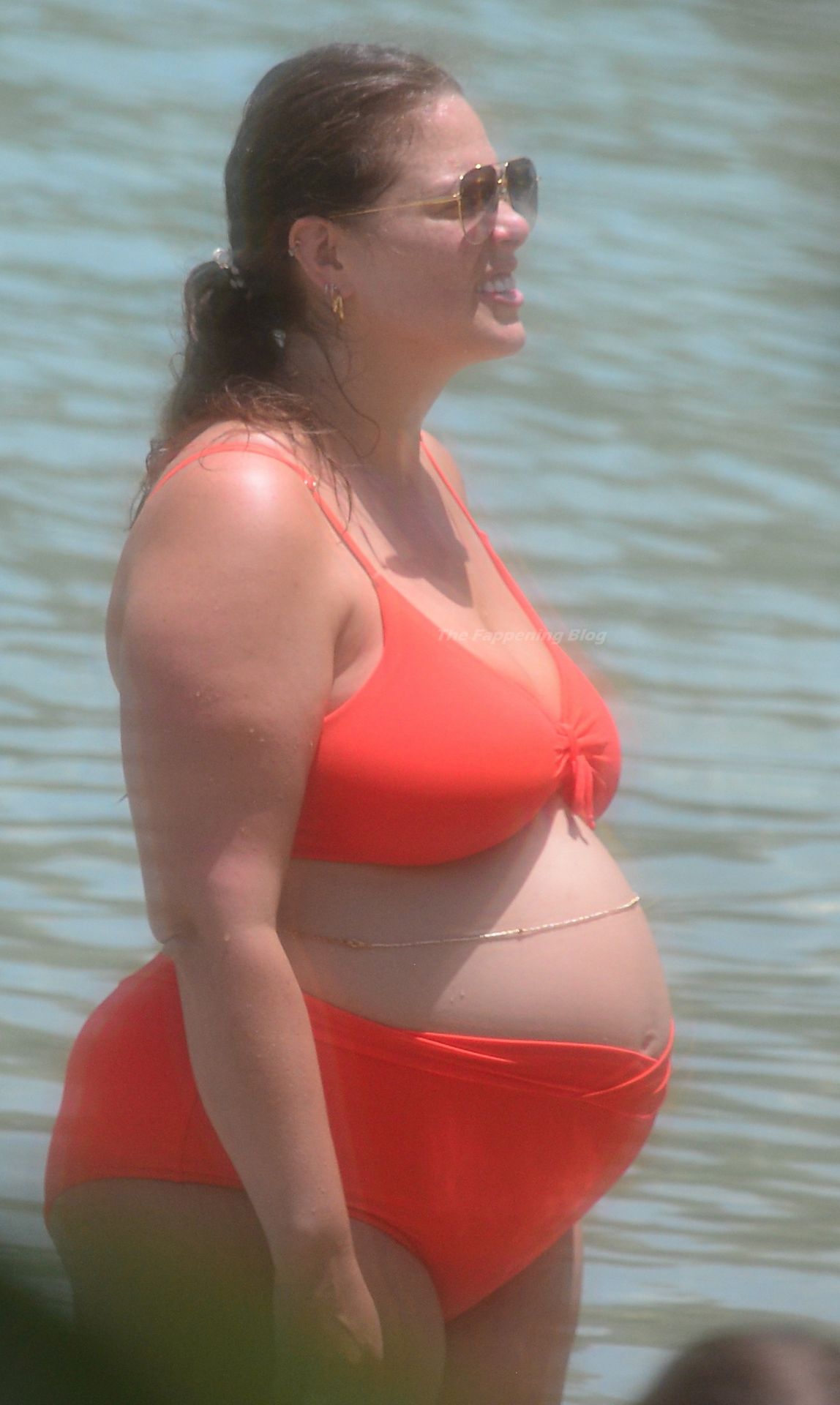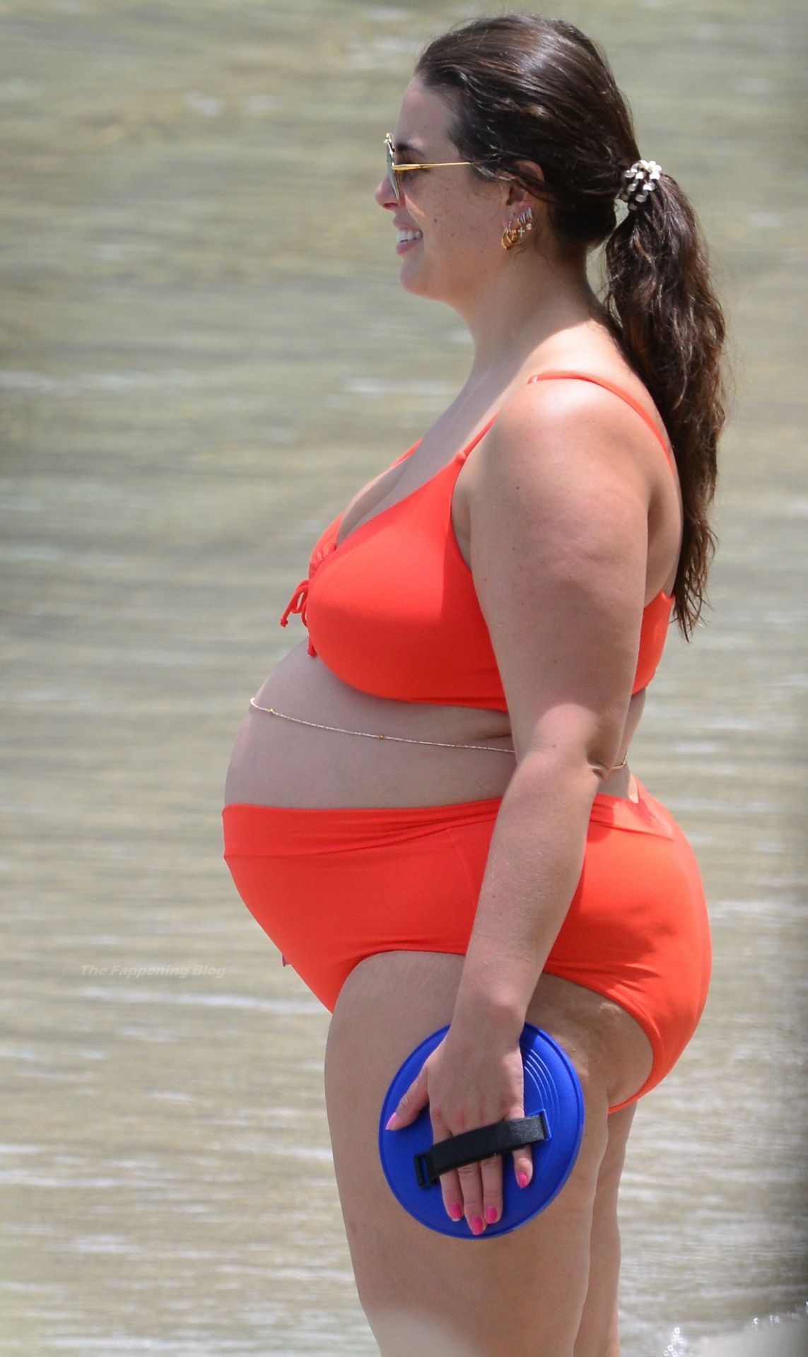 Ashley Graham é vista aproveitando suas férias na Jamaica, 20/08/2021. A supermodelo grávida foi vista relaxando na praia com sua família.