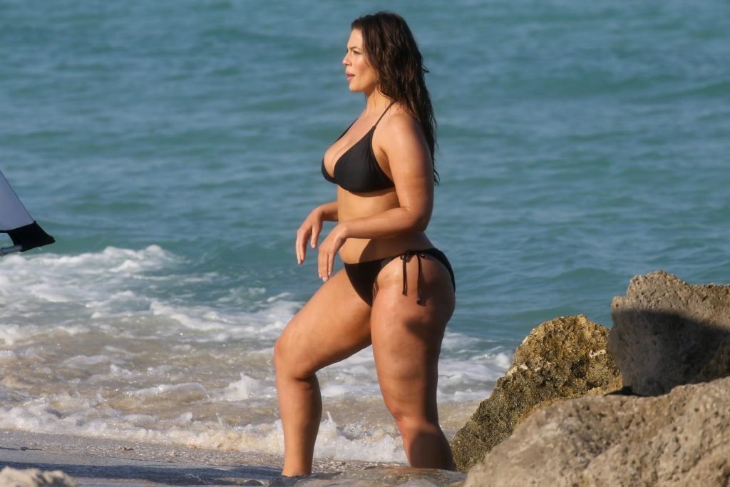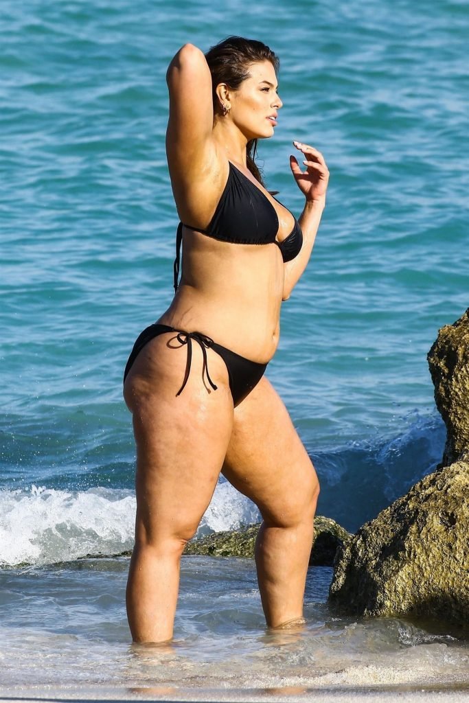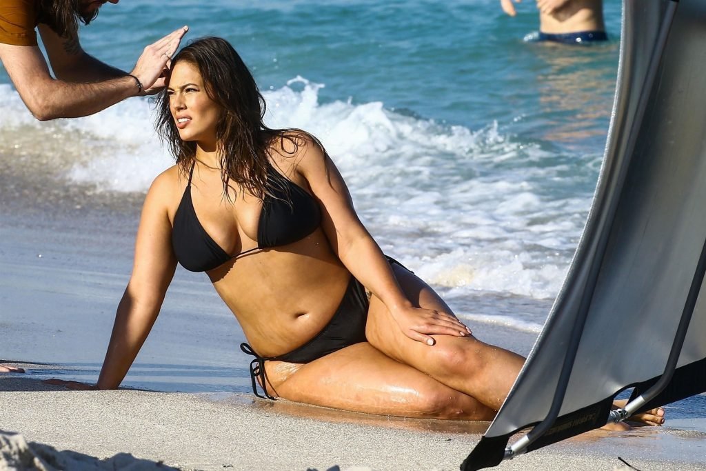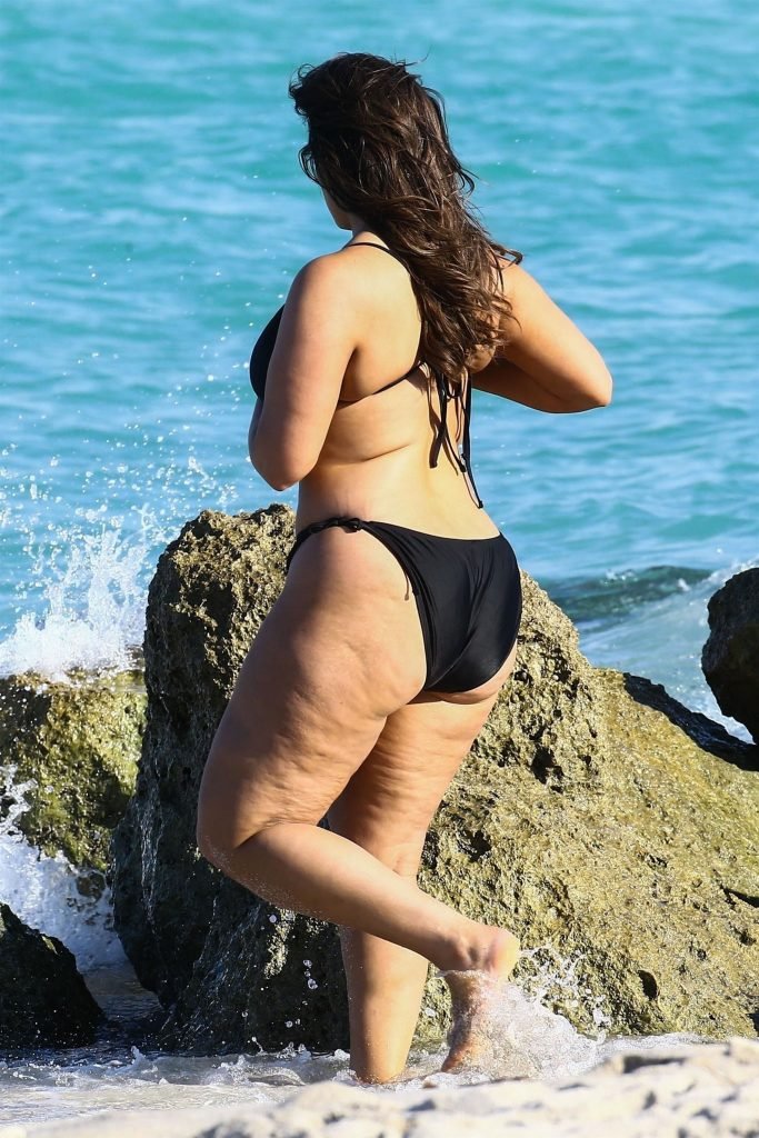 Ashley Graham é vista fazendo uma sessão de fotos habitual na praia em Miami, 14/03/2018. A modelo plus size de 30 anos exibiu seus grandes seios naturais, bumbum com celulite e pernas em biquínis pretos e maiô branco durante a sessão de fotos. Se você mantiver apenas a parte de cima, ficará bem.