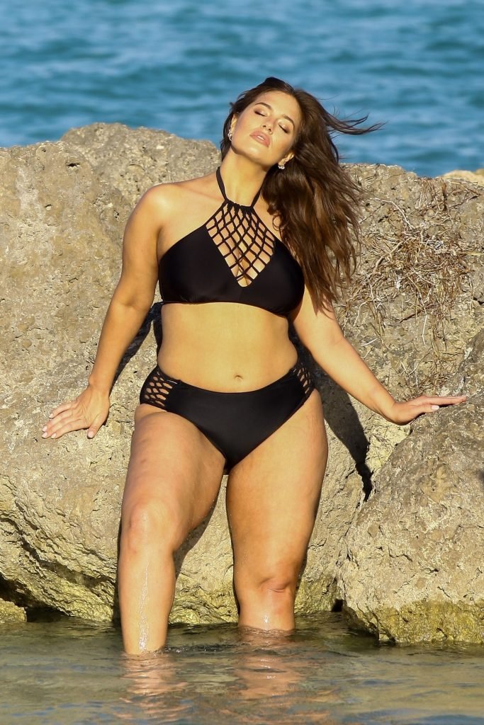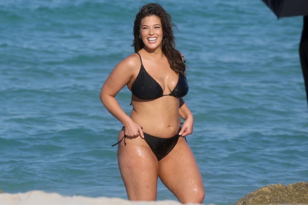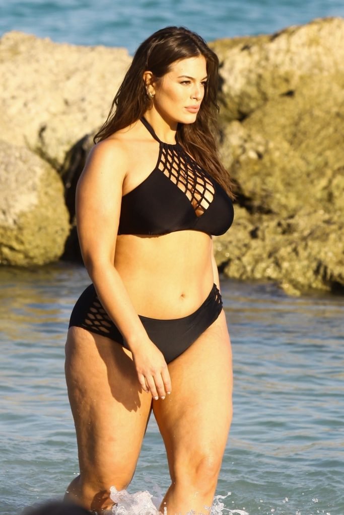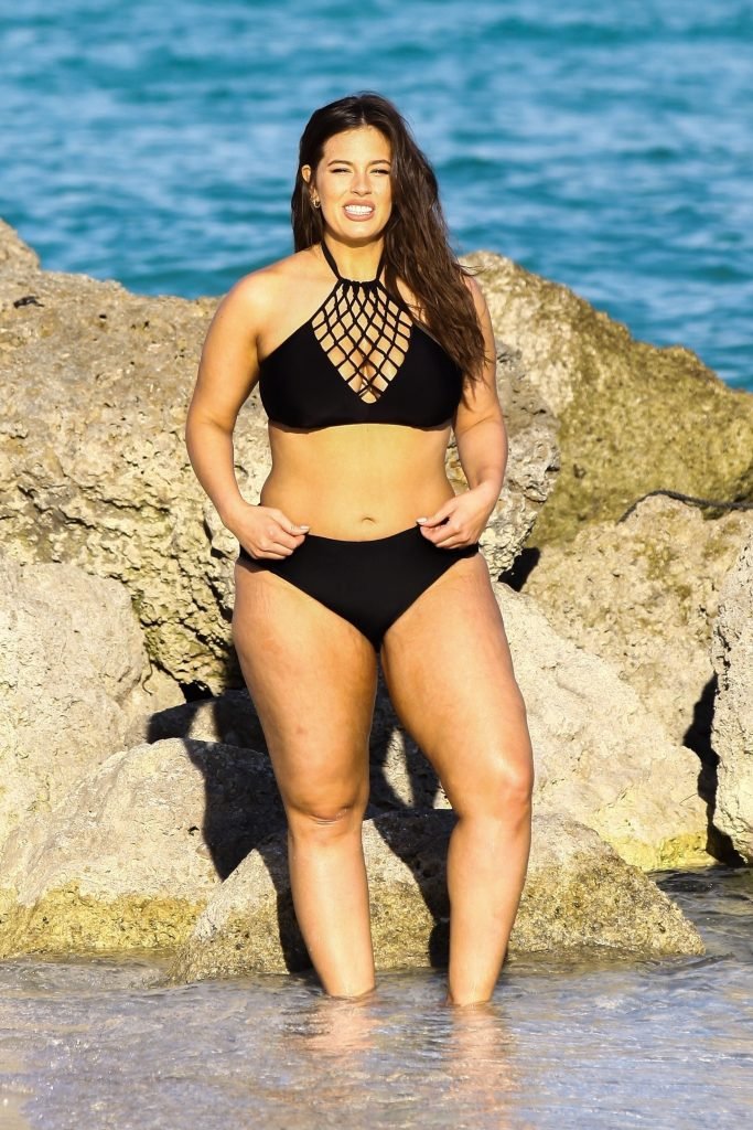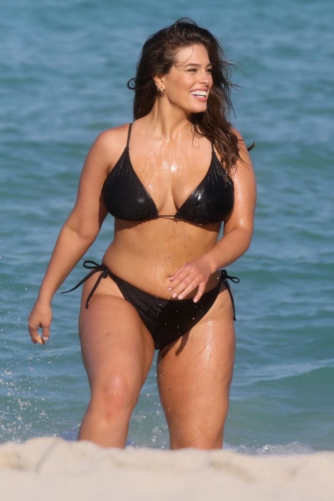 Ashley Graham é vista fazendo uma sessão de fotos habitual na praia em Miami, 14/03/2018. A modelo plus size de 30 anos exibiu seus grandes seios naturais, bumbum com celulite e pernas em biquínis pretos e maiô branco durante a sessão de fotos. Se você mantiver apenas a parte de cima, ficará bem.