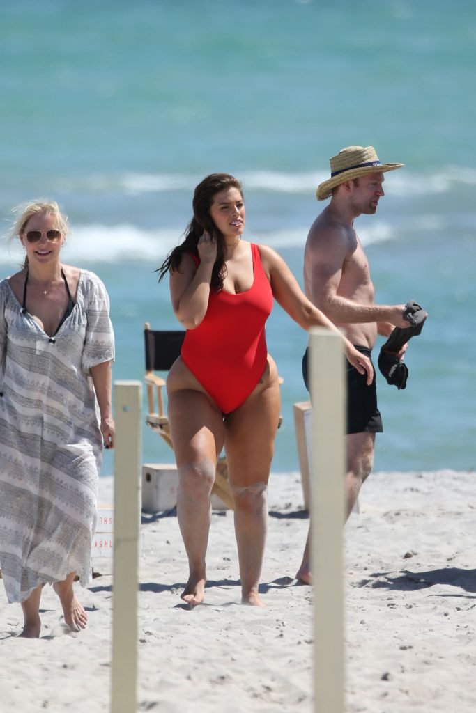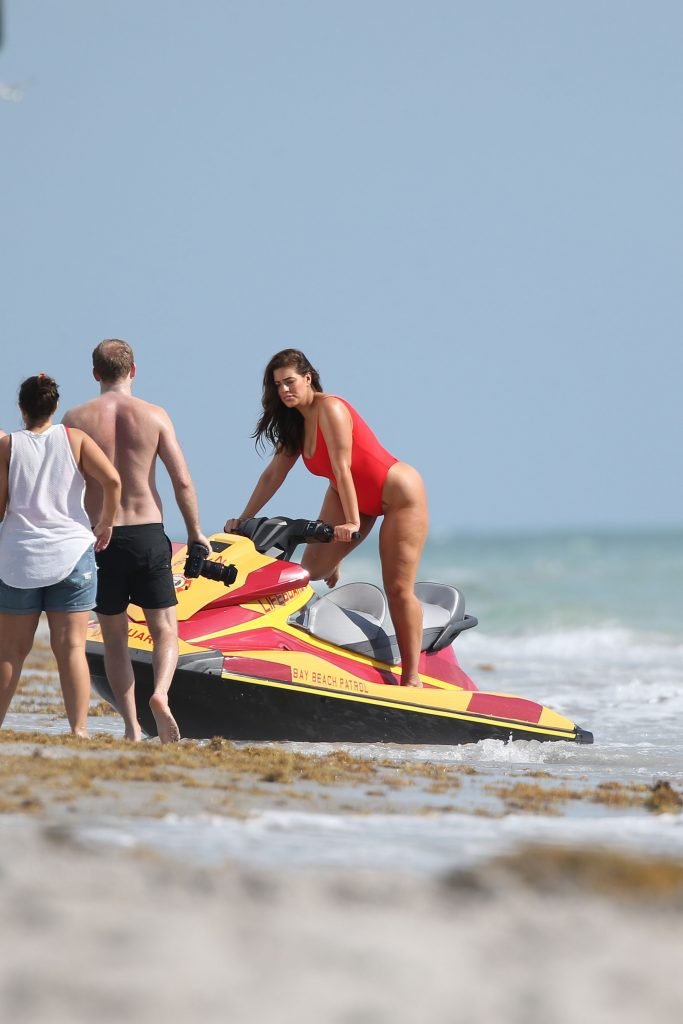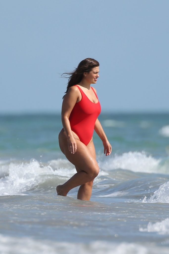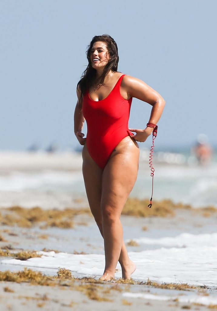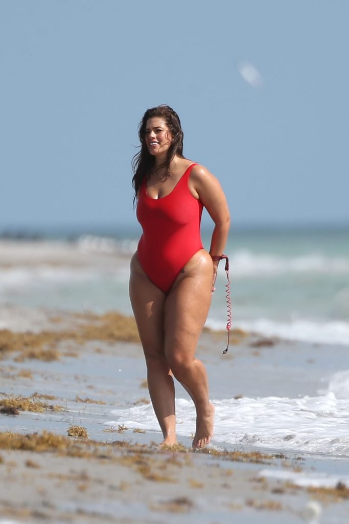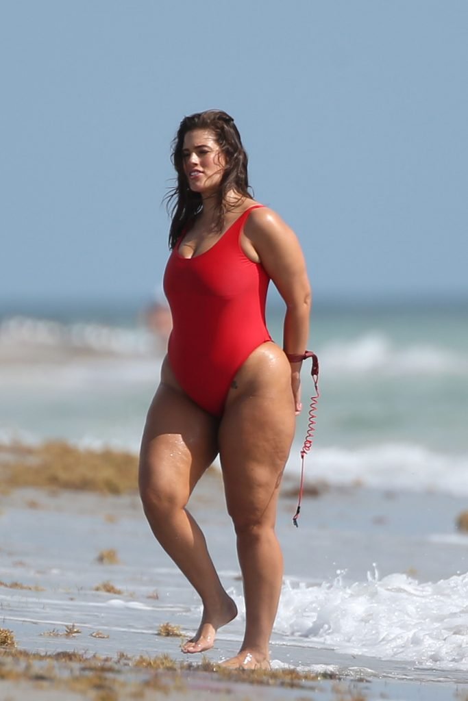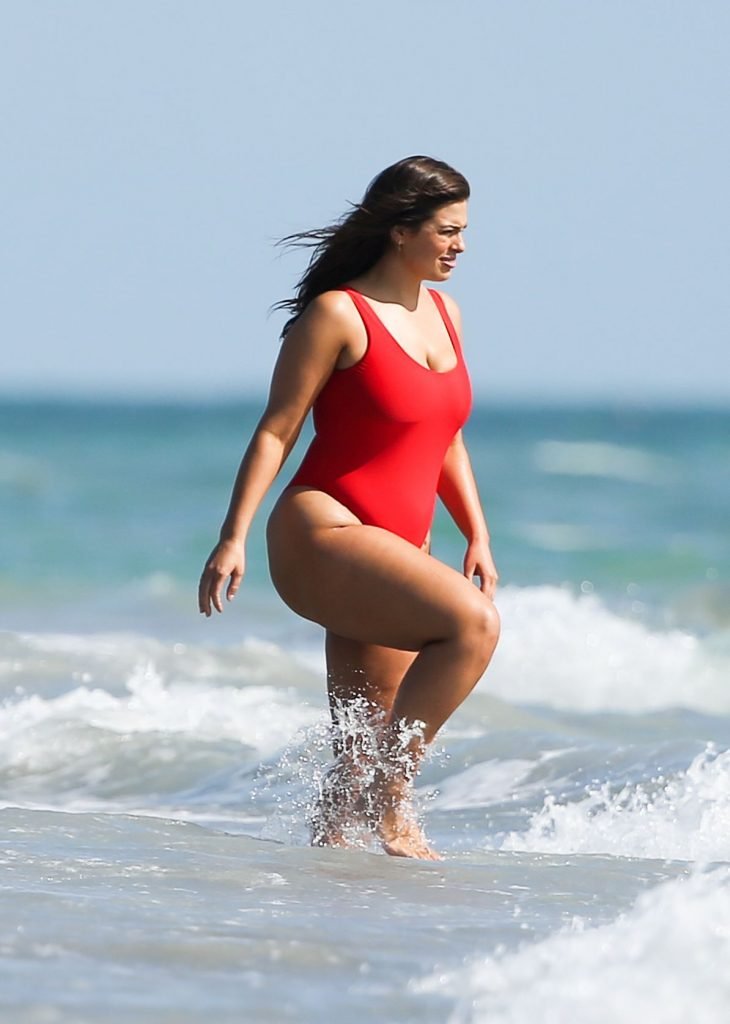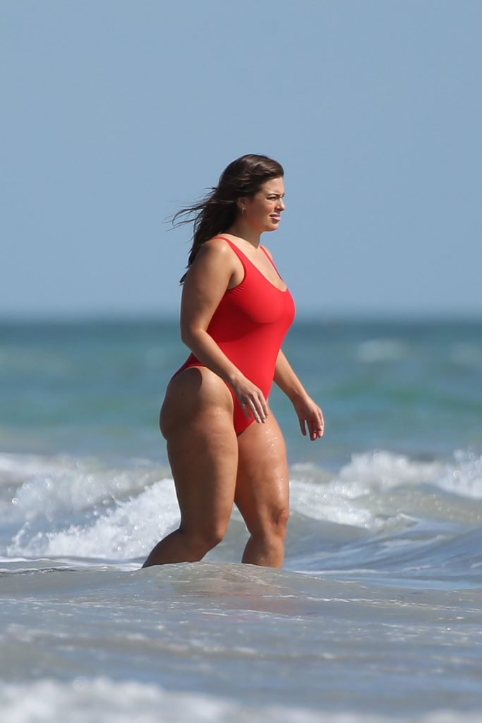 Ashley Graham exibe seu enorme bumbum em um maiô vermelho na praia em Miami, 01/03/2017. Ashley Graham é uma modelo plus size (Glamour, Vogue, Harper’s Bazaar) de Lincoln (Nebraska (EUA)). Idade – 29, 30 de outubro de 1987.