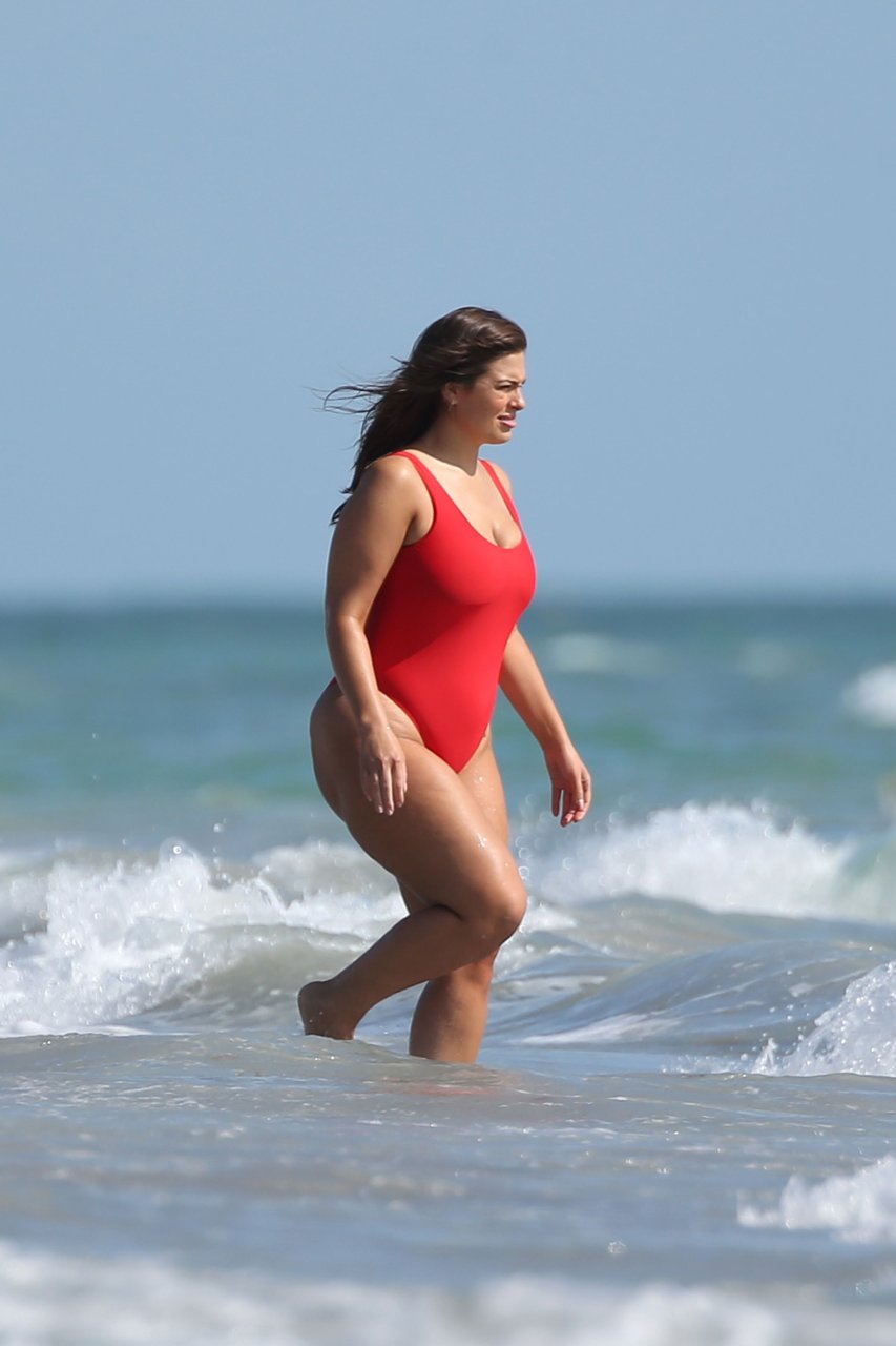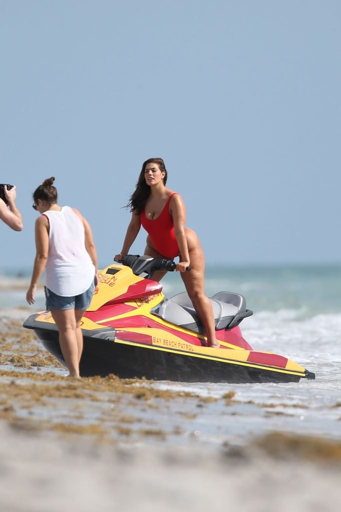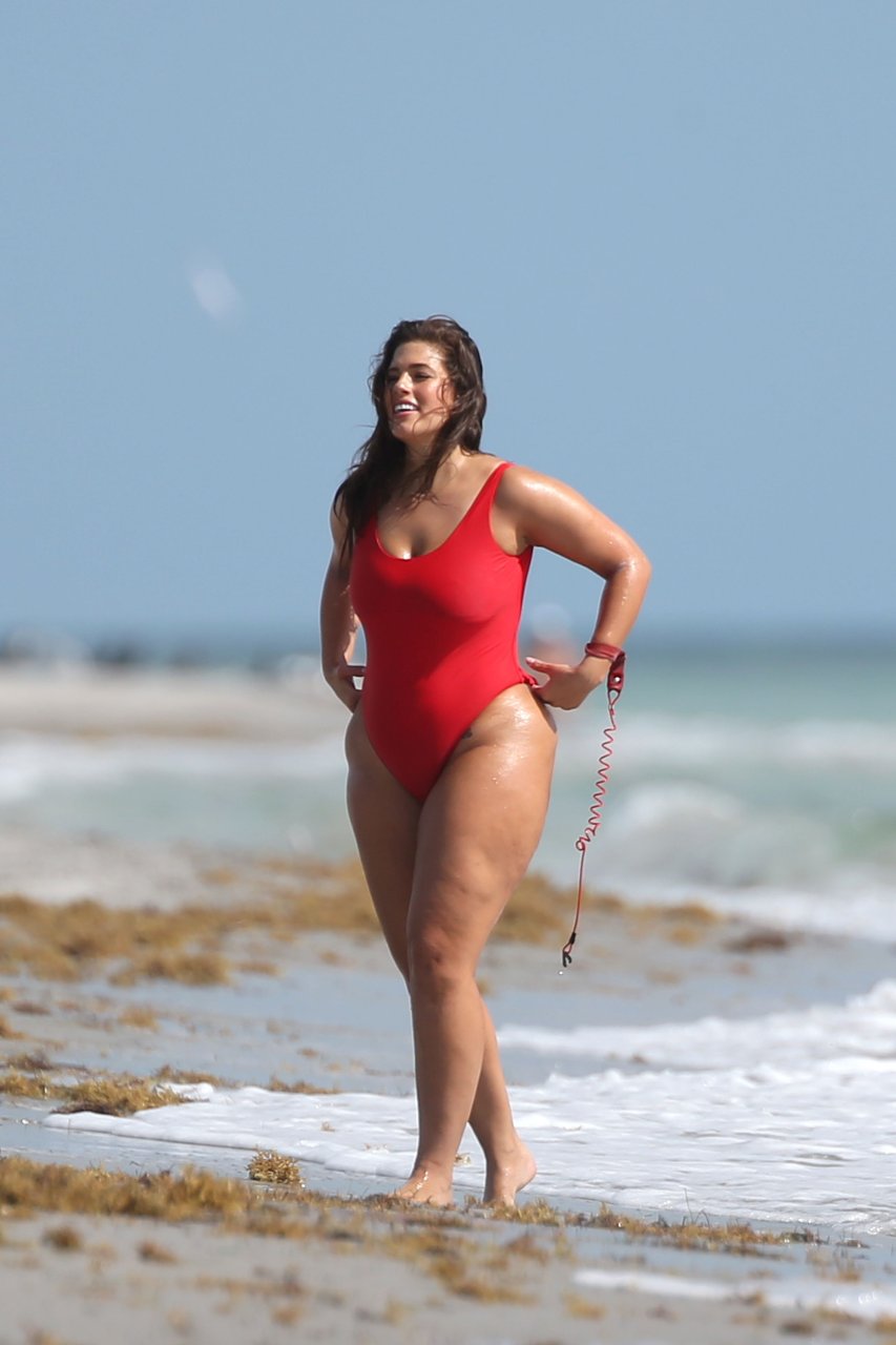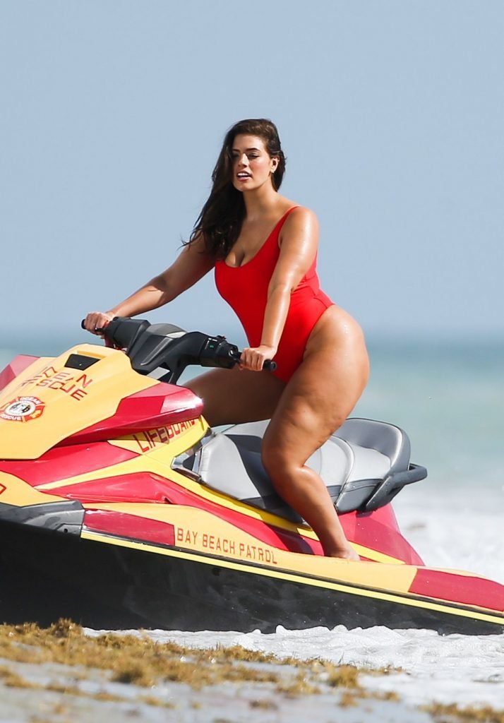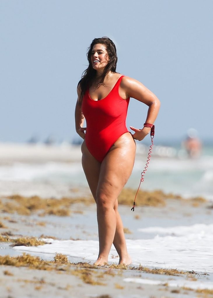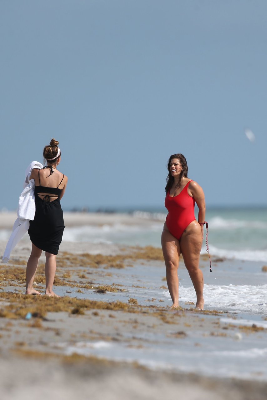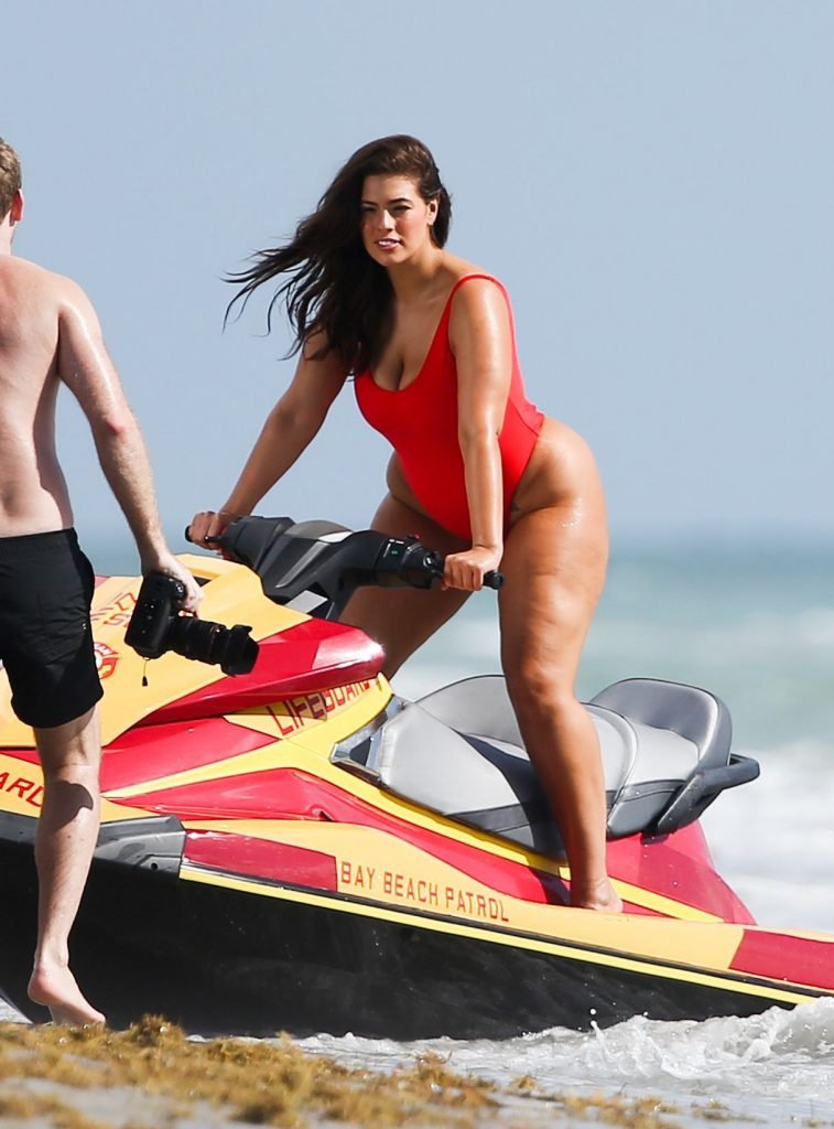Ashley Graham exibe seu enorme bumbum em um maiô vermelho na praia em Miami, 01/03/2017. Ashley Graham é uma modelo plus size (Glamour, Vogue, Harper’s Bazaar) de Lincoln (Nebraska (EUA)). Idade – 29, 30 de outubro de 1987.