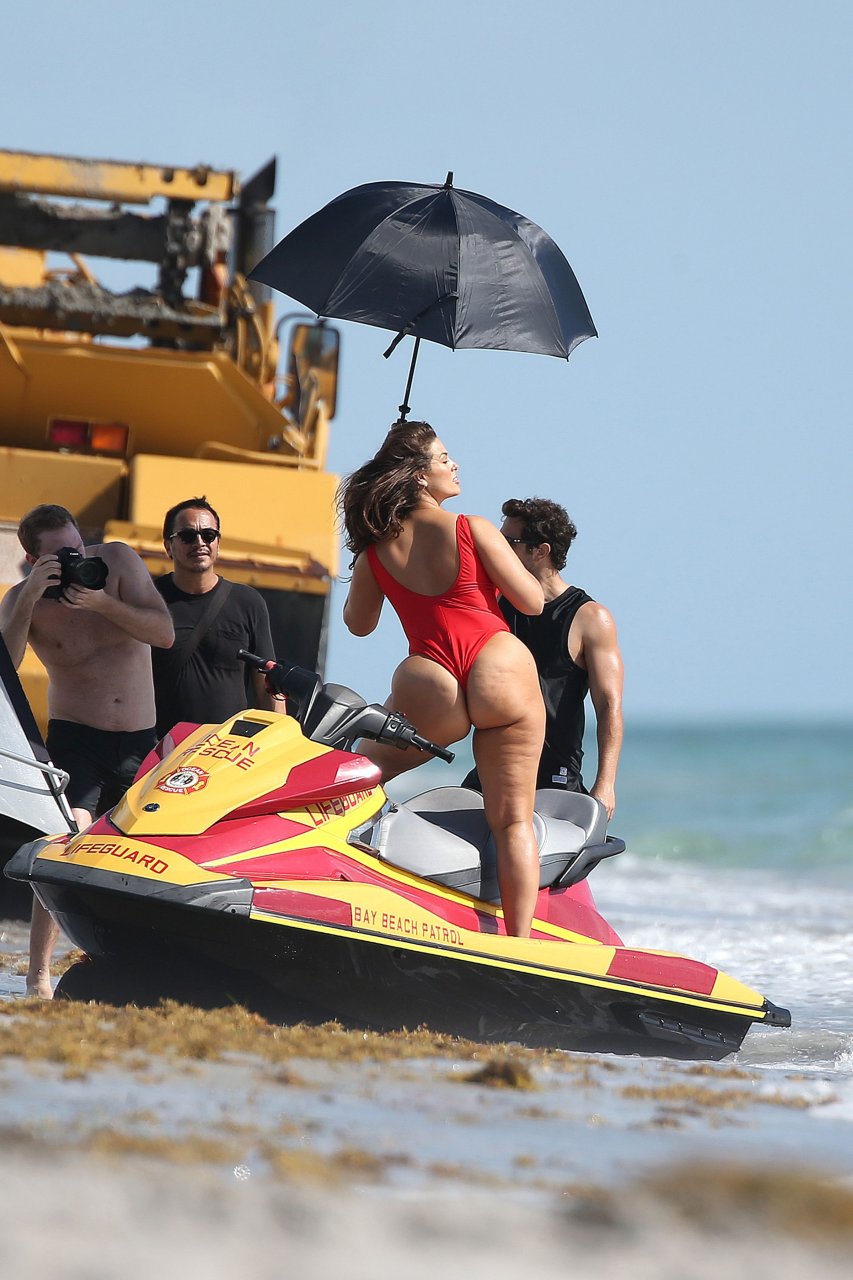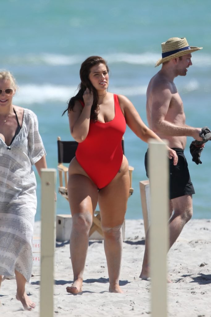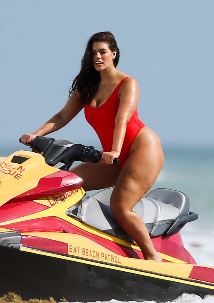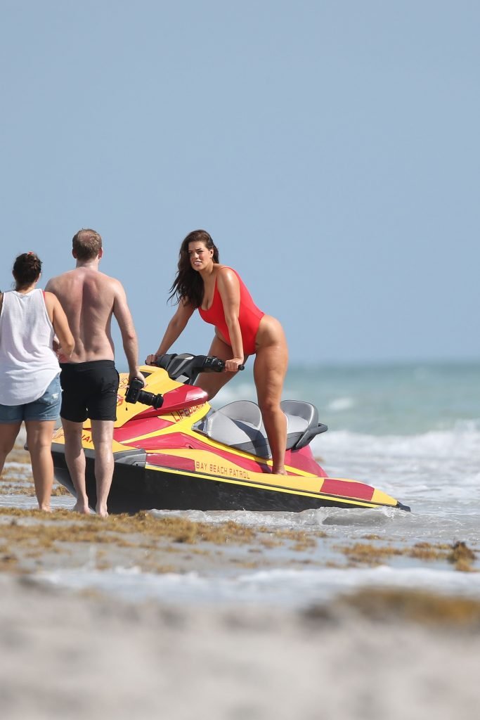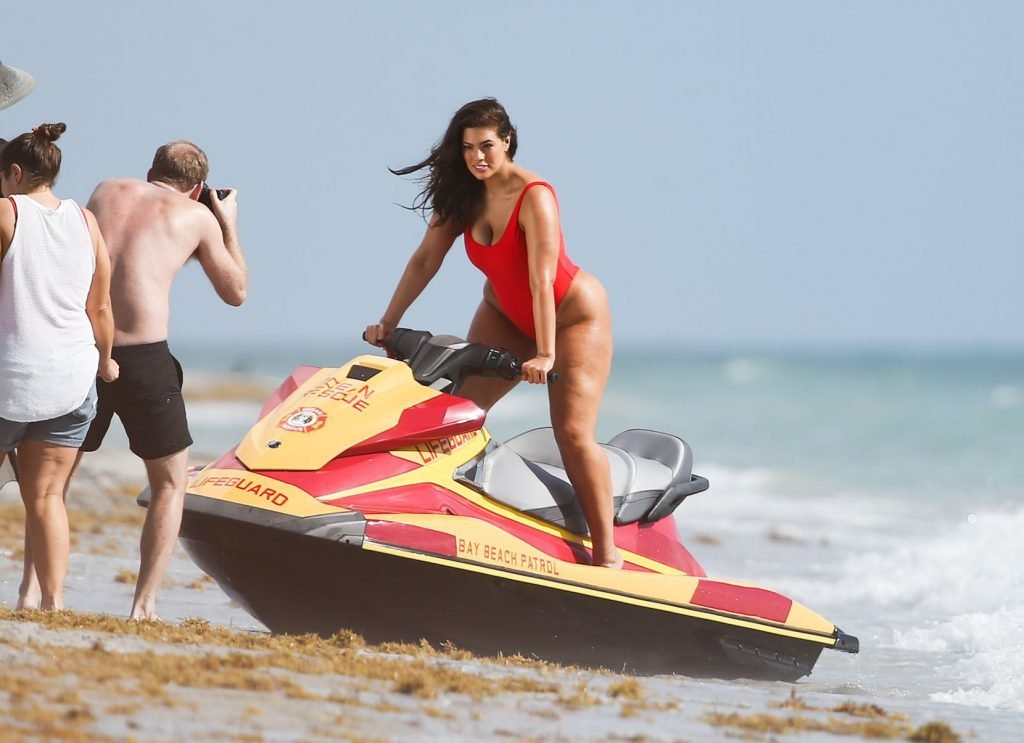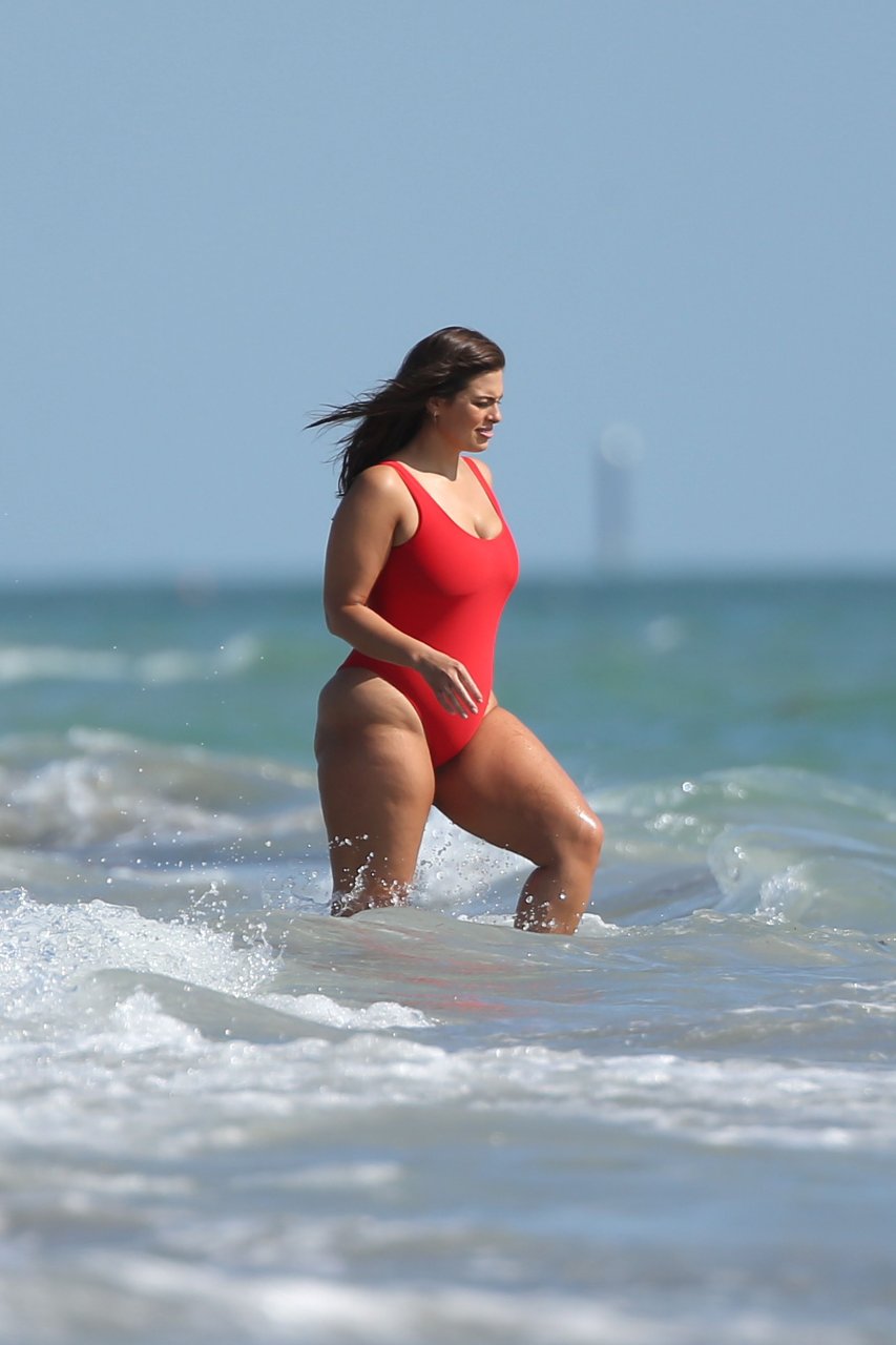 Ashley Graham exibe seu enorme bumbum em um maiô vermelho na praia em Miami, 01/03/2017. Ashley Graham é uma modelo plus size (Glamour, Vogue, Harper’s Bazaar) de Lincoln (Nebraska (EUA)). Idade – 29, 30 de outubro de 1987.