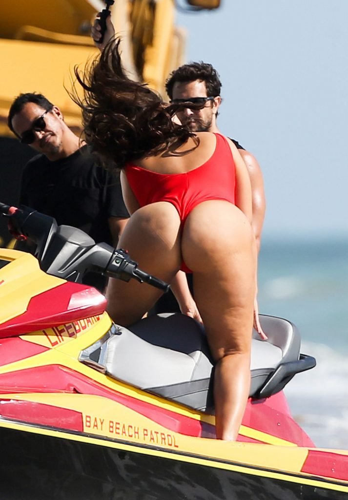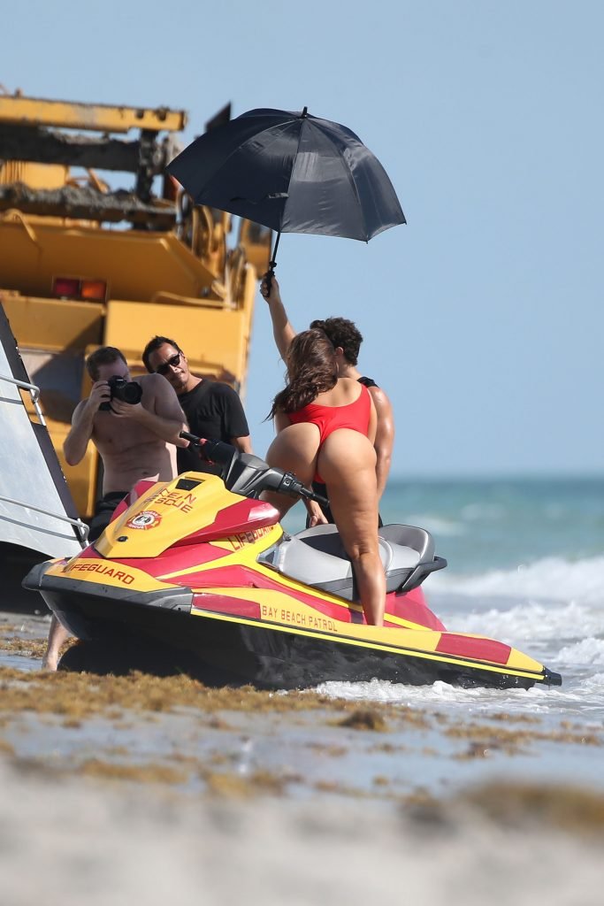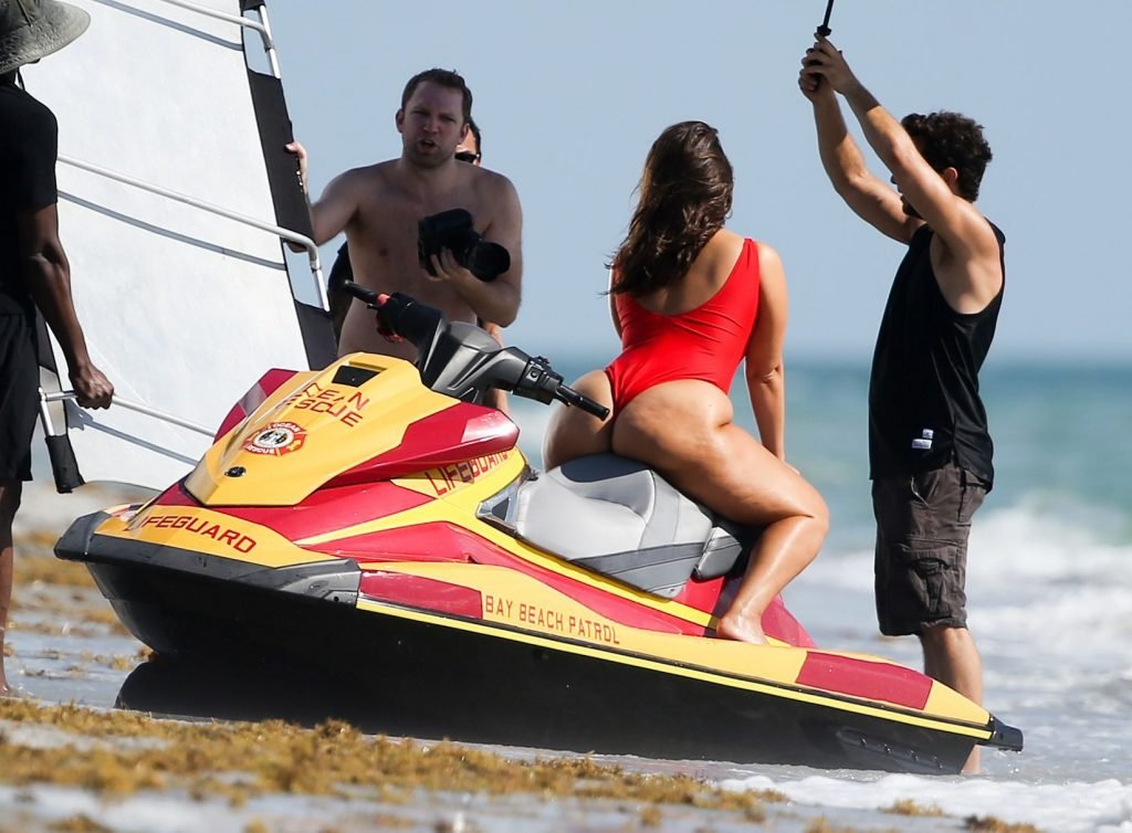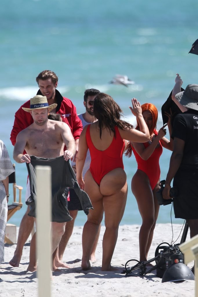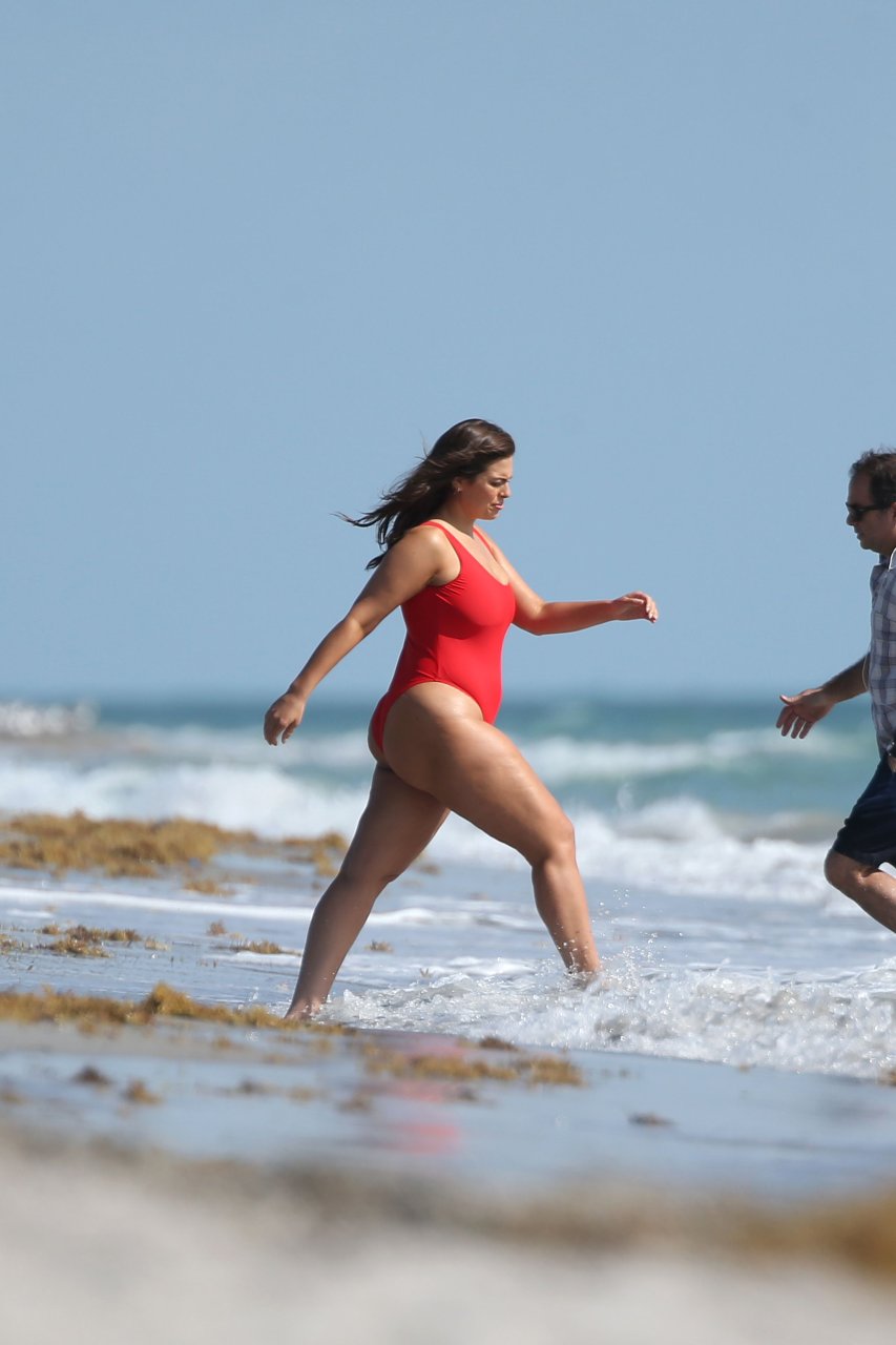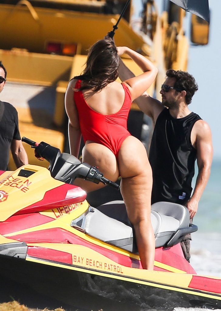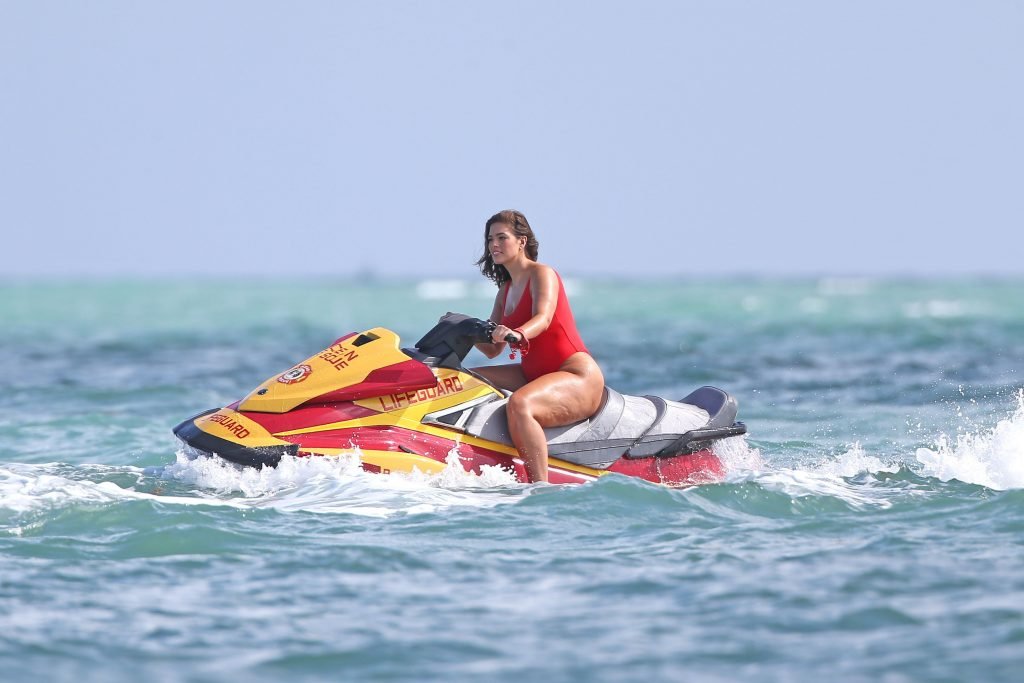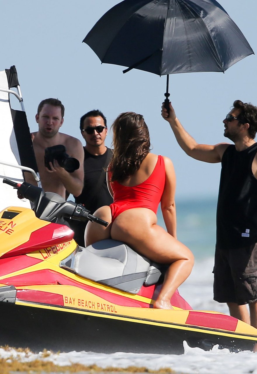 Ashley Graham exibe seu enorme bumbum em um maiô vermelho na praia em Miami, 01/03/2017. Ashley Graham é uma modelo plus size (Glamour, Vogue, Harper’s Bazaar) de Lincoln (Nebraska (EUA)). Idade – 29, 30 de outubro de 1987.