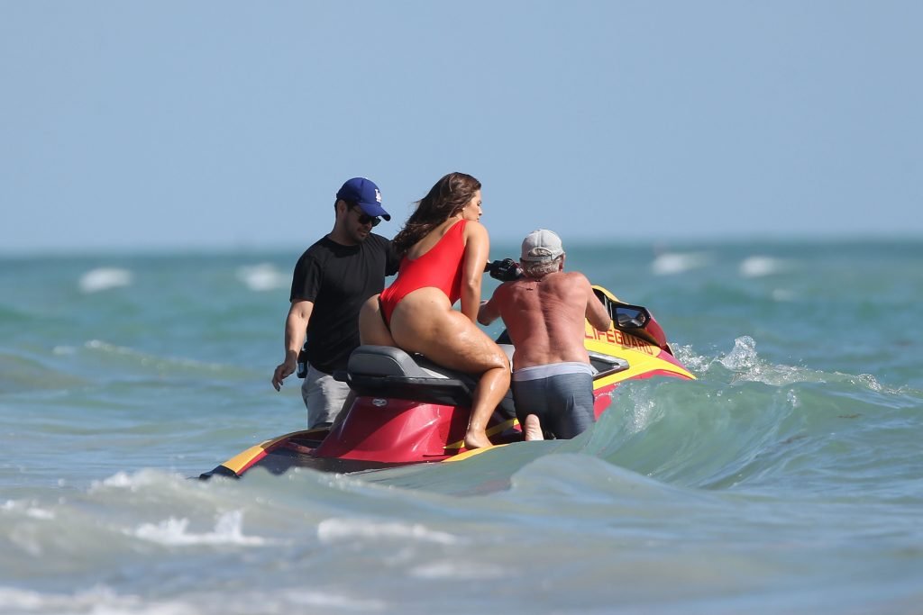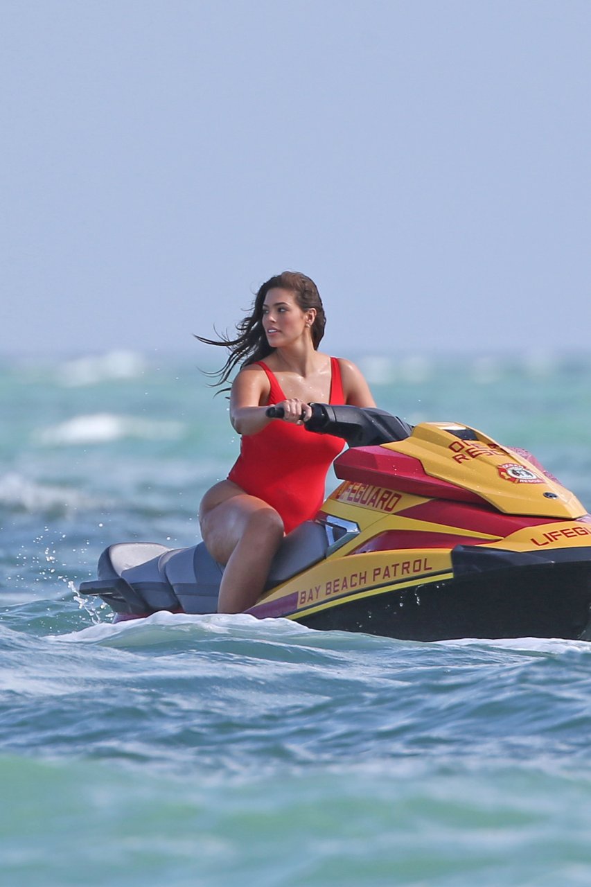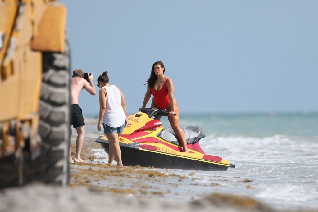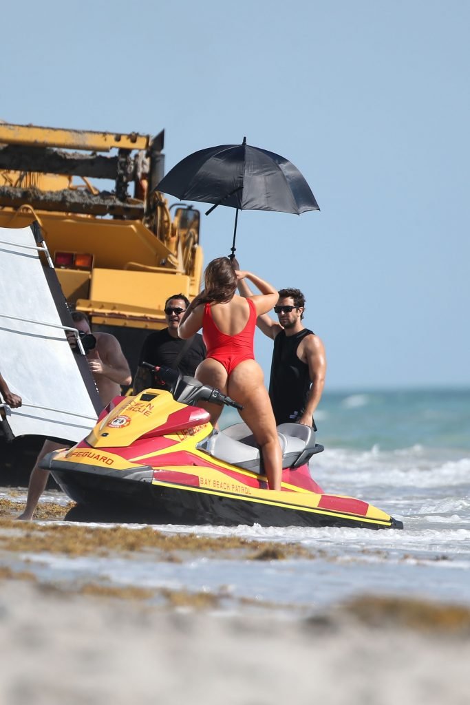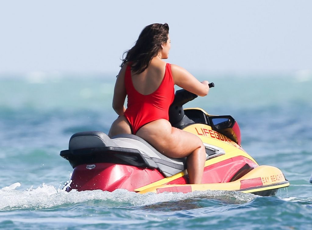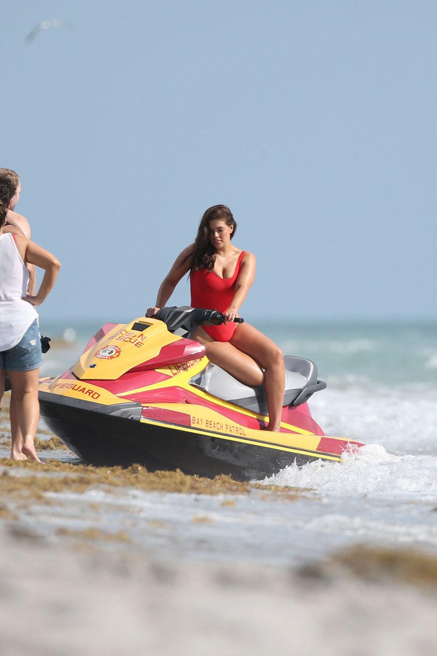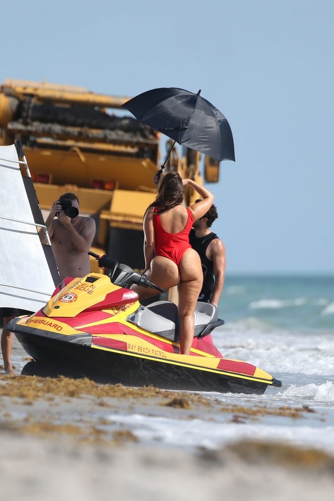 Ashley Graham exibe seu enorme bumbum em um maiô vermelho na praia em Miami, 01/03/2017. Ashley Graham é uma modelo plus size (Glamour, Vogue, Harper’s Bazaar) de Lincoln (Nebraska (EUA)). Idade – 29, 30 de outubro de 1987.