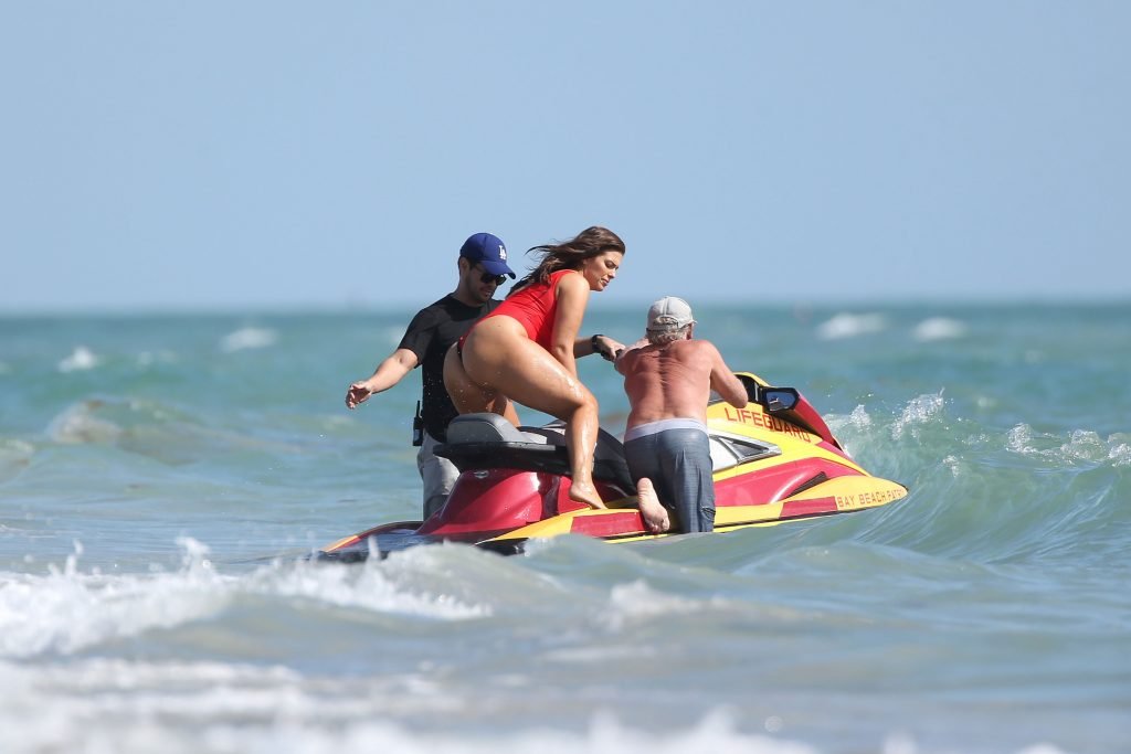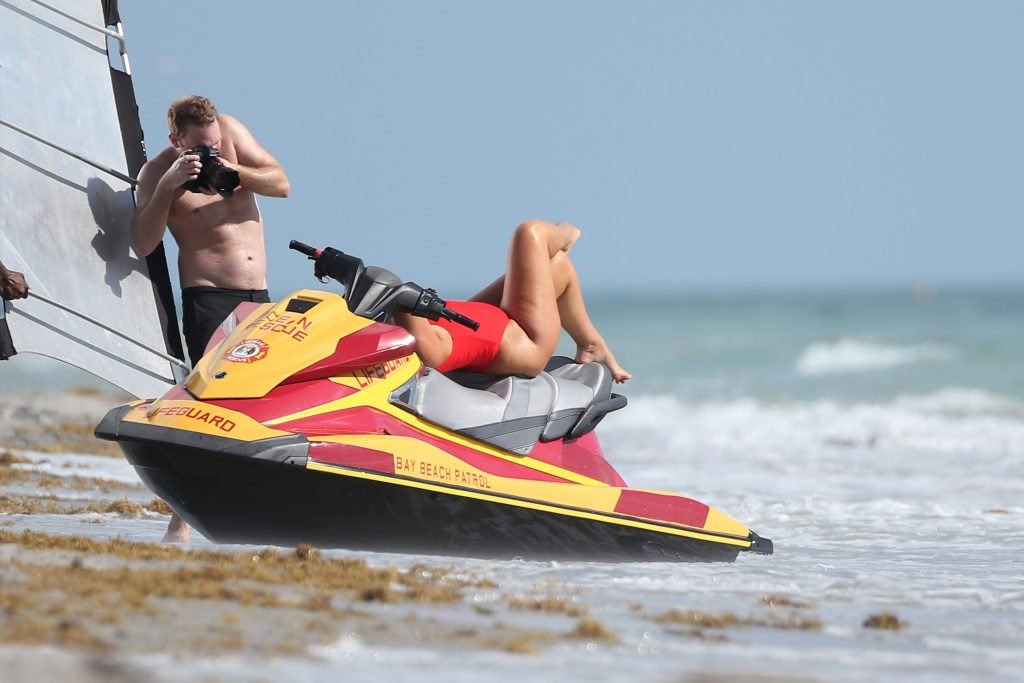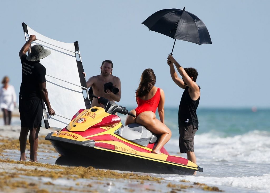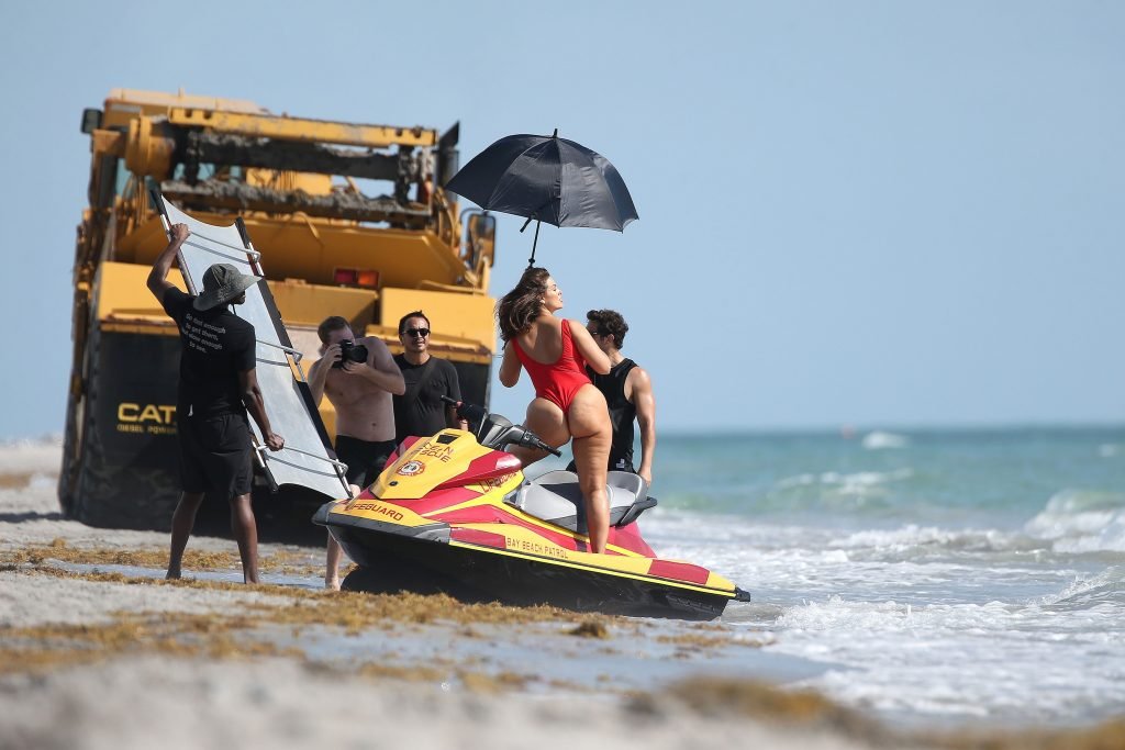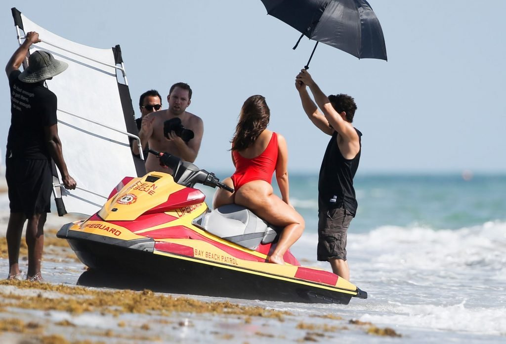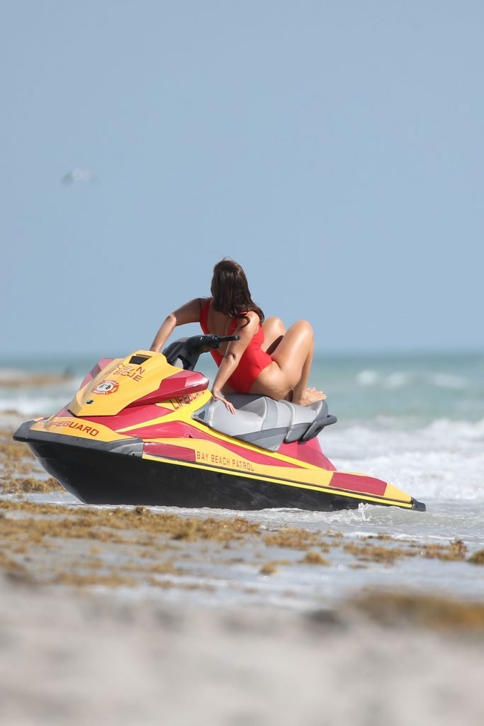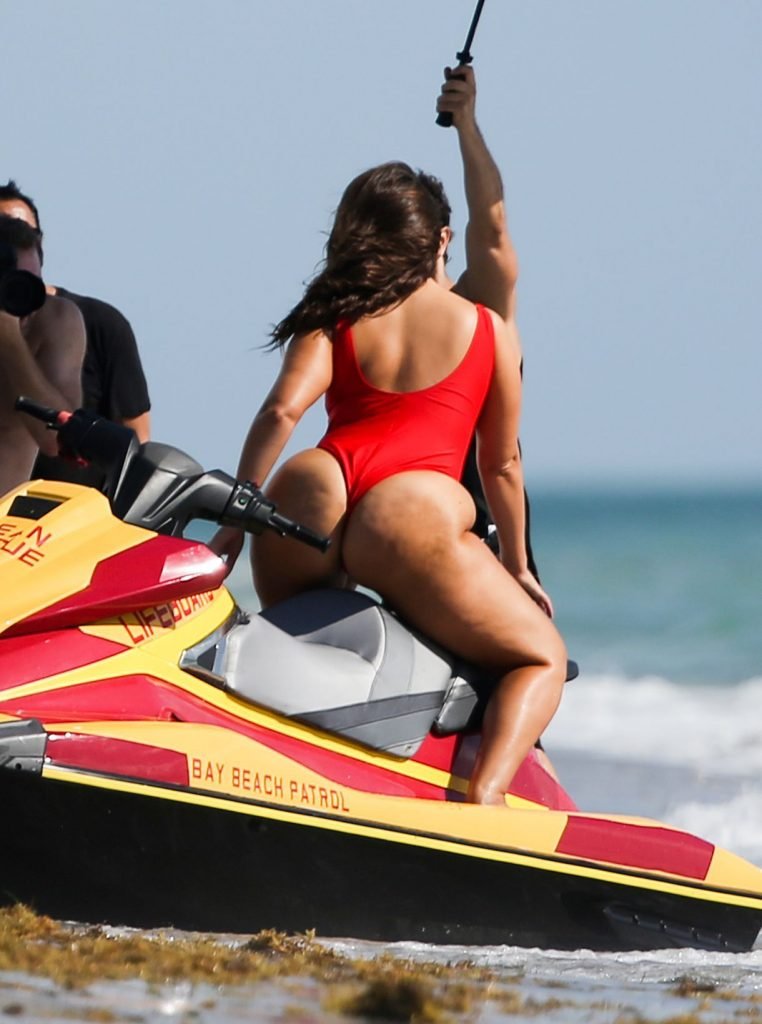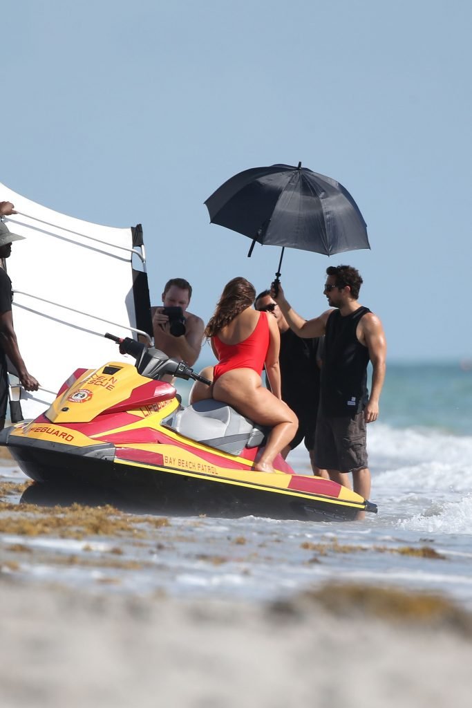 Ashley Graham exibe seu enorme bumbum em um maiô vermelho na praia em Miami, 01/03/2017. Ashley Graham é uma modelo plus size (Glamour, Vogue, Harper’s Bazaar) de Lincoln (Nebraska (EUA)). Idade – 29, 30 de outubro de 1987.