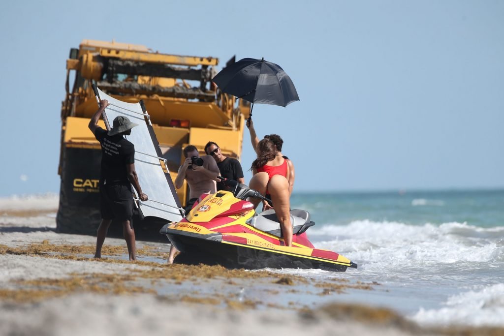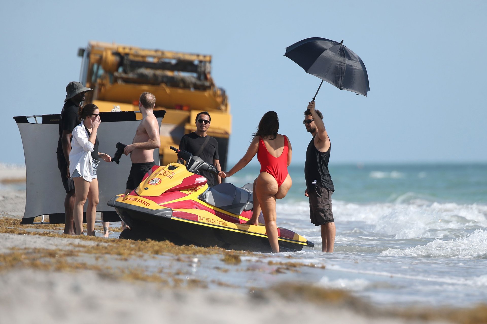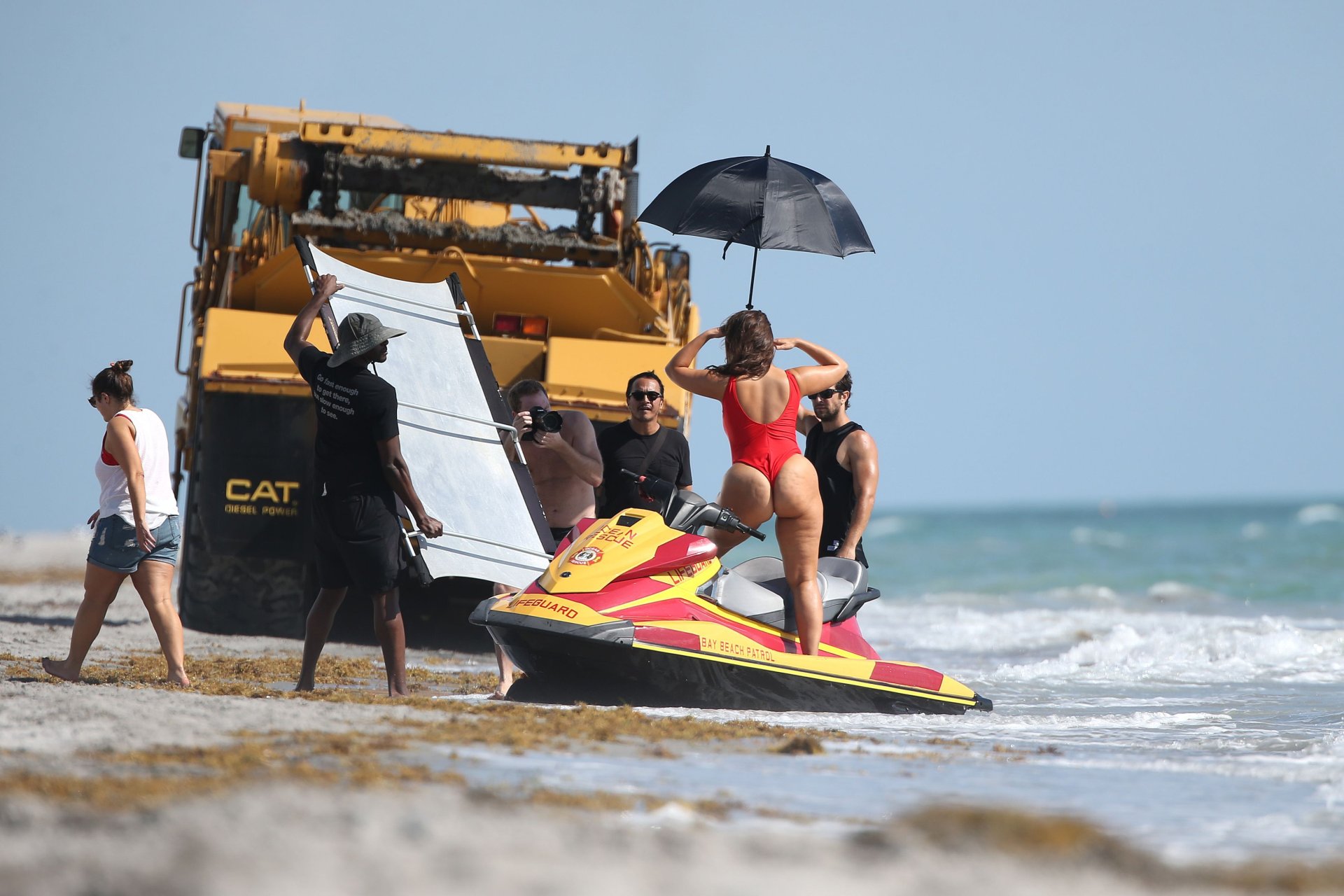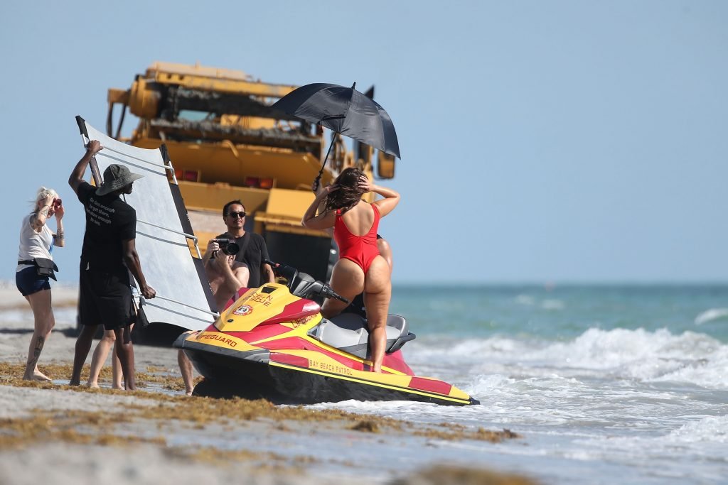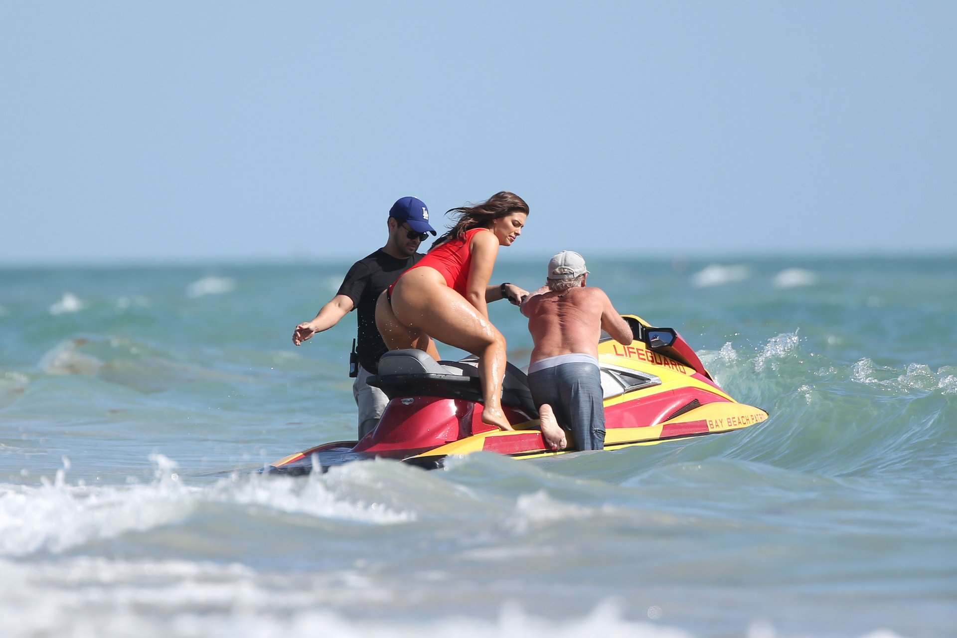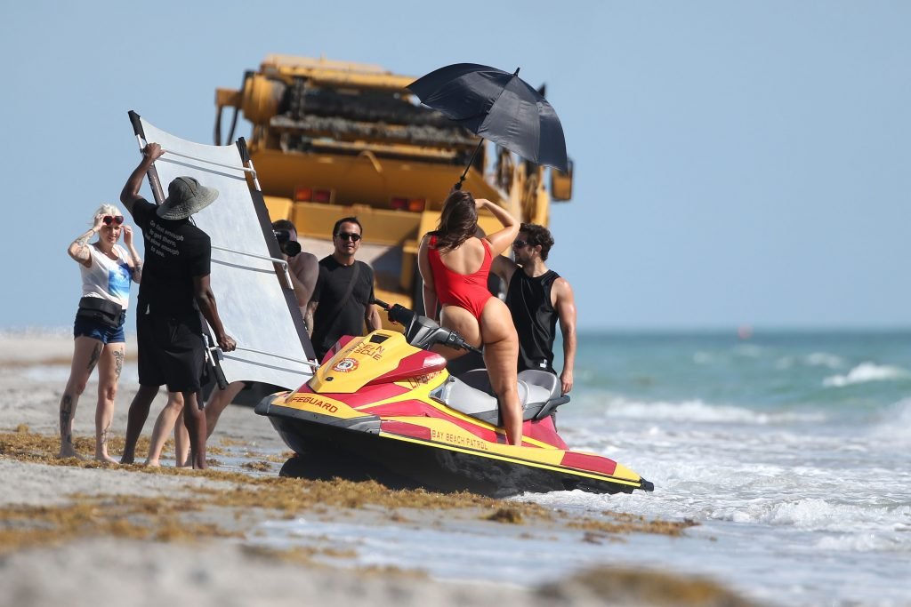 Ashley Graham exibe seu enorme bumbum em um maiô vermelho na praia em Miami, 01/03/2017. Ashley Graham é uma modelo plus size (Glamour, Vogue, Harper’s Bazaar) de Lincoln (Nebraska (EUA)). Idade – 29, 30 de outubro de 1987.