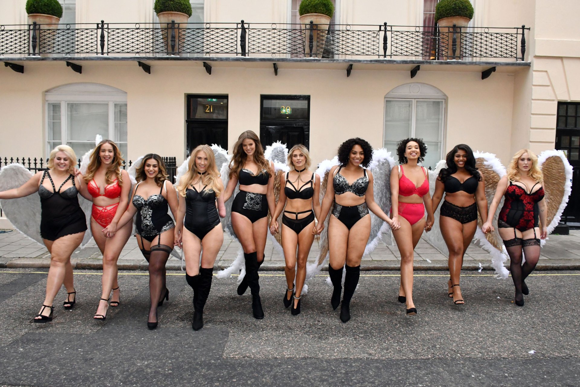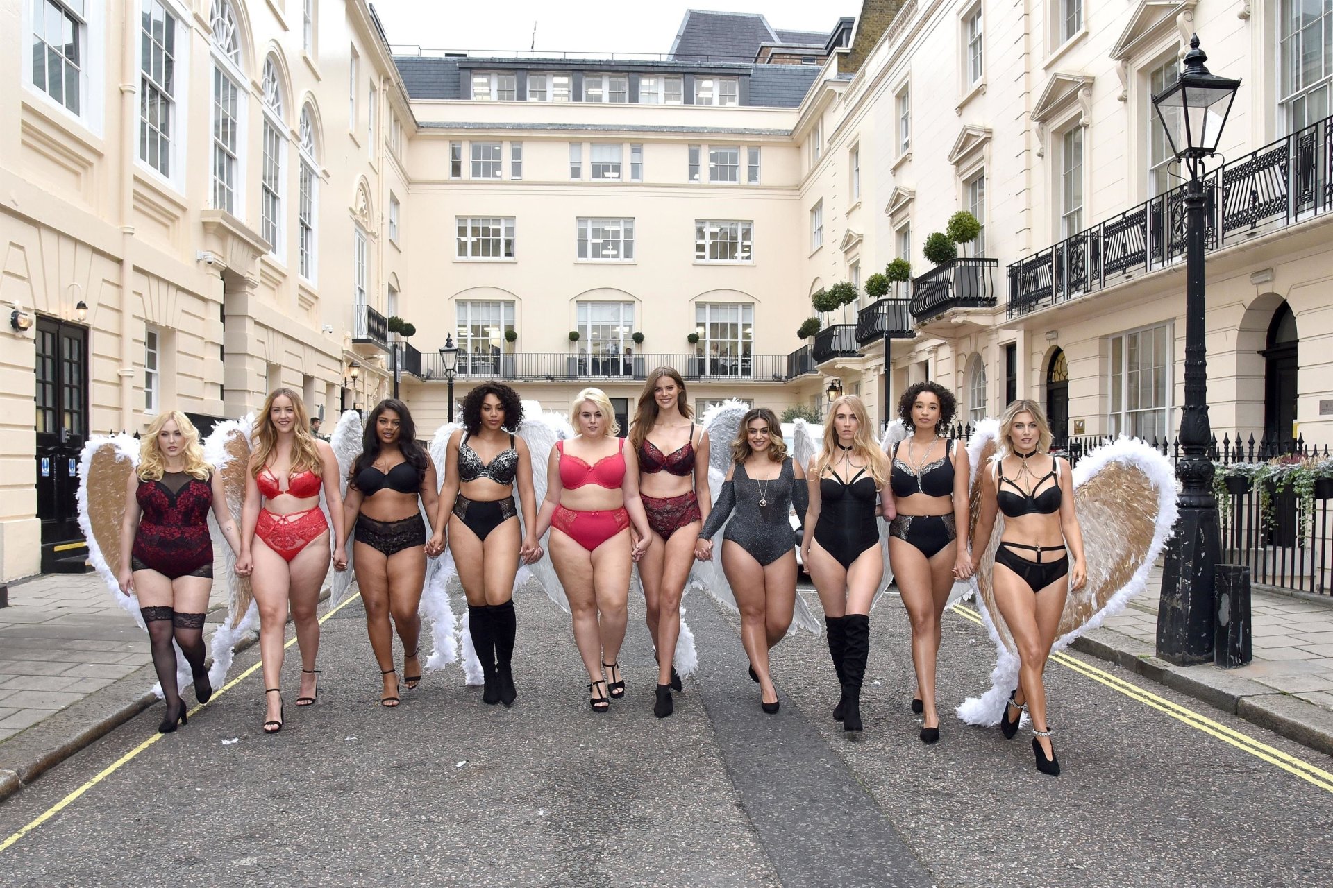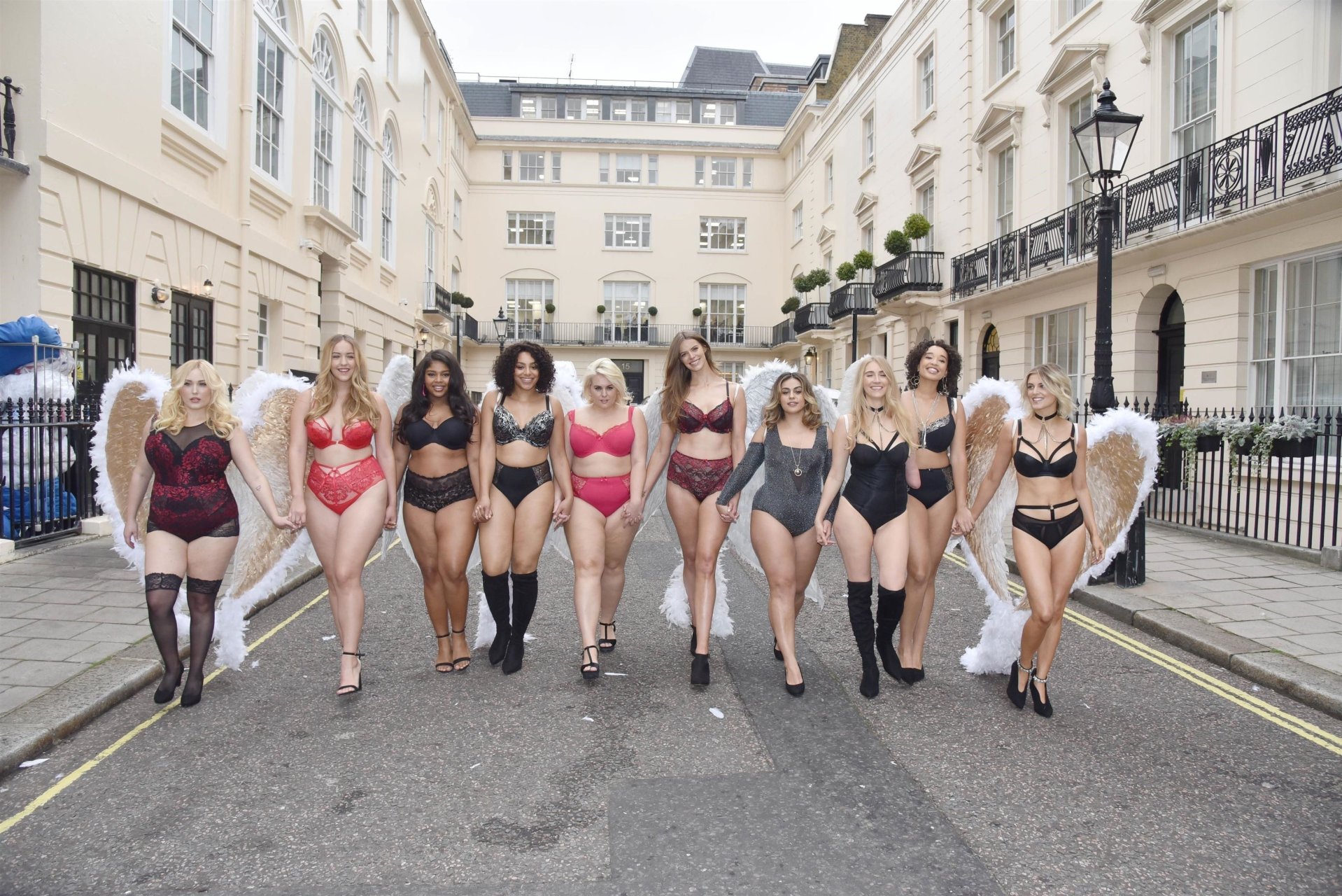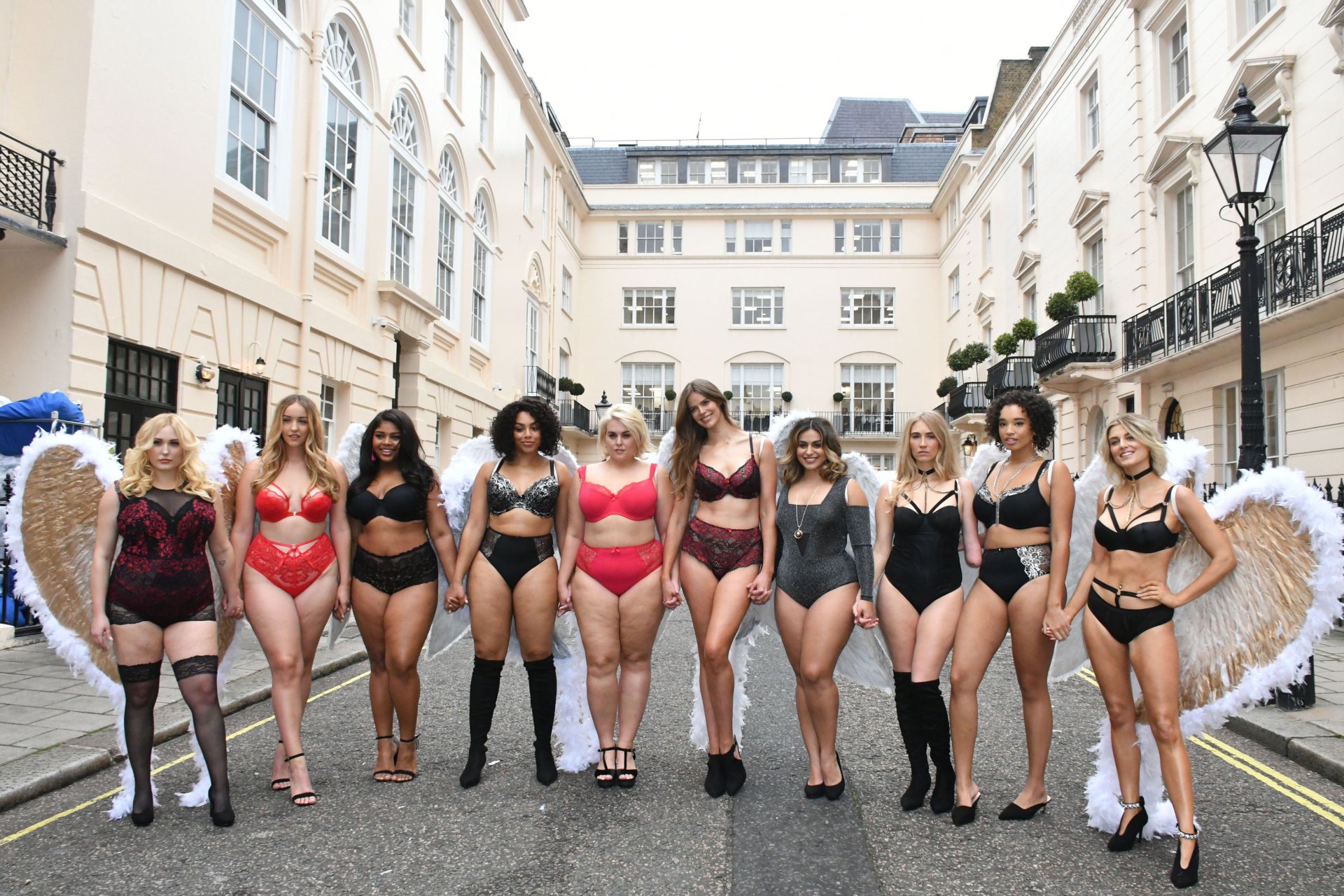 Ashley James, Robyn Lawley, Hayley Hasselhoff, Kelly Knox, Felicity Hayward, Joann van den Herik, e outras modelos foram vistas em um desfile de lingerie apresentando a coleção de Natal da Simply Be, 06/11/2018. Dez modelos desfilaram no evento, mostrando dois looks em Londres.