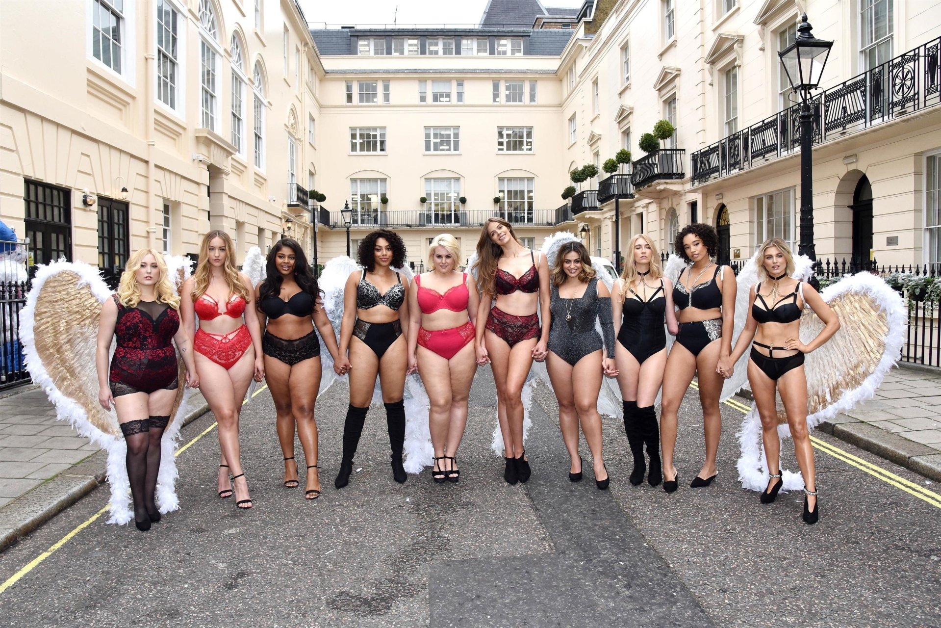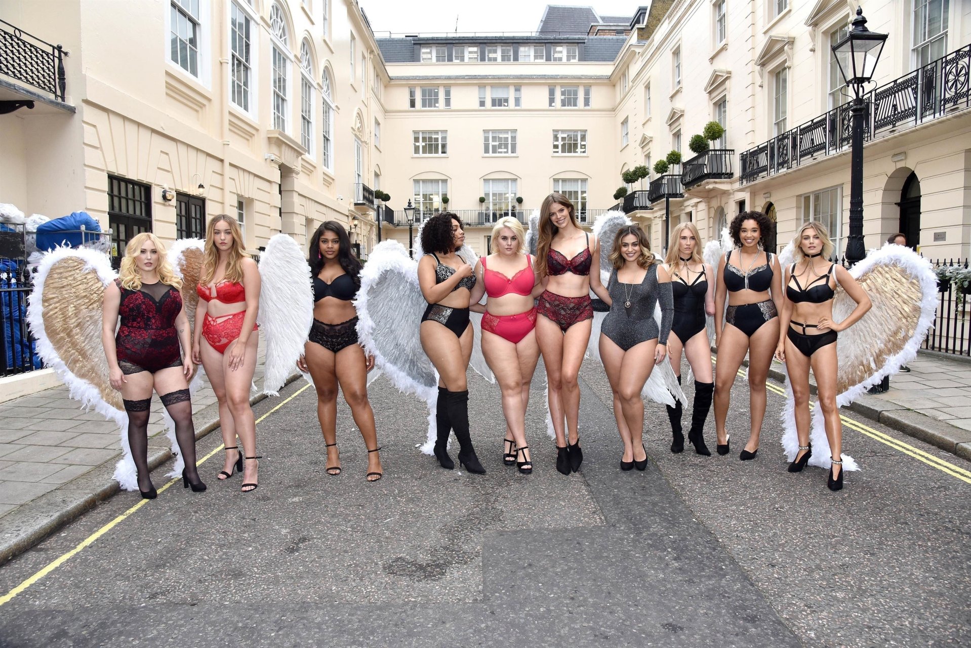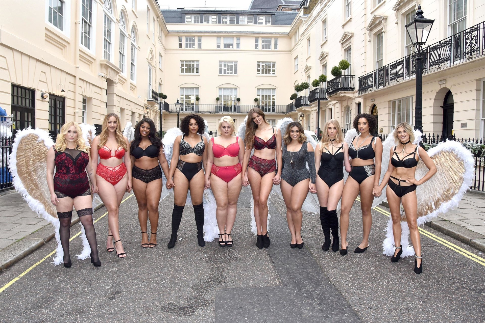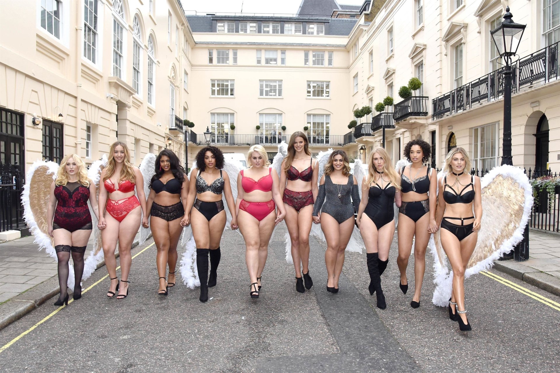 Ashley James, Robyn Lawley, Hayley Hasselhoff, Kelly Knox, Felicity Hayward, Joann van den Herik, e outras modelos foram vistas em um desfile de lingerie apresentando a coleção de Natal da Simply Be, 06/11/2018. Dez modelos desfilaram no evento, mostrando dois looks em Londres.