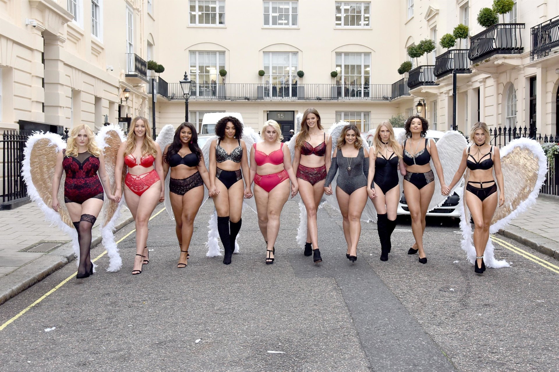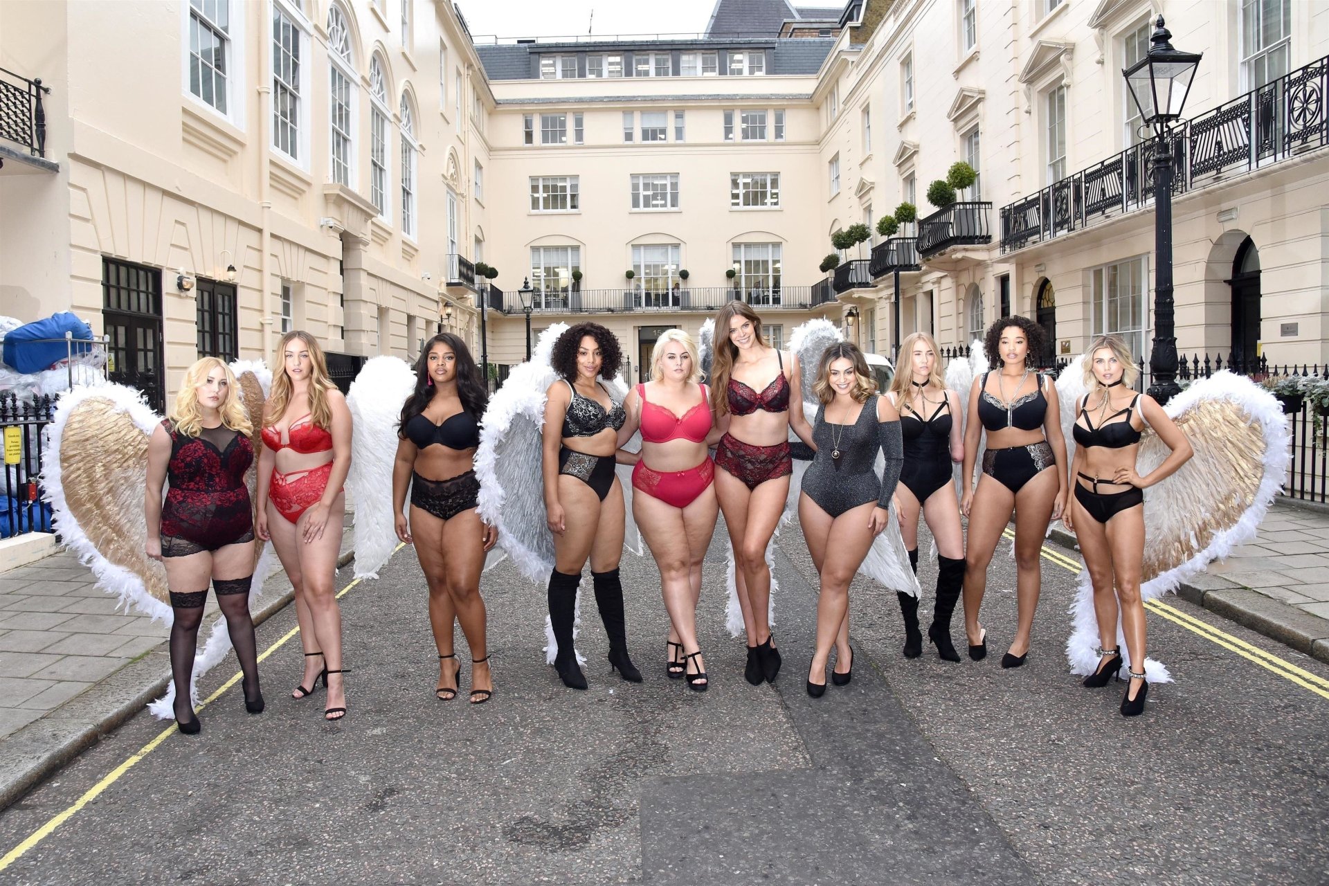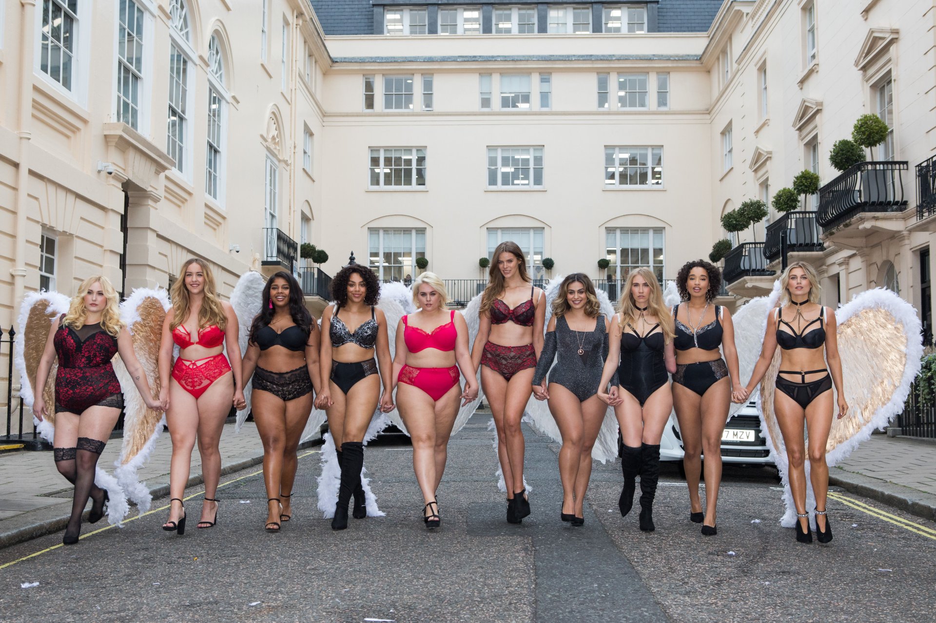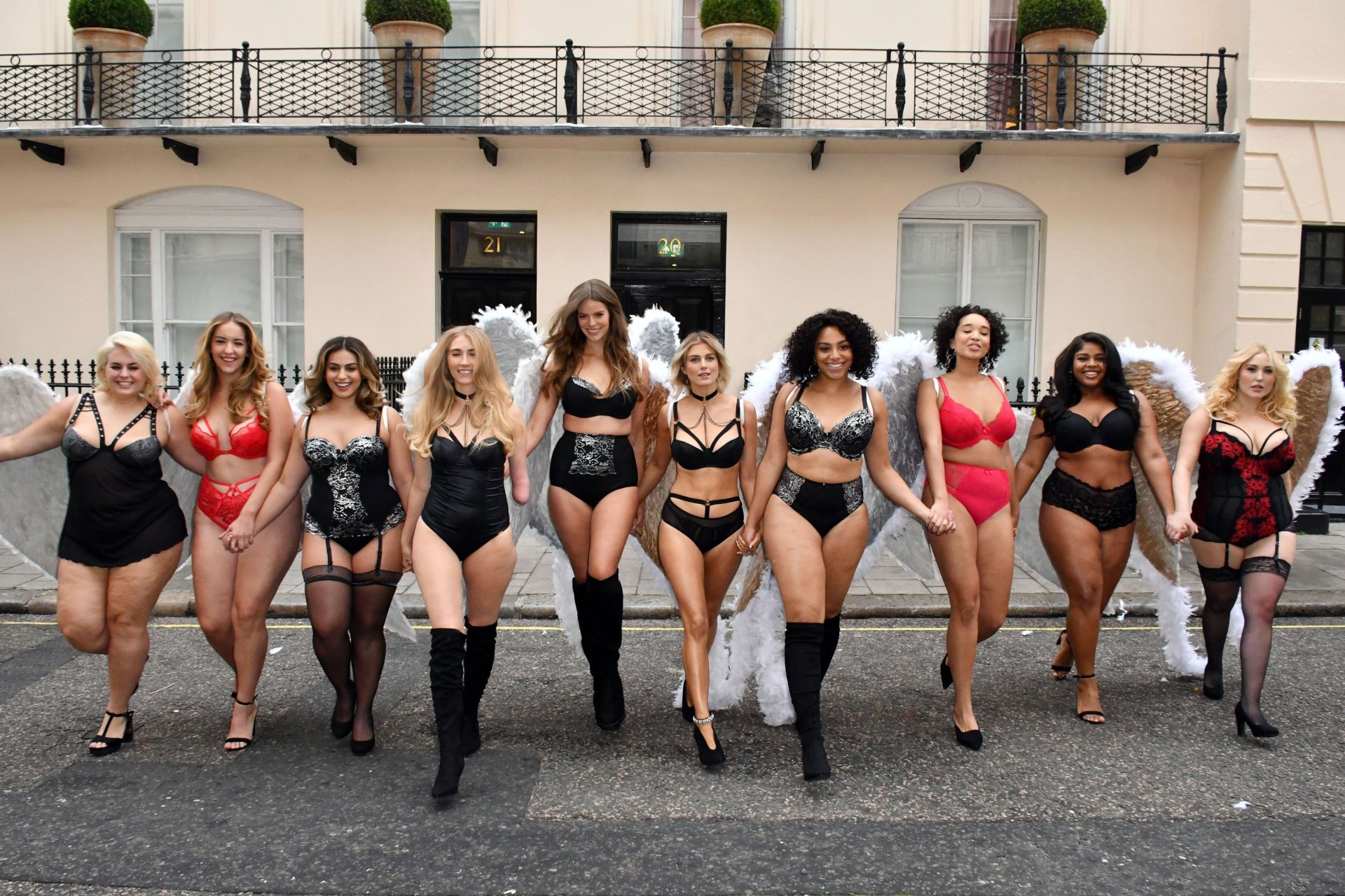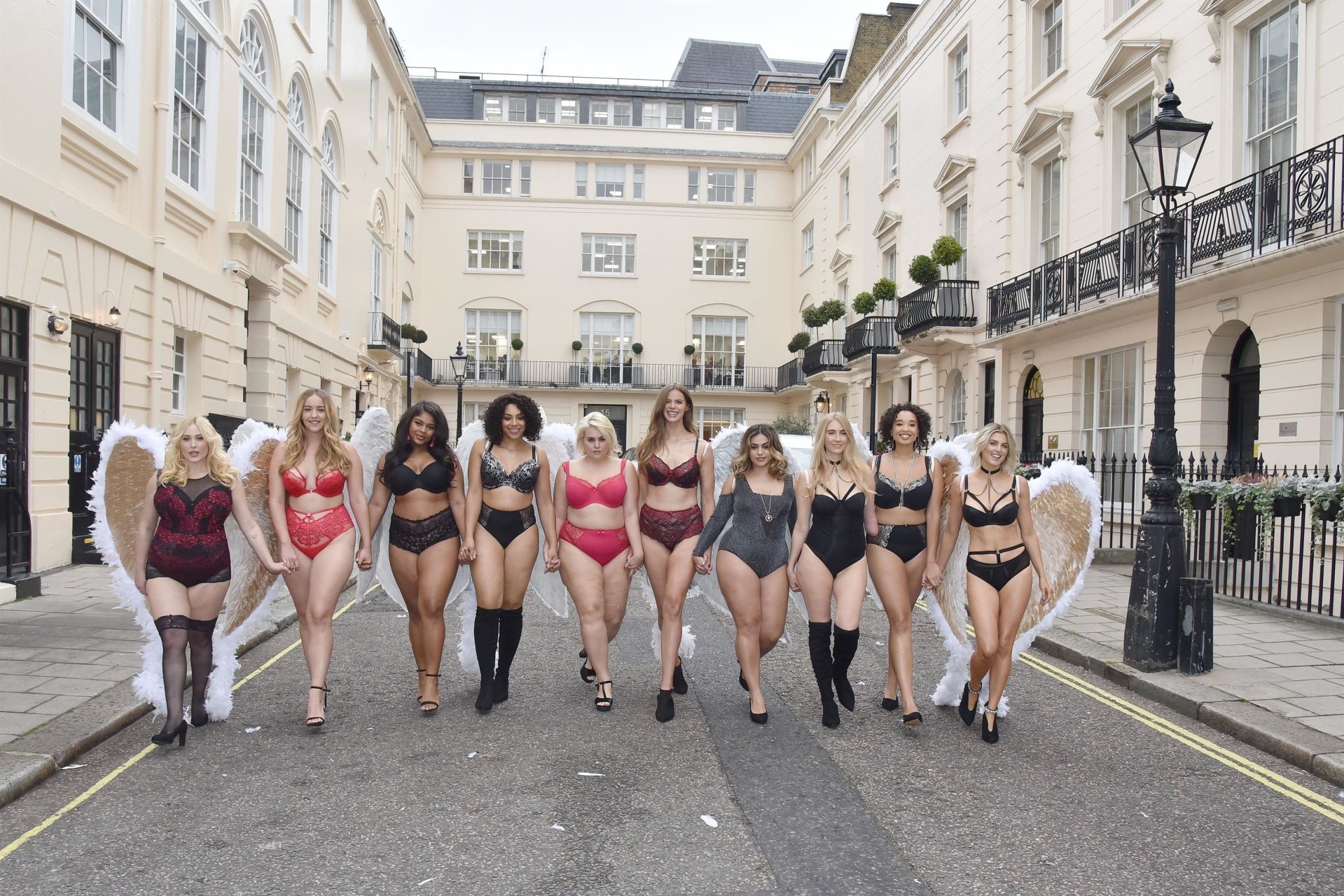 Ashley James, Robyn Lawley, Hayley Hasselhoff, Kelly Knox, Felicity Hayward, Joann van den Herik, e outras modelos foram vistas em um desfile de lingerie apresentando a coleção de Natal da Simply Be, 06/11/2018. Dez modelos desfilaram no evento, mostrando dois looks em Londres.