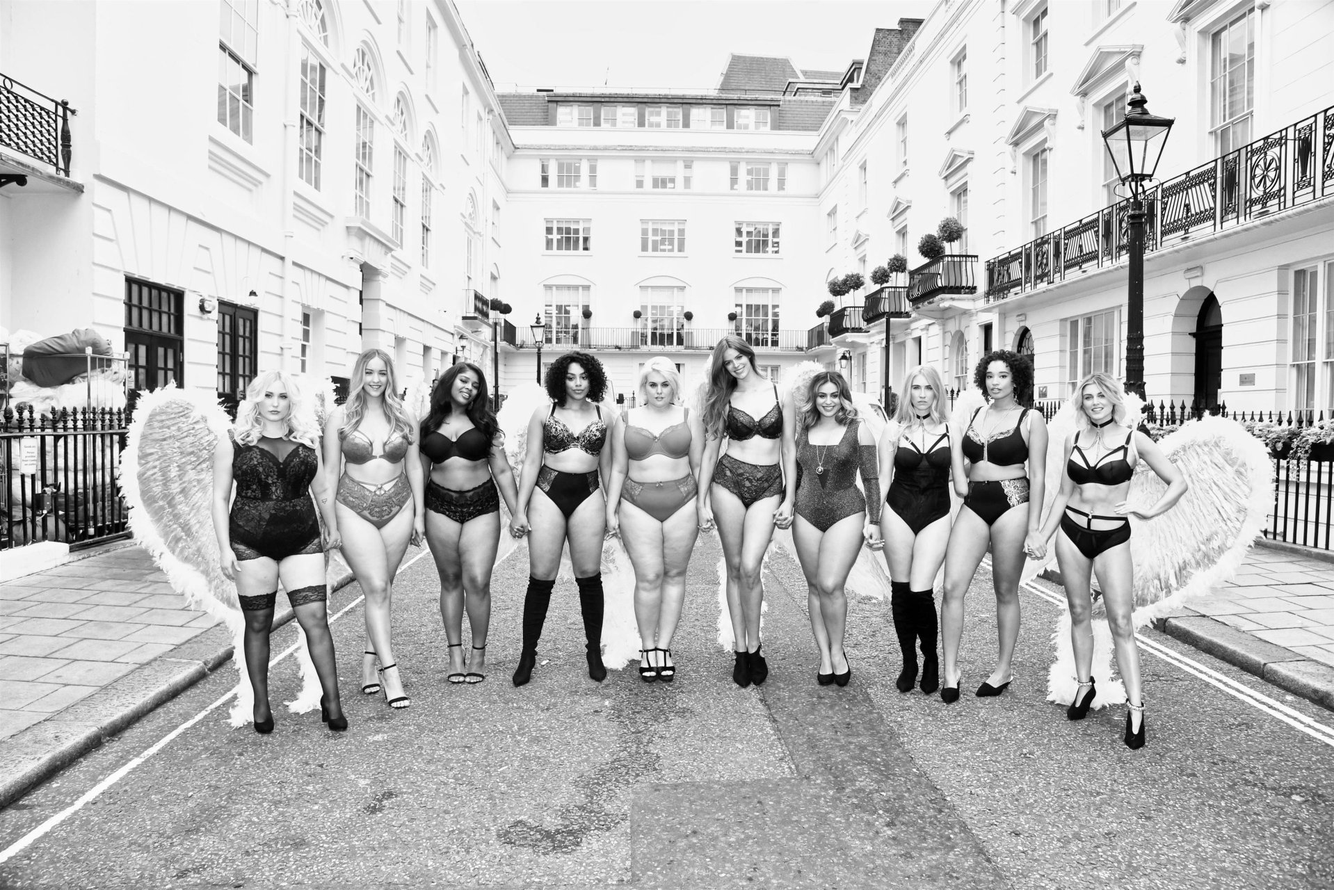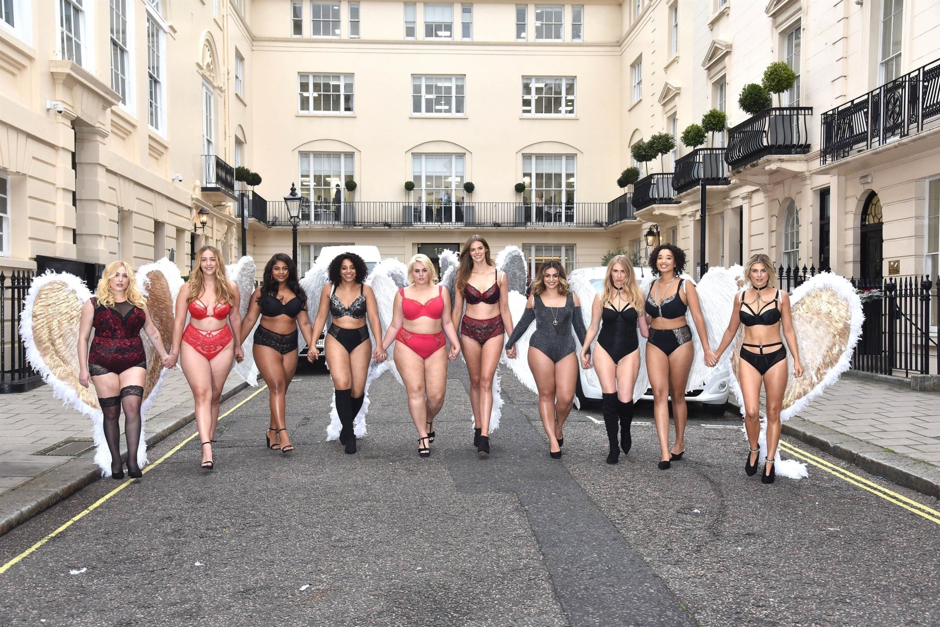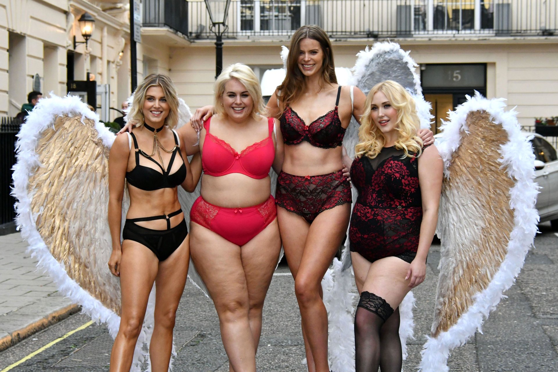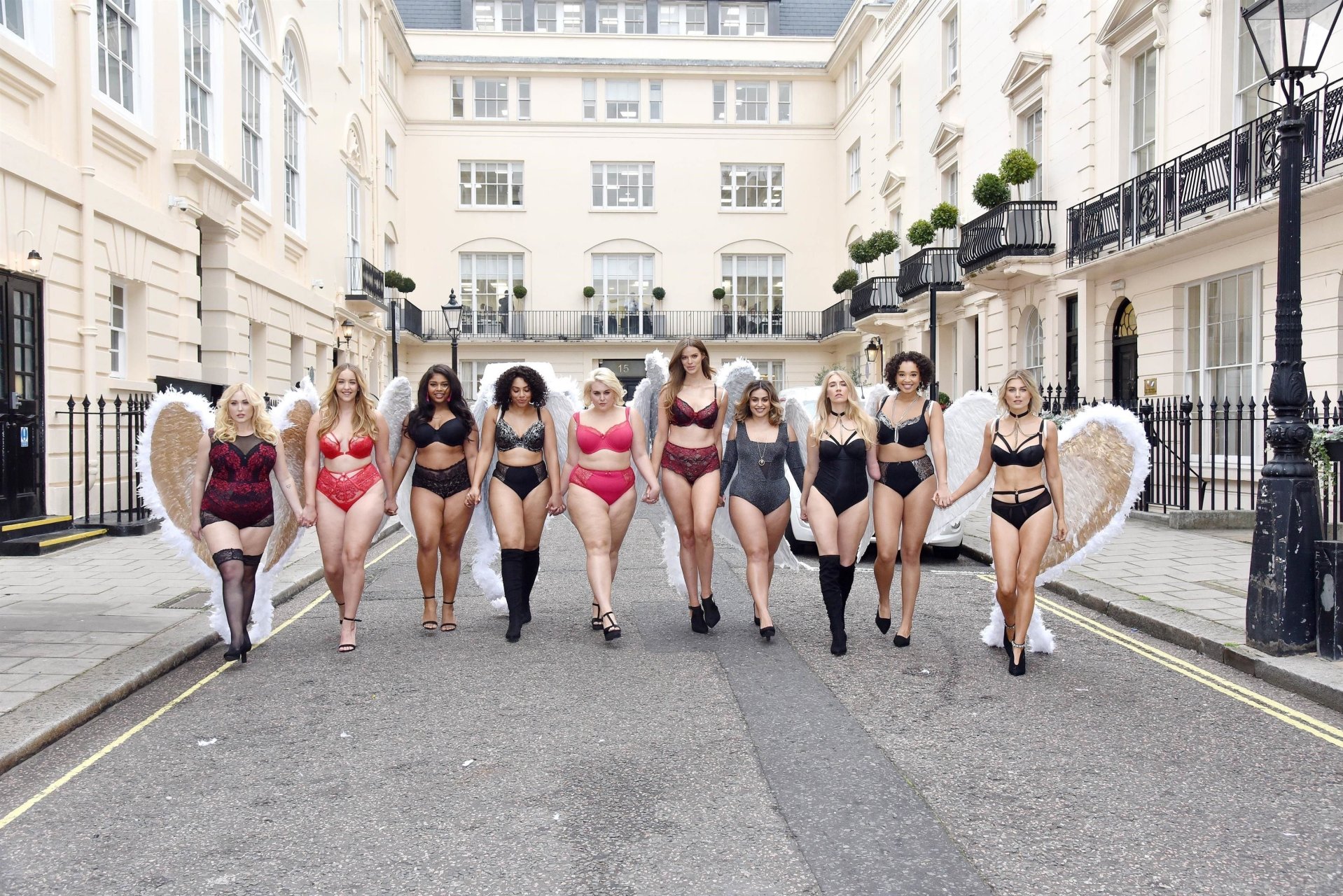 Ashley James, Robyn Lawley, Hayley Hasselhoff, Kelly Knox, Felicity Hayward, Joann van den Herik, e outras modelos foram vistas em um desfile de lingerie apresentando a coleção de Natal da Simply Be, 06/11/2018. Dez modelos desfilaram no evento, mostrando dois looks em Londres.