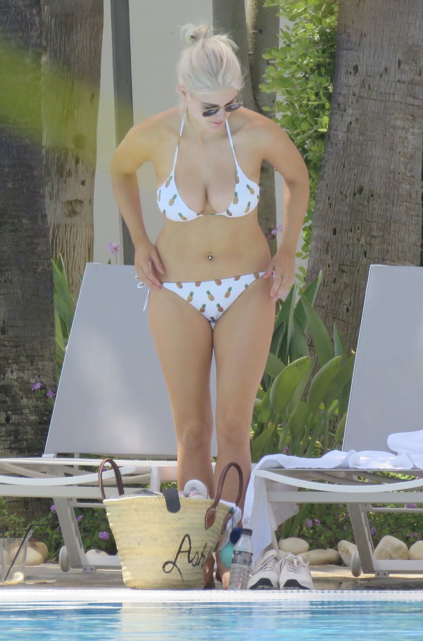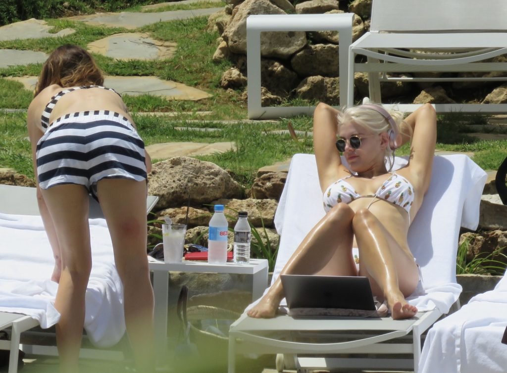 Ashley James exibe seus super seios à beira da piscina em Marbella, 27/05/2017. Ashley James é modelo, blogueira, apresentadora de TV, estrela de reality show (‘Made In Chelsea’). Idade – 30 anos.