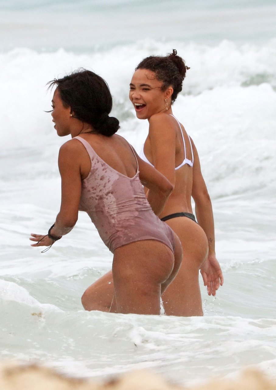 Ashley Moore foi vista com uma amiga na praia em Tulum, México, 11/06/2017. Ashley Moore é uma modelo americana, ex de Justin Bieber. Idade: 23 anos (nascida em 15 de julho de 1993).