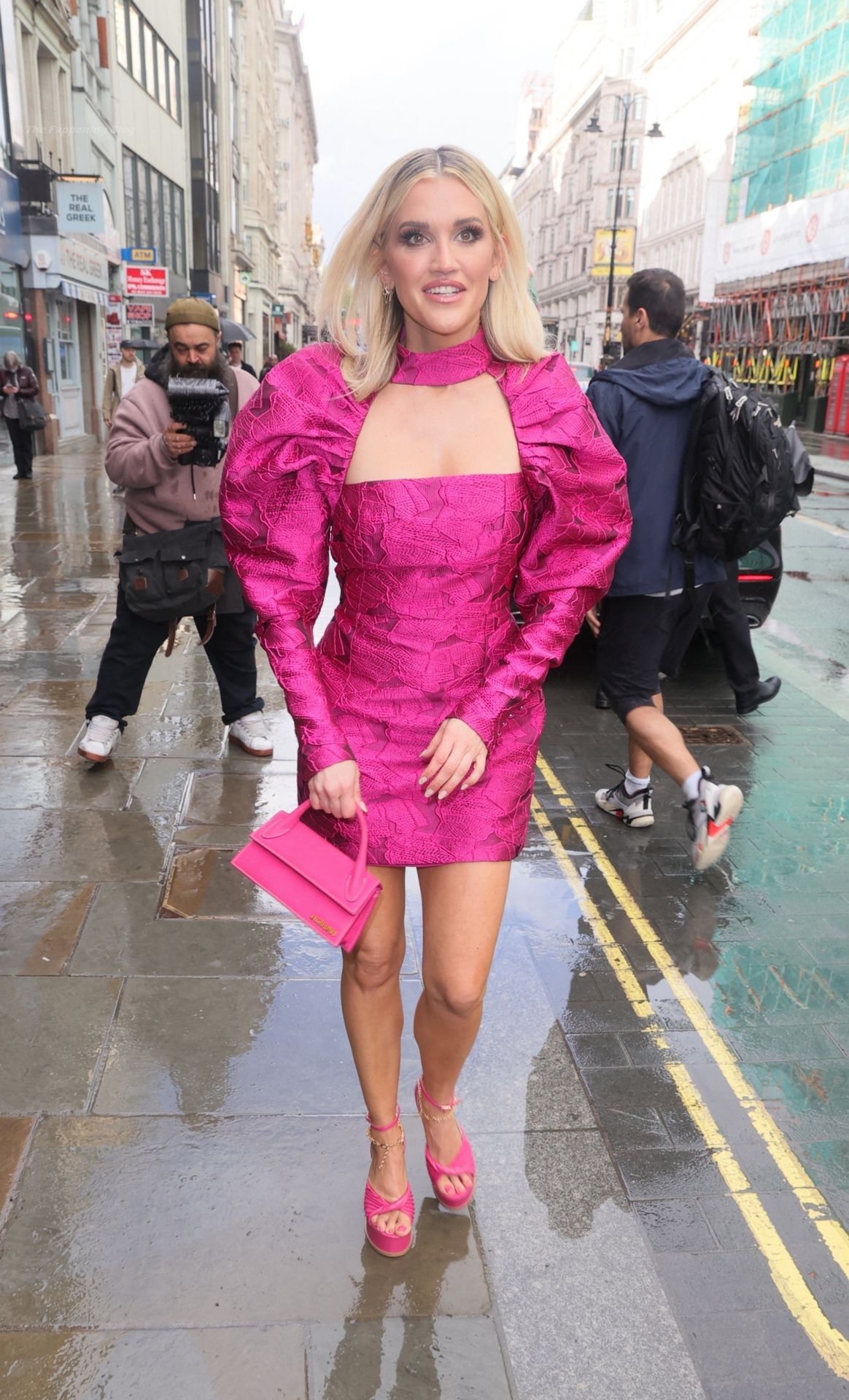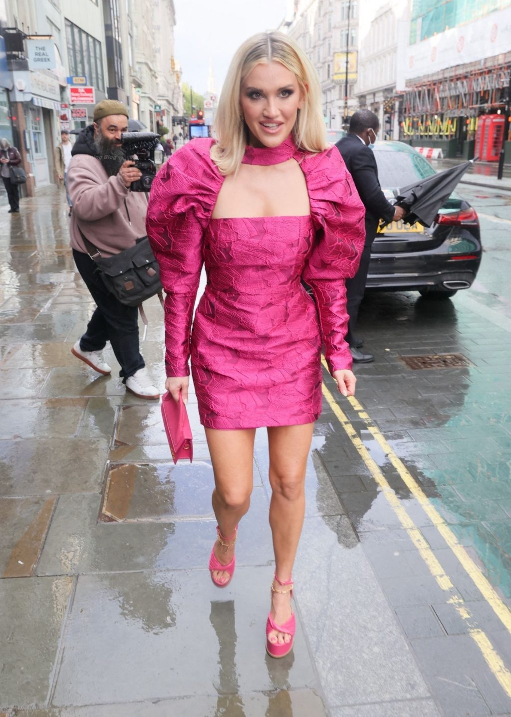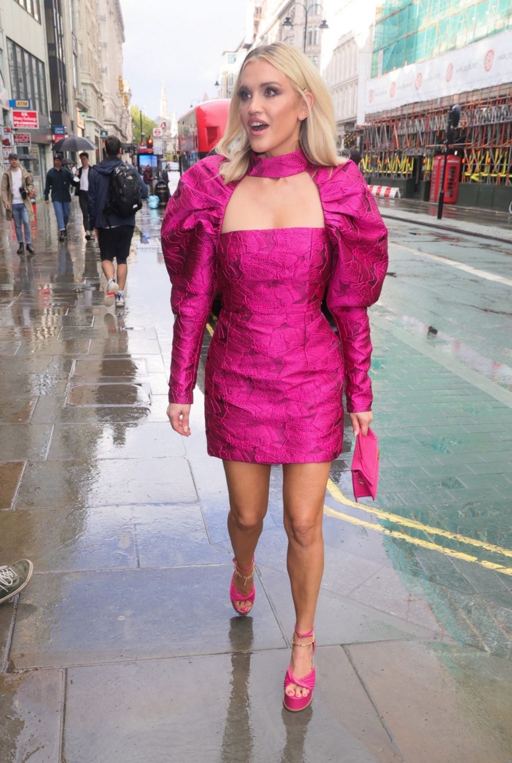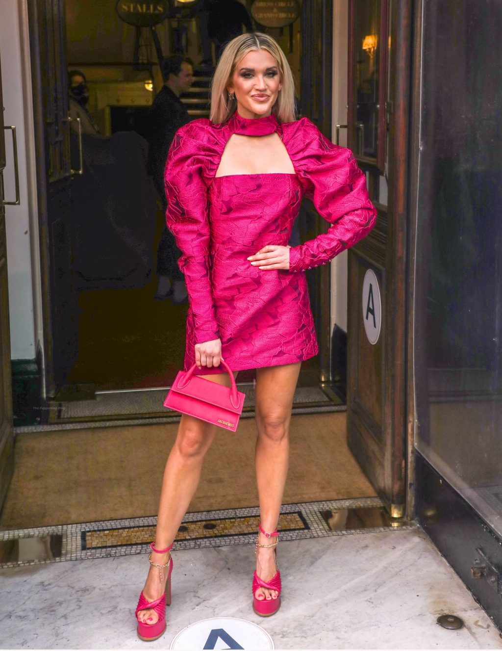 Ashley Roberts, de pernas longas, parece bonita com um vestido rosa no Vaudeville Theatre Drag Queens of Pop Press night em Londres, 18/05/2021.