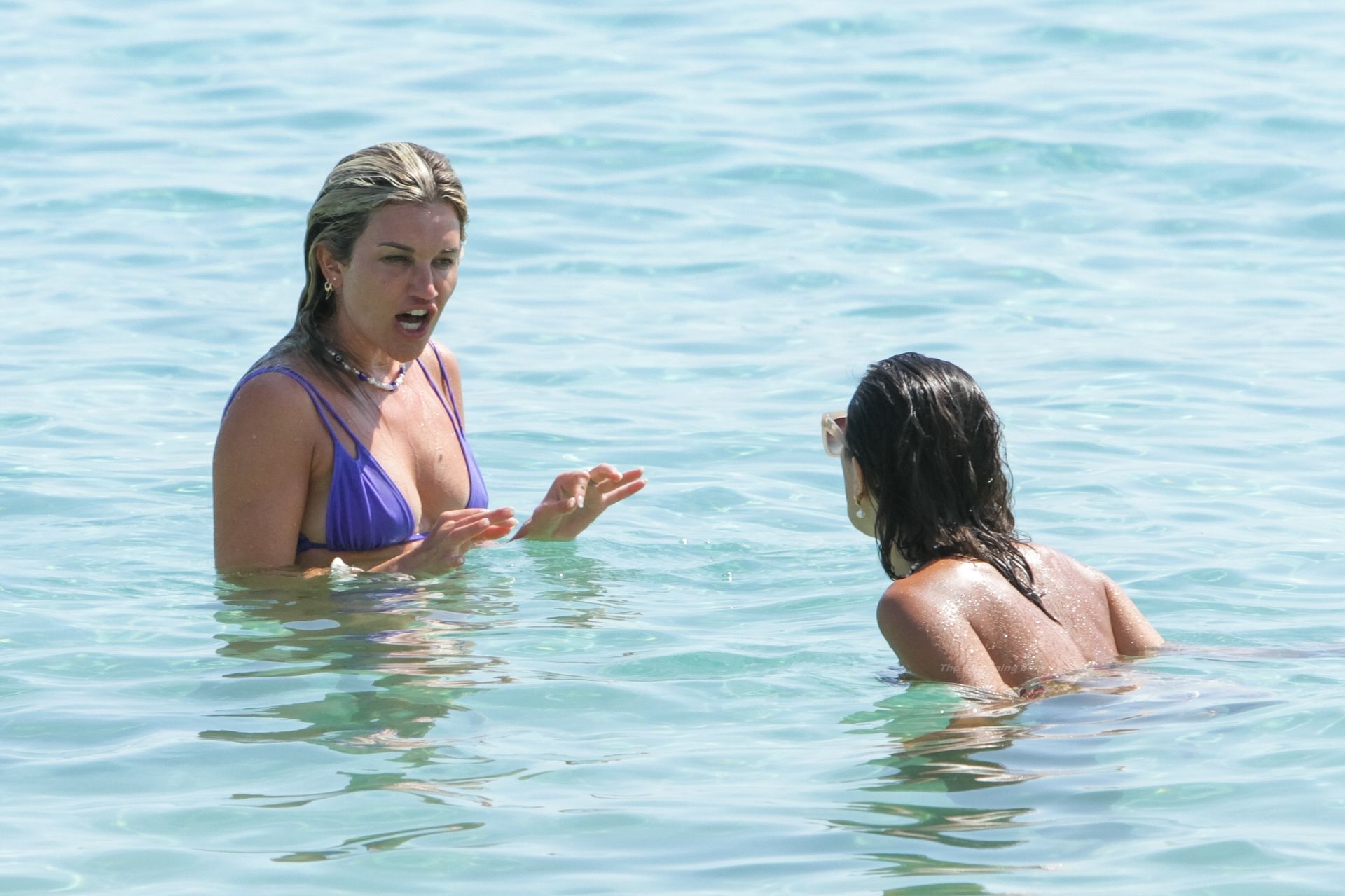 Cantora e apresentadora de TV/rádio Ashley Roberts é vista exibindo sua figura invejável em um biquíni fio dental azul enquanto está na praia em Mykonos, Grécia, 18/08/2021.