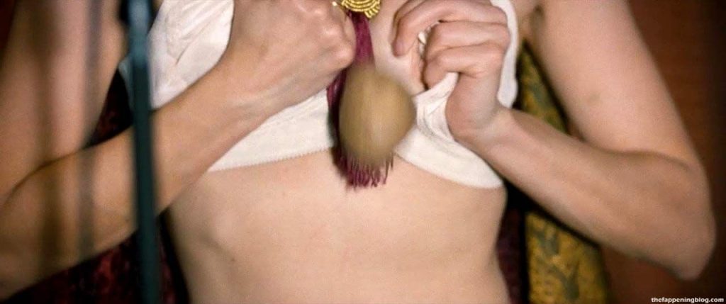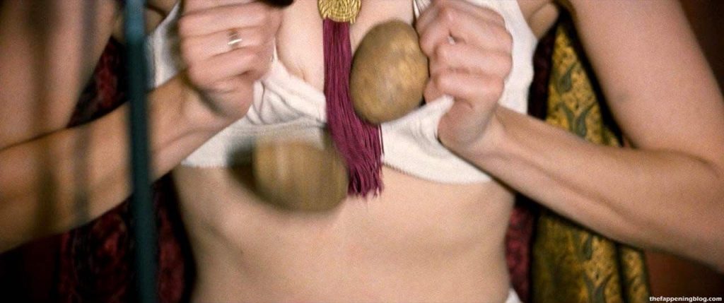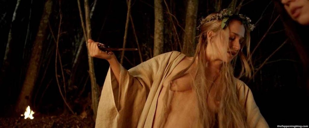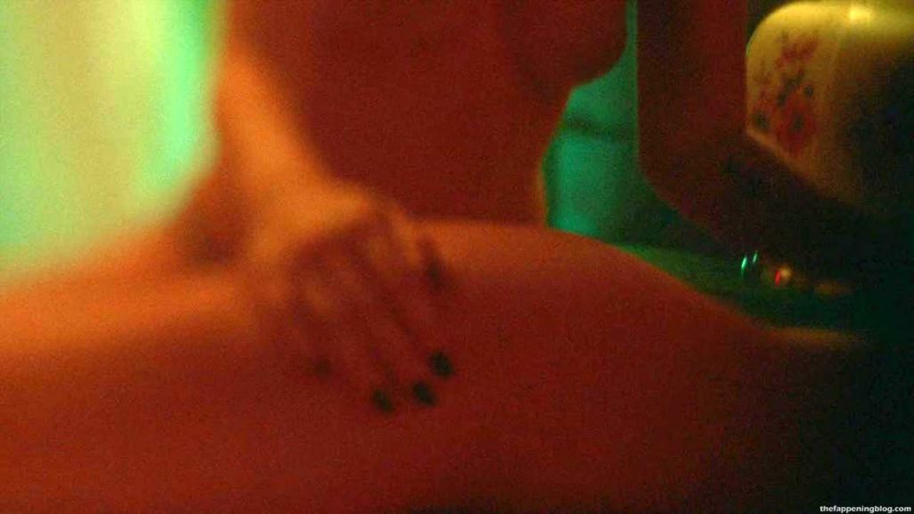 Check out one more scene of Aubrey Plaza’s naked boobs, where she is seen with Jemima Kirke and Kate Micucci. These three actresses are topless, playing witches around the tied man in the woods! Her nipple is erected; assume it was cold outside while they were filming this sexy scene!
