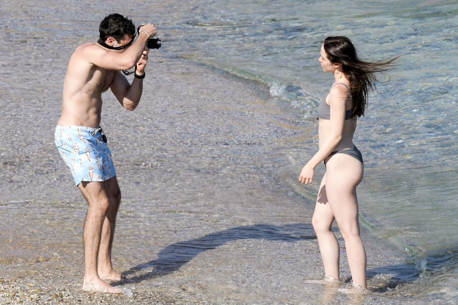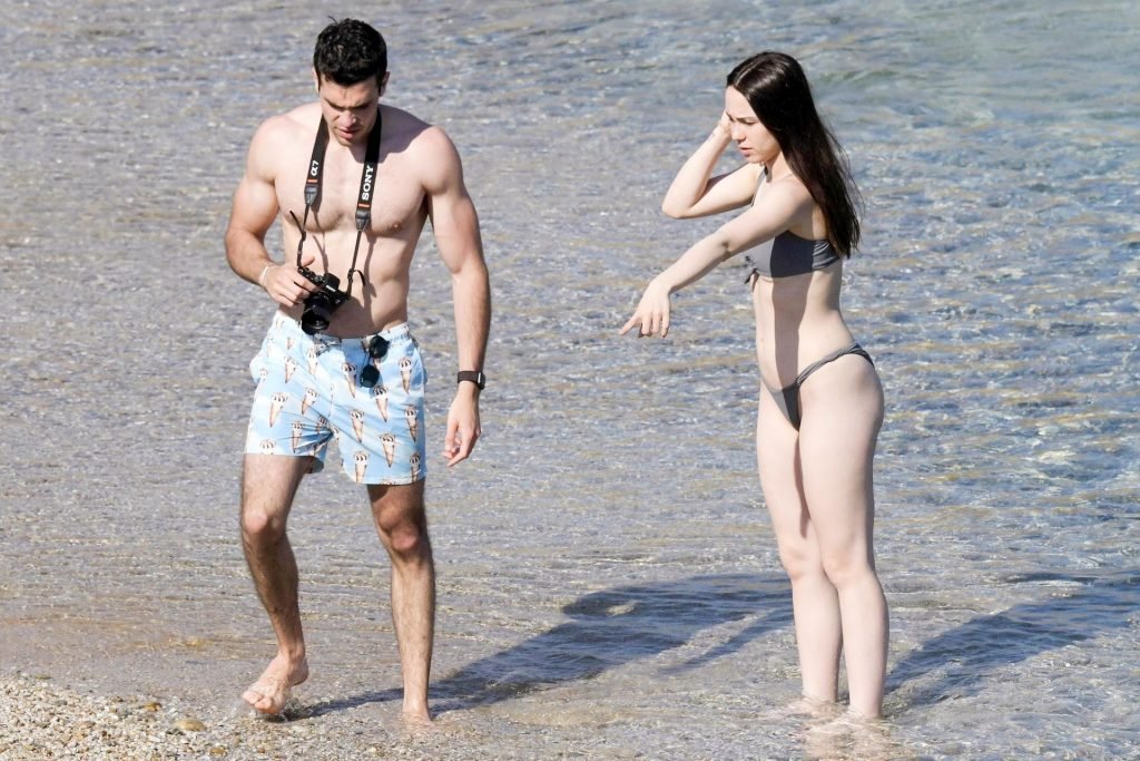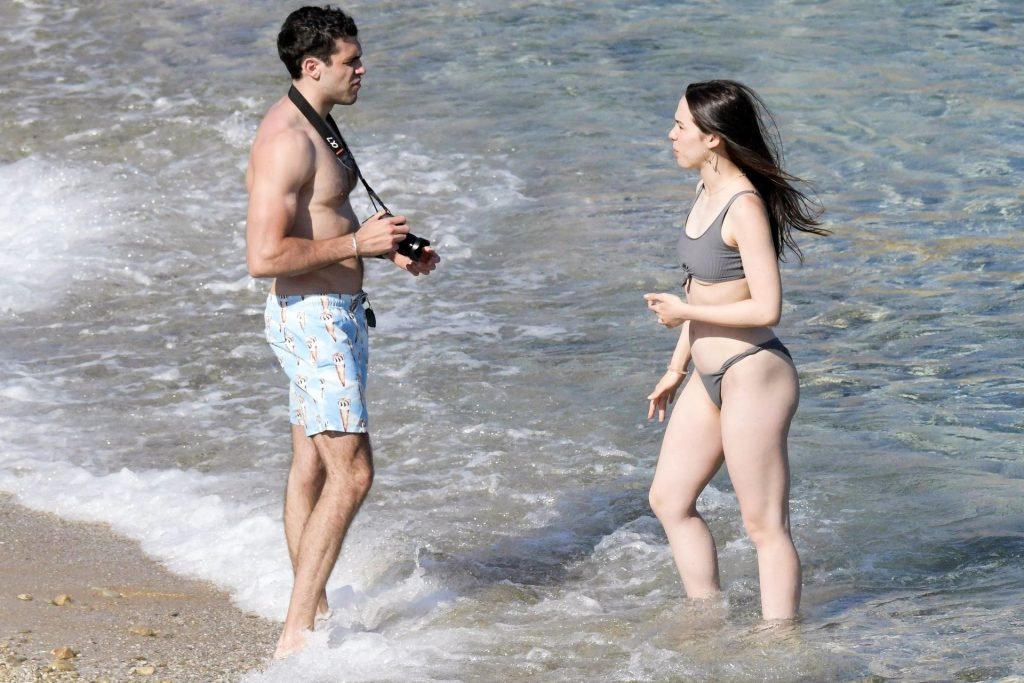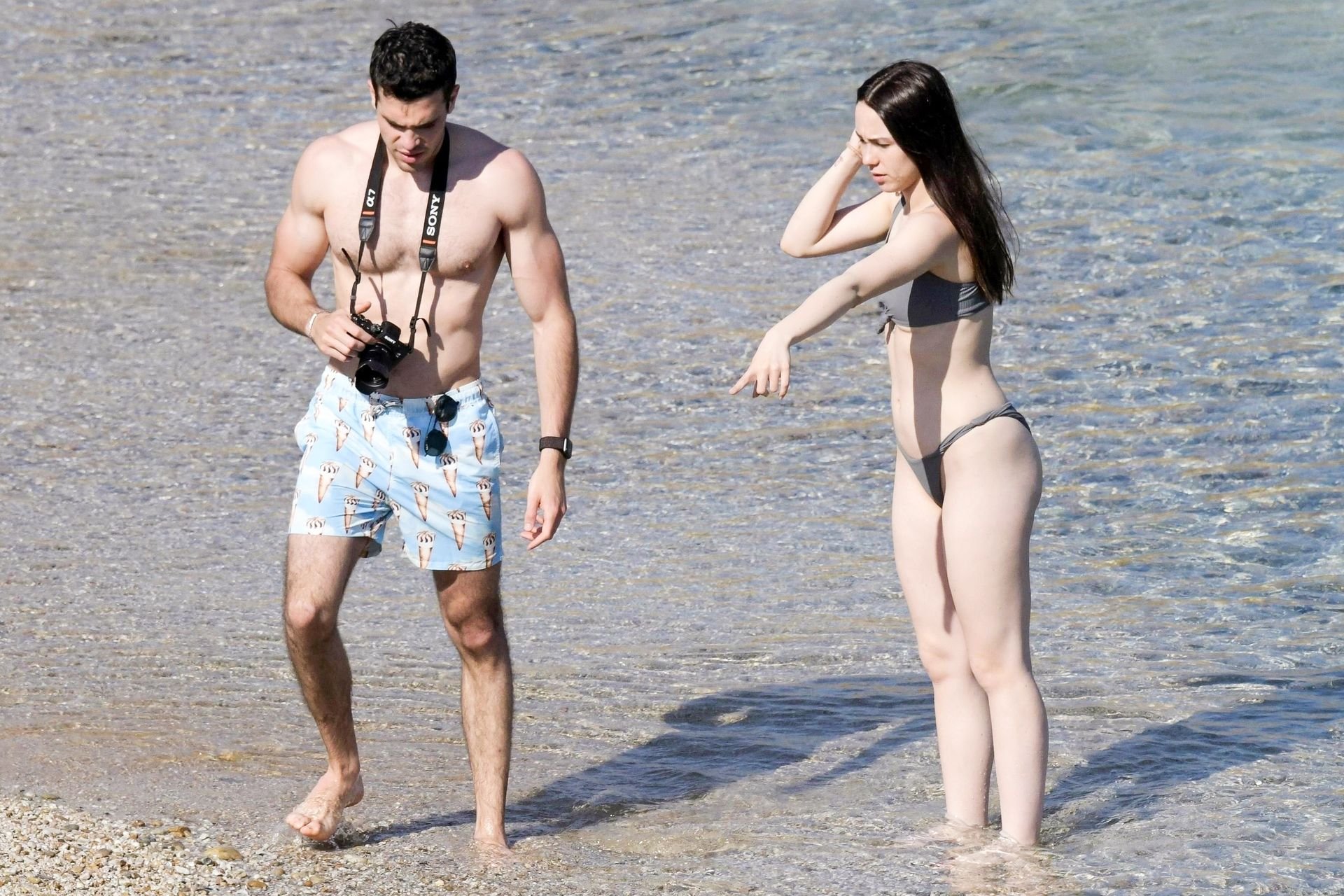 Aurora Ramazzotti, a filha de Eros Ramazzotti, e seu namorado Goffredo Cerza passaram um tempo na praia do luxuoso resort Liasti, 09/06/2019.