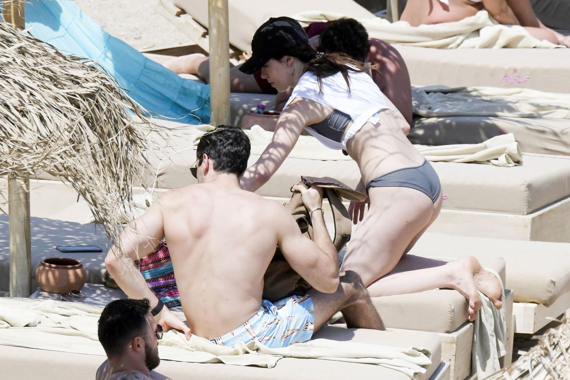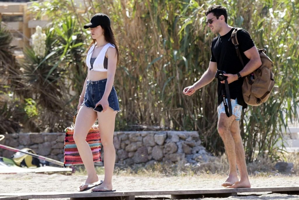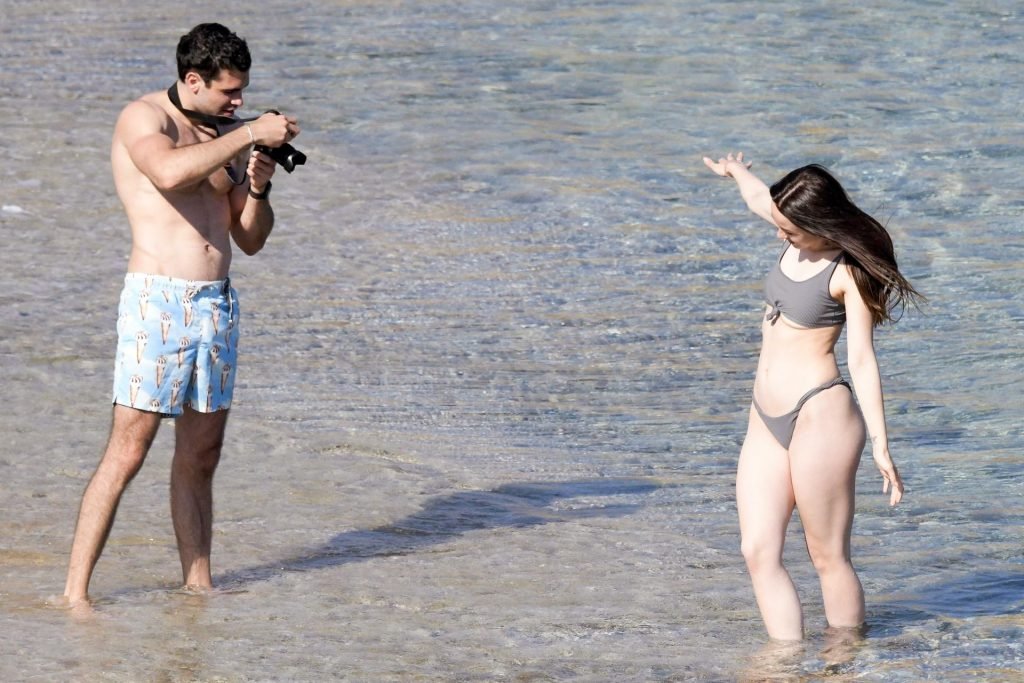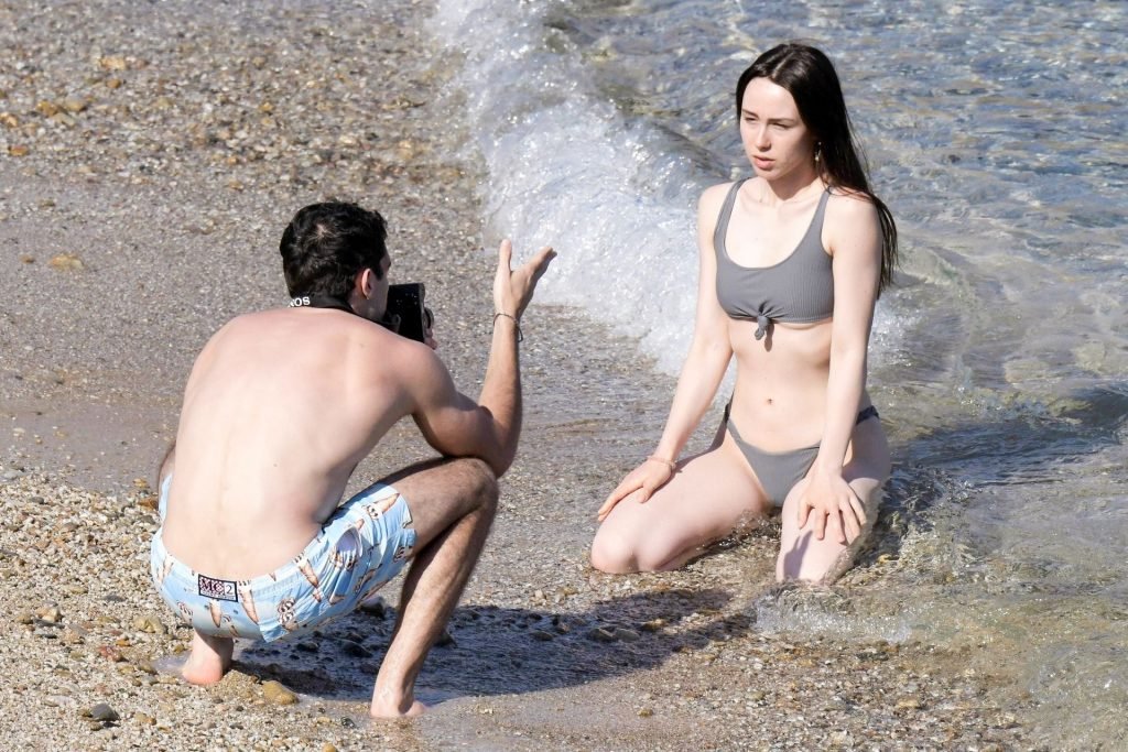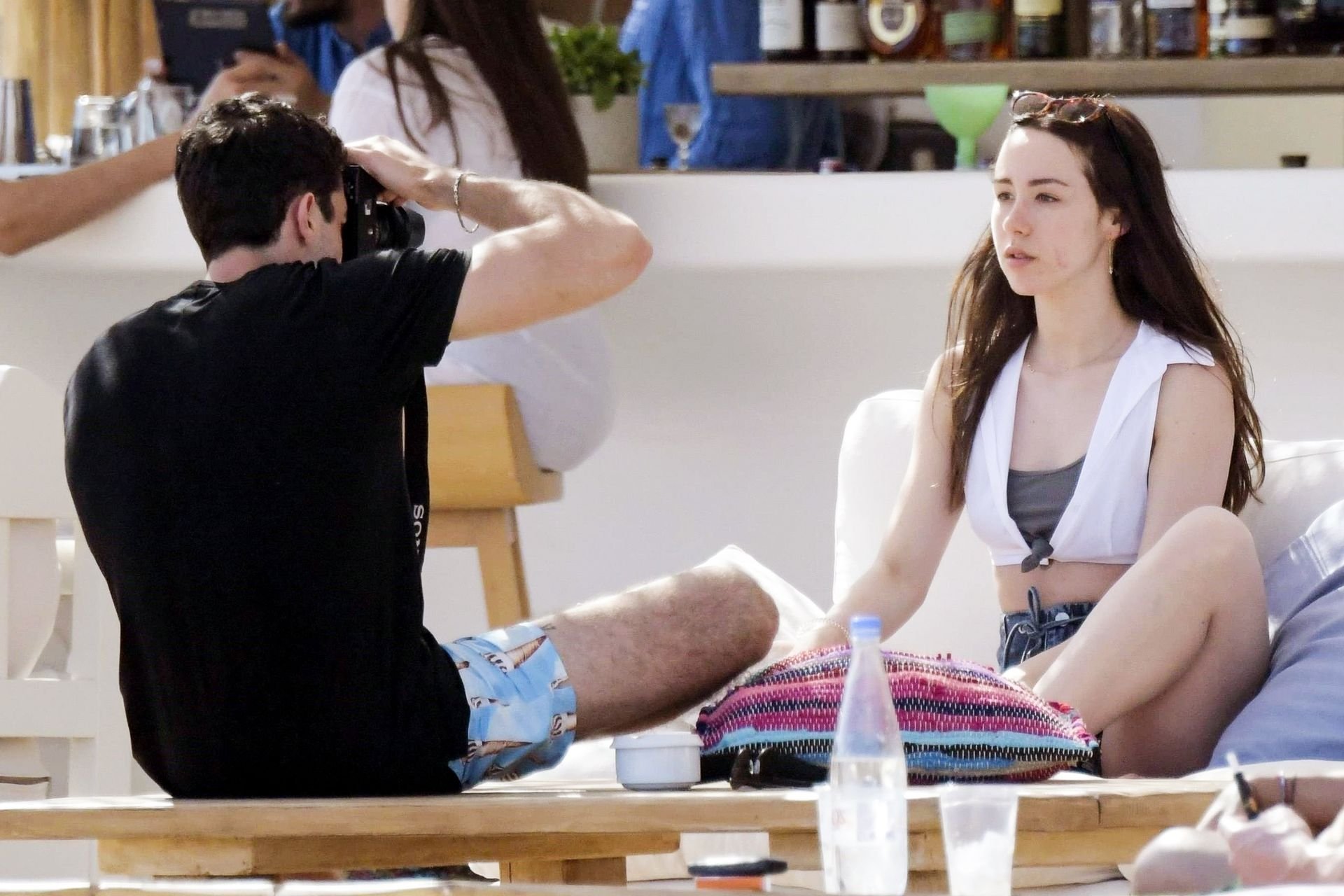 Aurora Ramazzotti, a filha de Eros Ramazzotti, e seu namorado Goffredo Cerza passaram um tempo na praia do luxuoso resort Liasti, 09/06/2019.