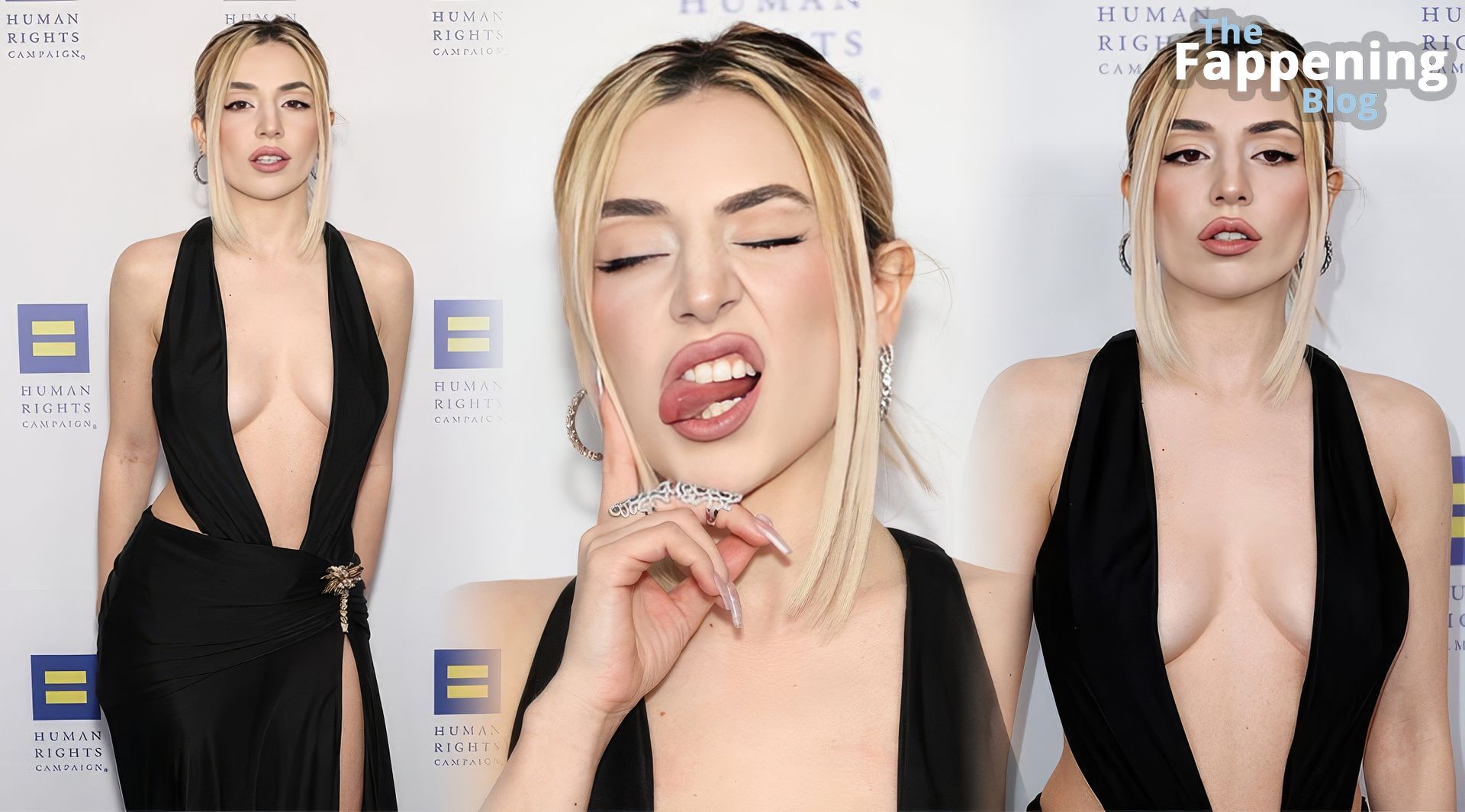 Descubra como Ava Max chamou a atenção de todos com suas escolhas de moda no Jantar da Human Rights Campaign 2023 em LA, realizado no The JW Marriott L.A. Live em Los Angeles, desde seu decote sem sutiã até seu vestido deslumbrante, 25/03/2023.