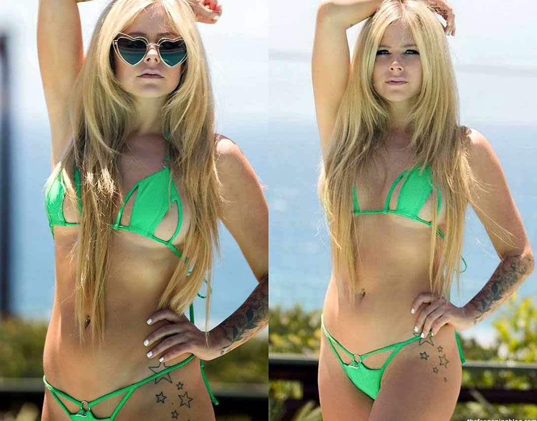 Confira o que o verão de 2021 nos trouxe! Aqui estão algumas novas fotos sexy da Avril Lavigne de biquíni! Ela posou para algumas fotos tiradas por alguém que ainda não sabemos quem é. Ela posou com um biquíni verde pequeno, e seu mamilo ficou meio visível em algumas das fotos!