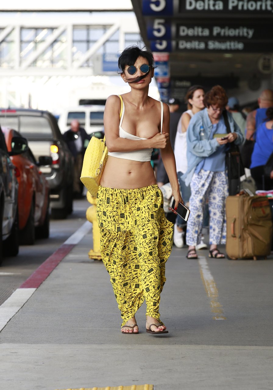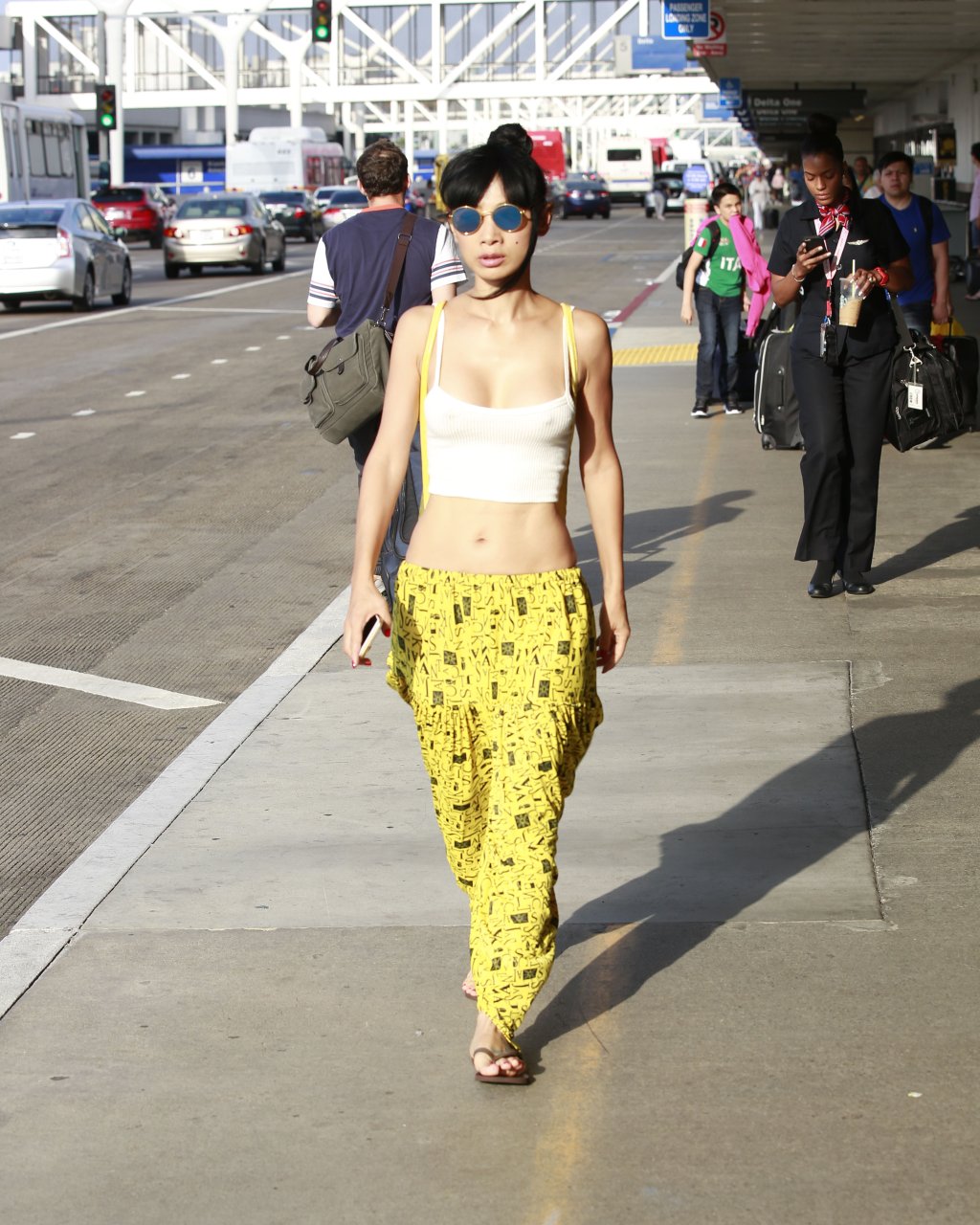 Bai Ling exibe seus seios perfeitos no LAX em Los Angeles, 01/08/2016. Mulher asiática incrível! Bai Ling é uma atriz sino-americana. Idade 49 (10 de outubro de 1966).