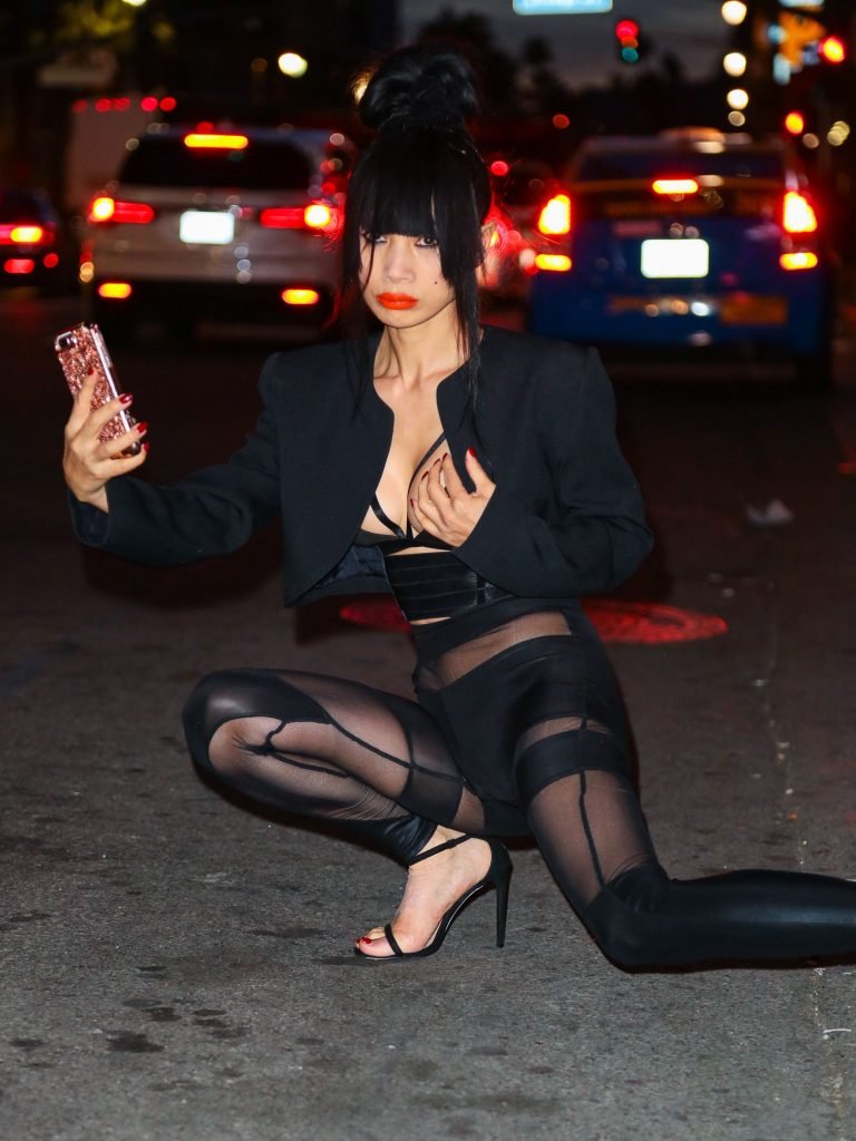 Bai Ling posa na Hollywood Boulevard em Los Angeles, 15/04/2017. Pequeno deslize de mamilo e um belo cameltoe! Bai Ling (白靈) é uma atriz sino-americana (Secret Adventures to Shanghai – 2017). Idade – 50 (nascida em 10 de outubro de 1966).