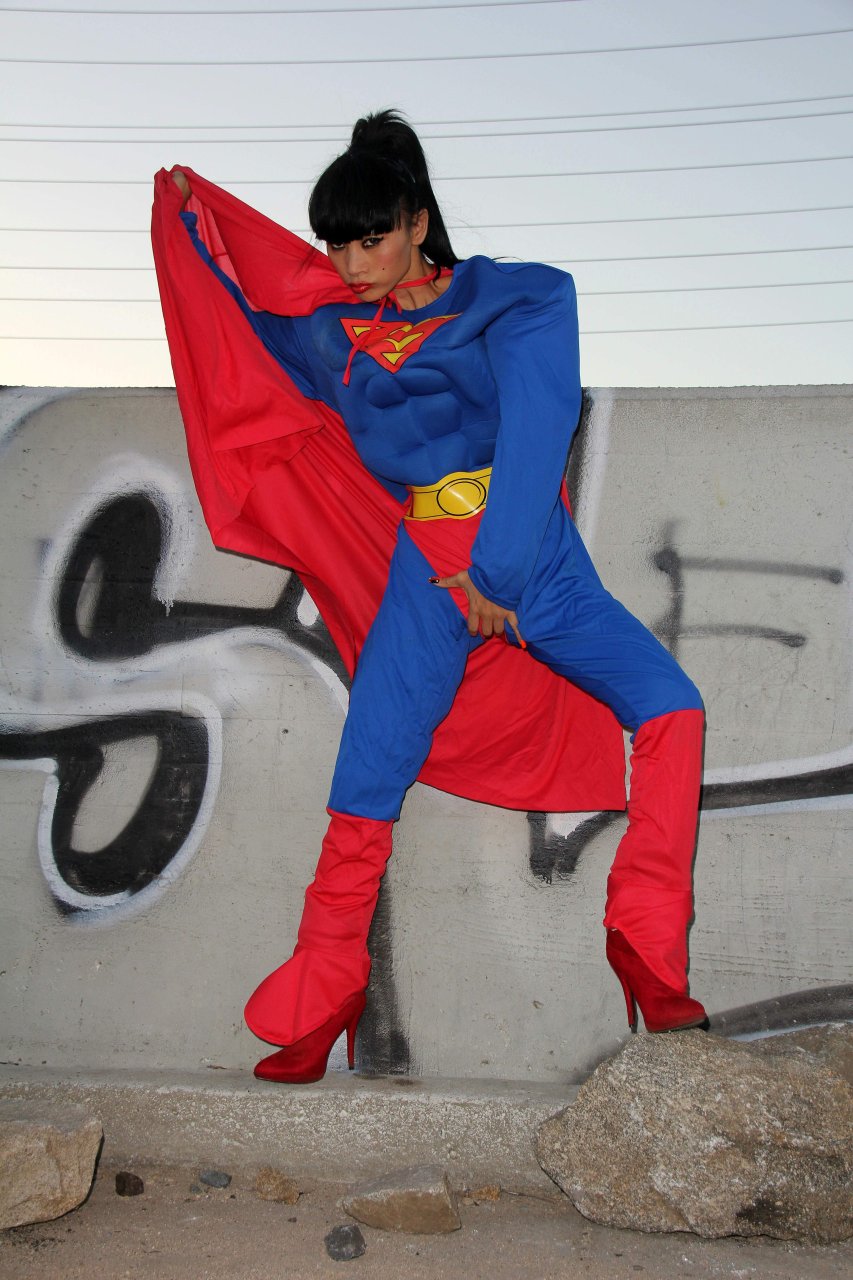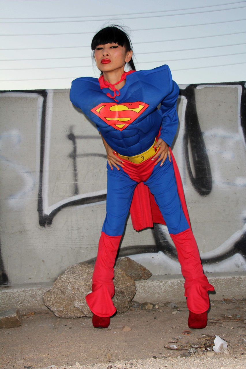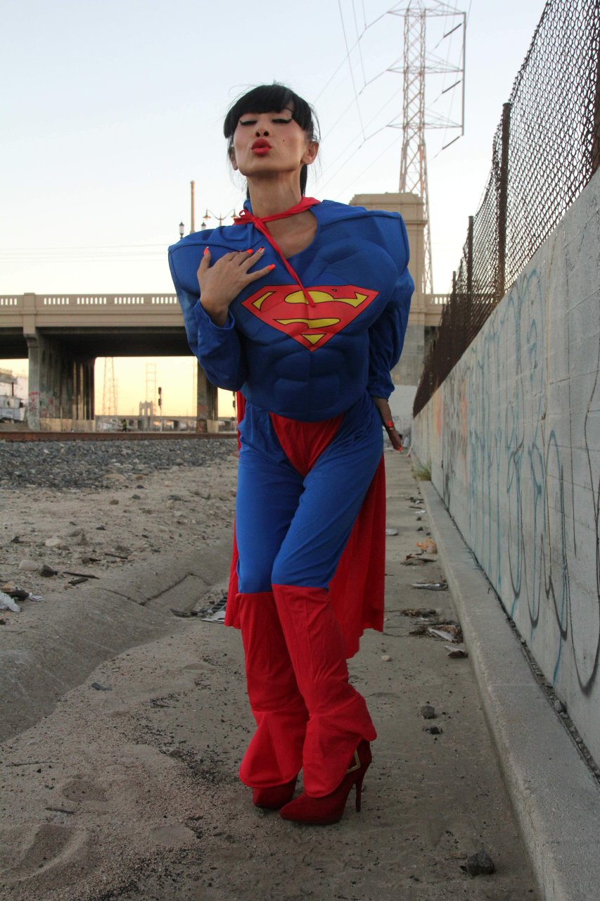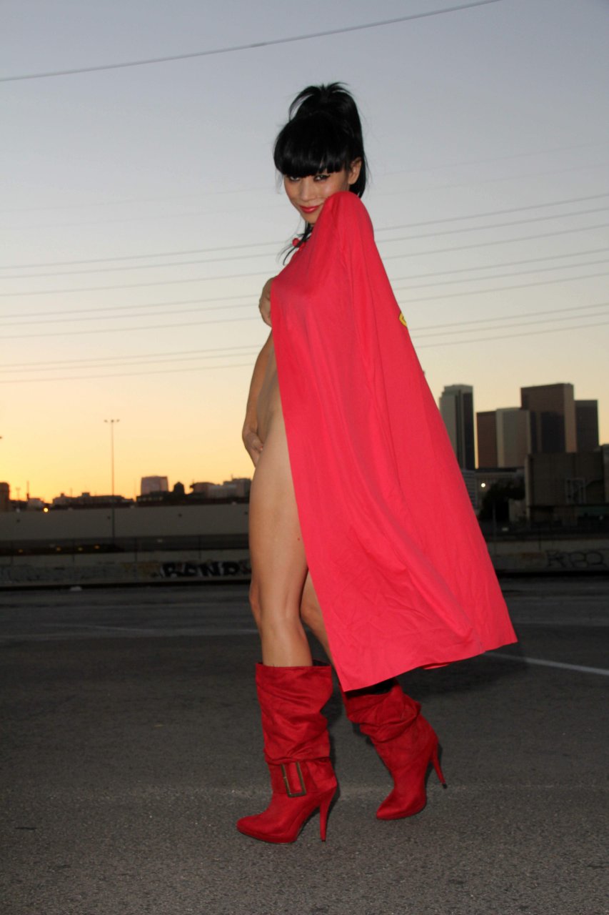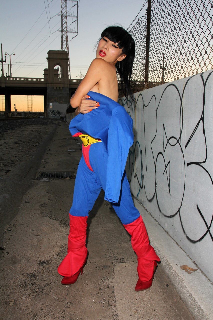 Novas fotos sensuais de Bai Ling posando com uma fantasia de Superman para o Halloween e depois ficando nua (31/10/2015). Bai Ling é uma atriz sino-americana. Idade 49 (10 de outubro de 1966).