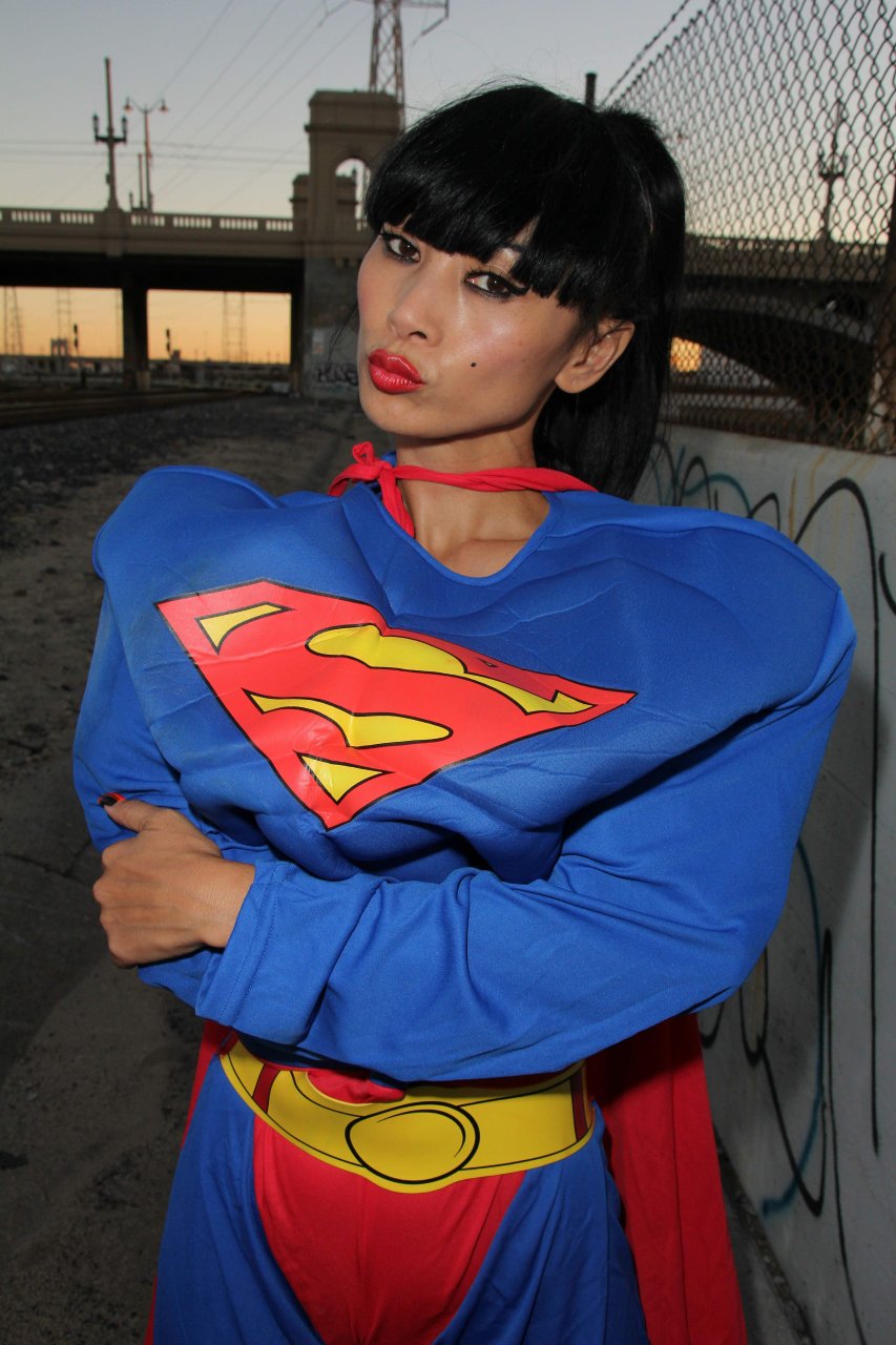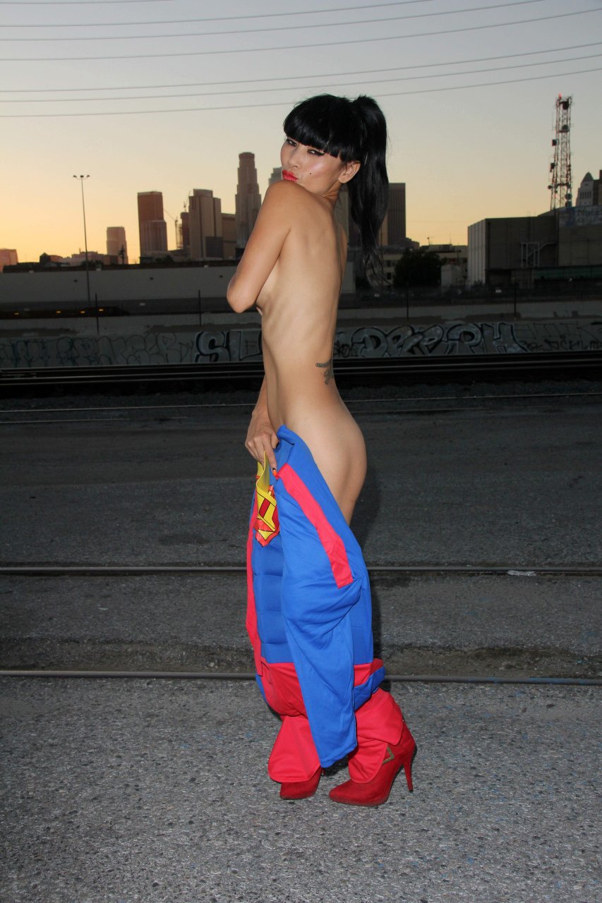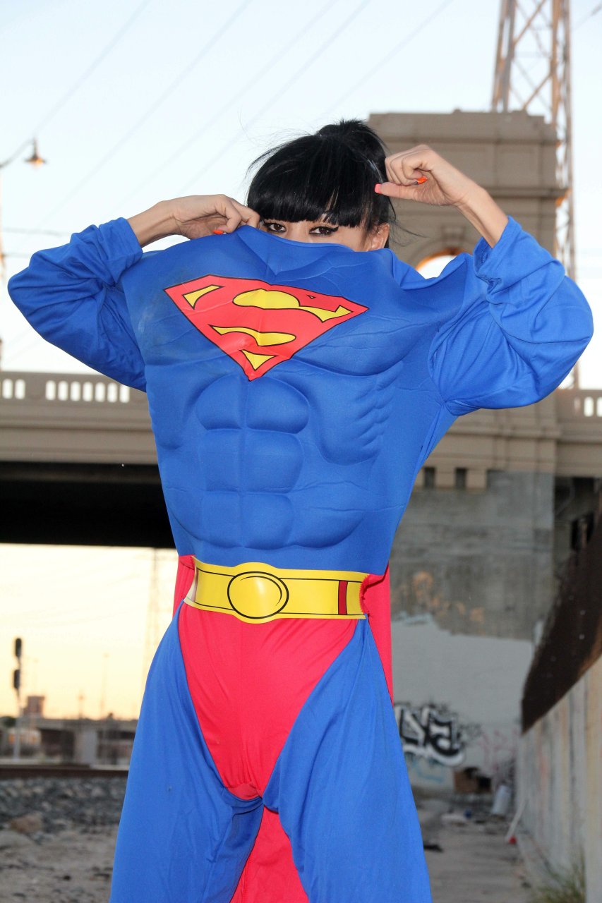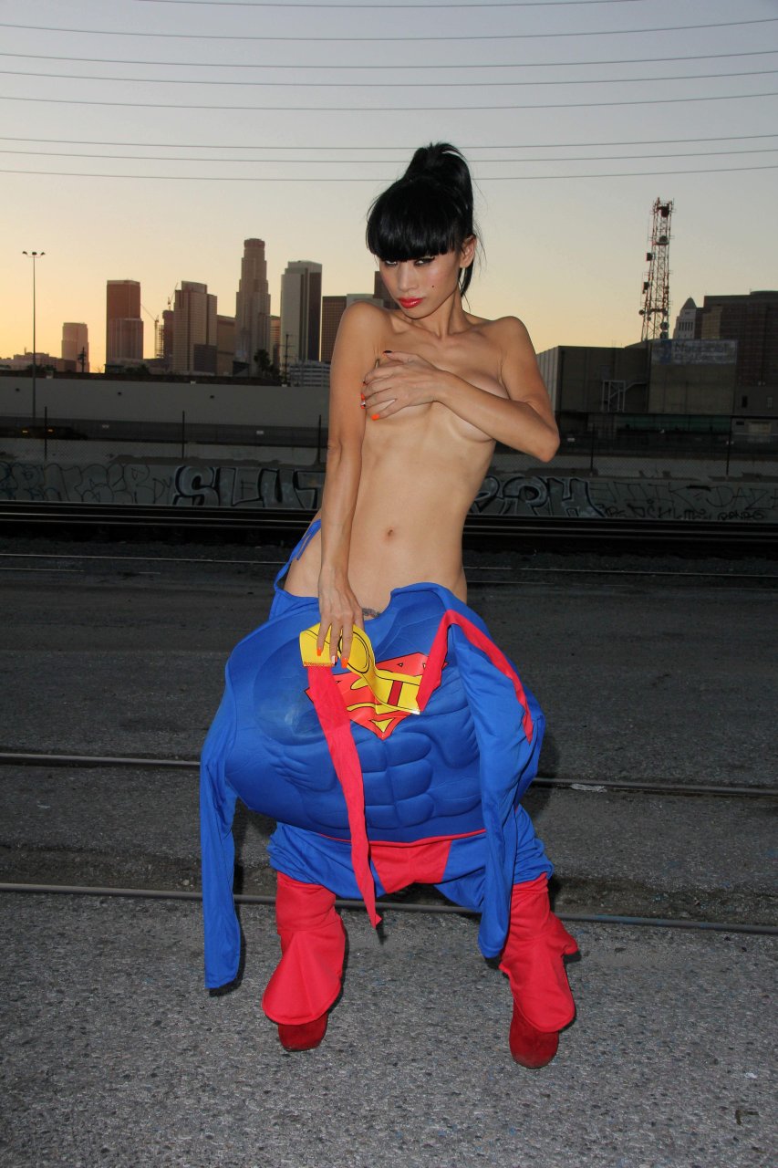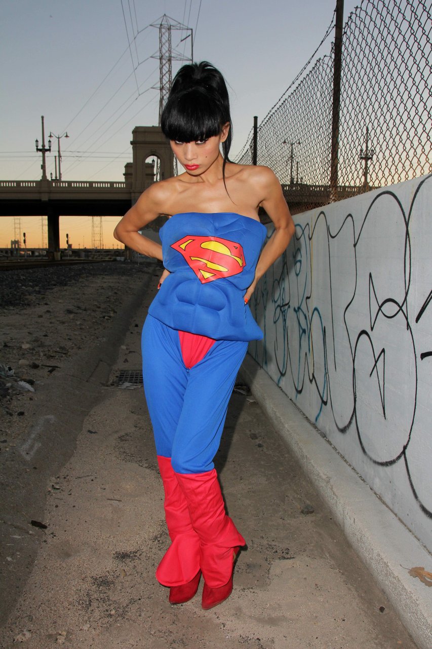 Novas fotos sensuais de Bai Ling posando com uma fantasia de Superman para o Halloween e depois ficando nua (31/10/2015). Bai Ling é uma atriz sino-americana. Idade 49 (10 de outubro de 1966).