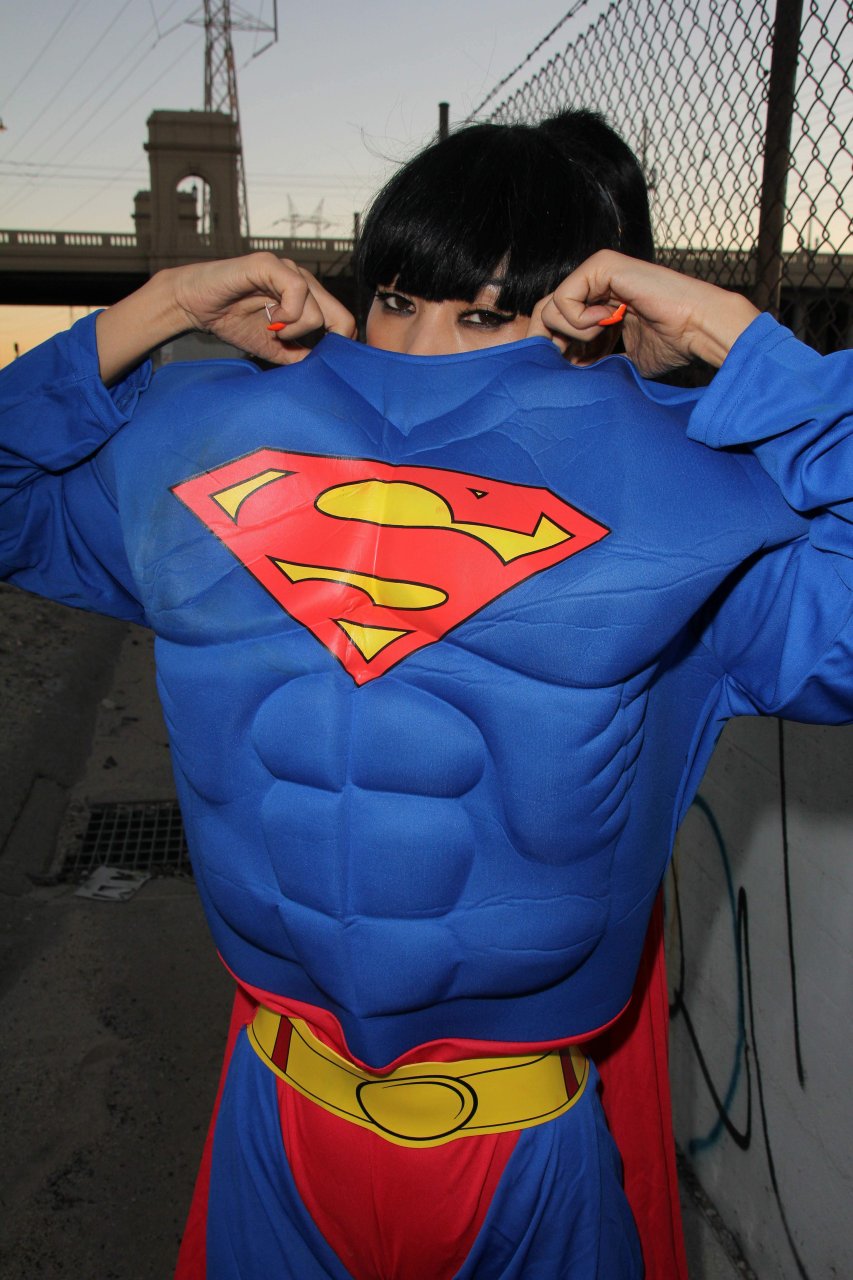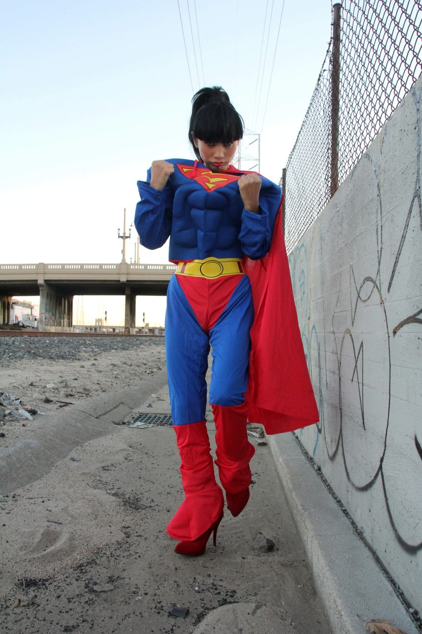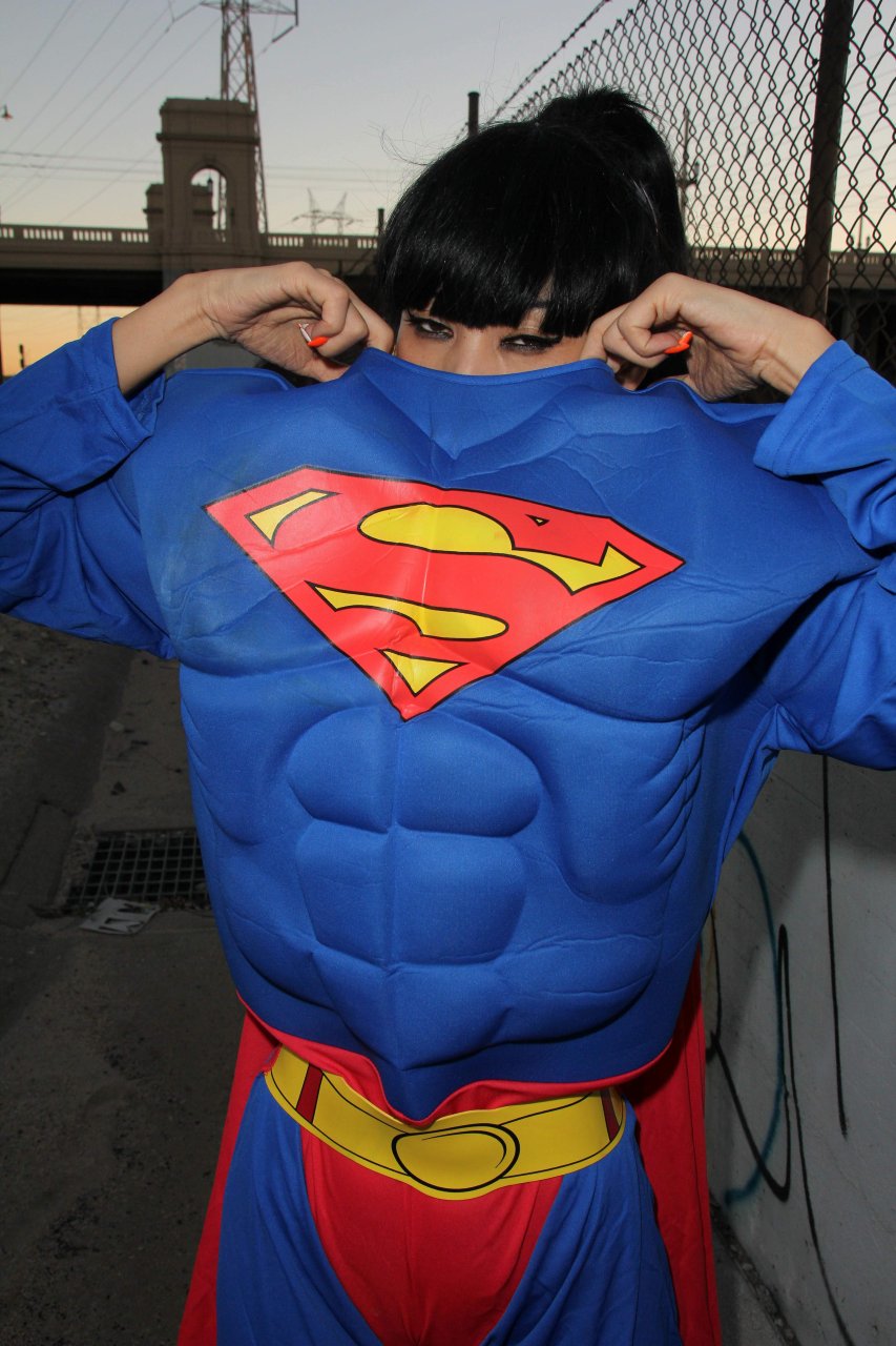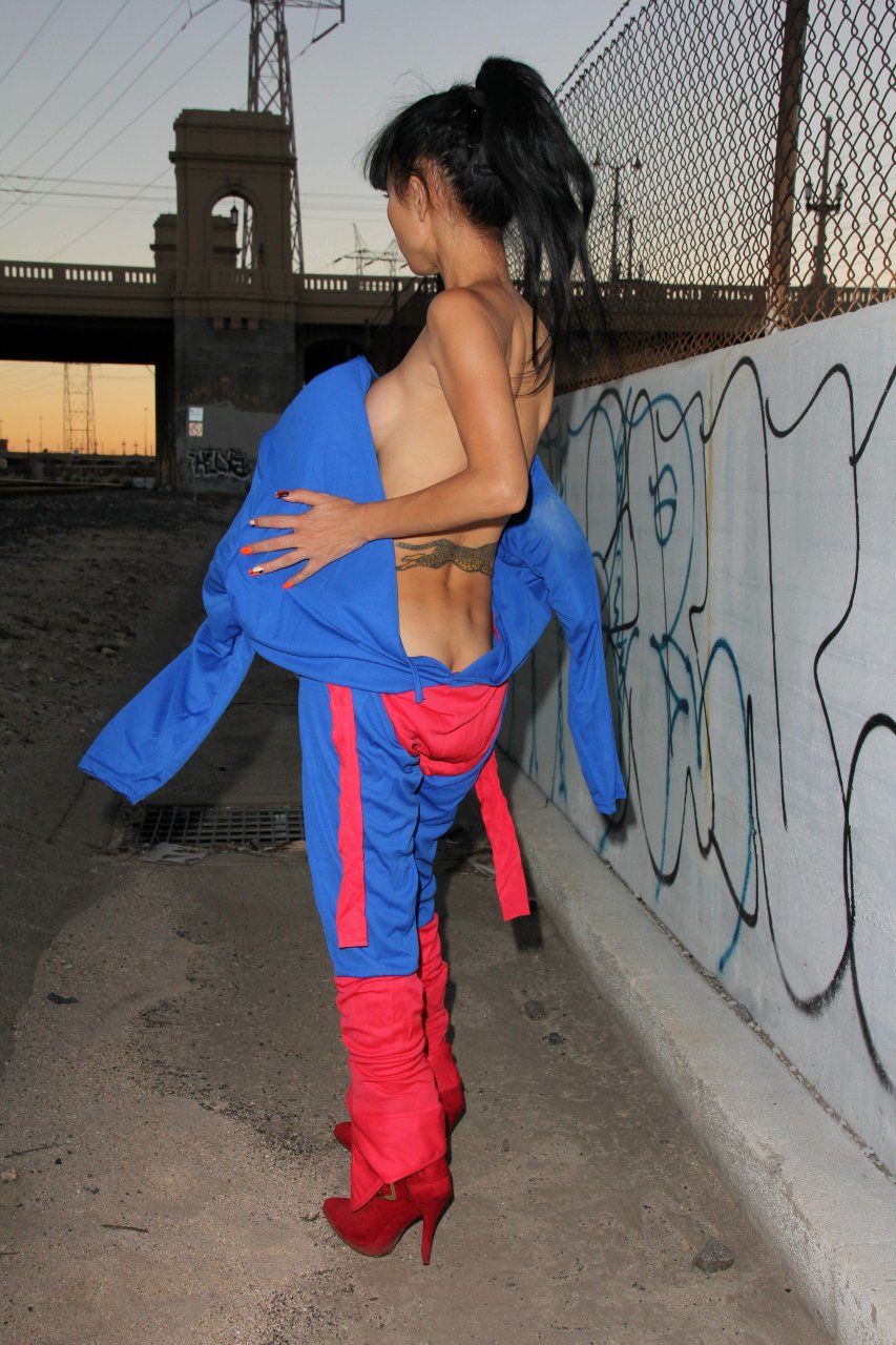 Novas fotos sensuais de Bai Ling posando com uma fantasia de Superman para o Halloween e depois ficando nua (31/10/2015). Bai Ling é uma atriz sino-americana. Idade 49 (10 de outubro de 1966).