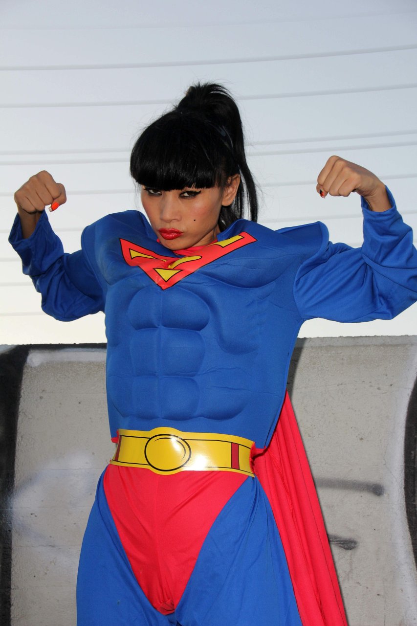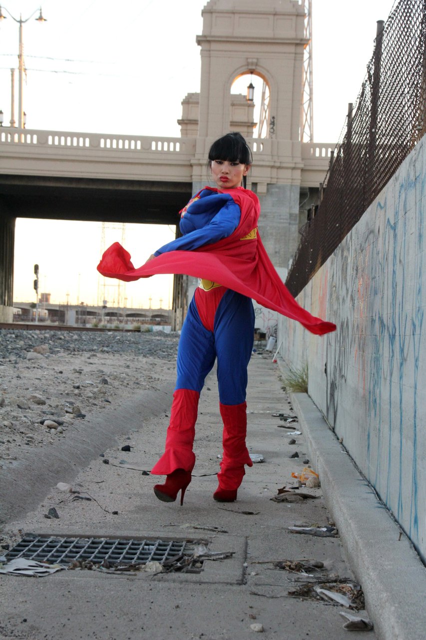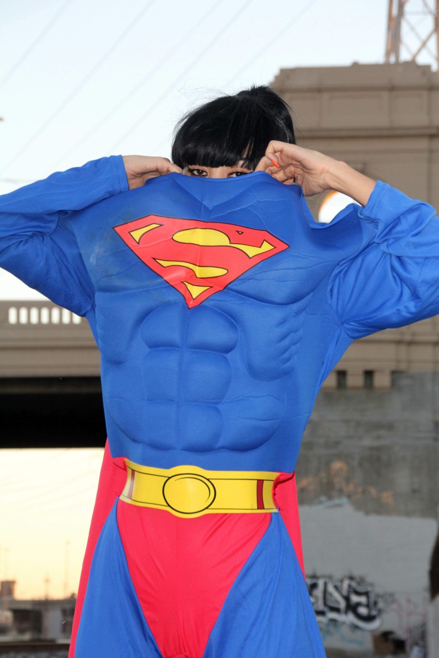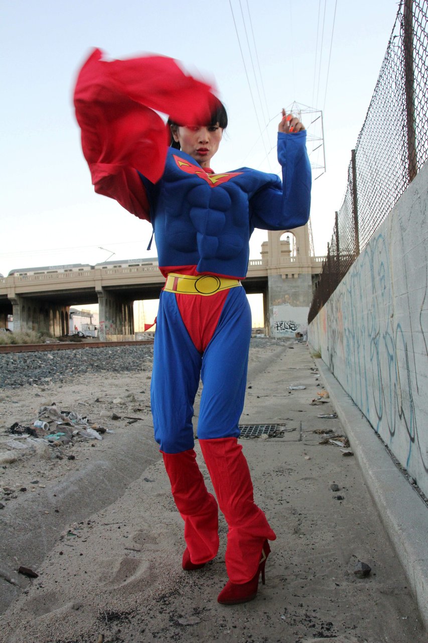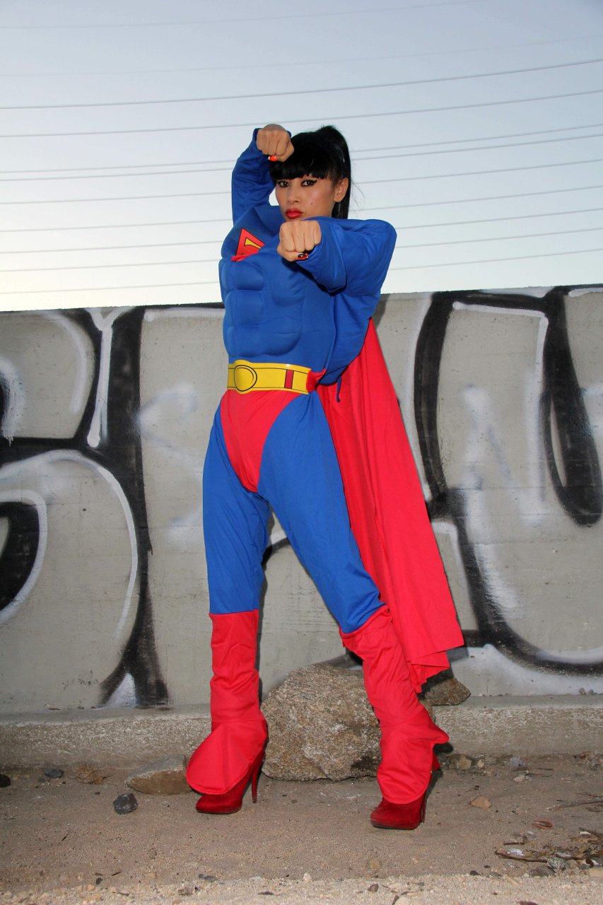 Novas fotos sensuais de Bai Ling posando com uma fantasia de Superman para o Halloween e depois ficando nua (31/10/2015). Bai Ling é uma atriz sino-americana. Idade 49 (10 de outubro de 1966).