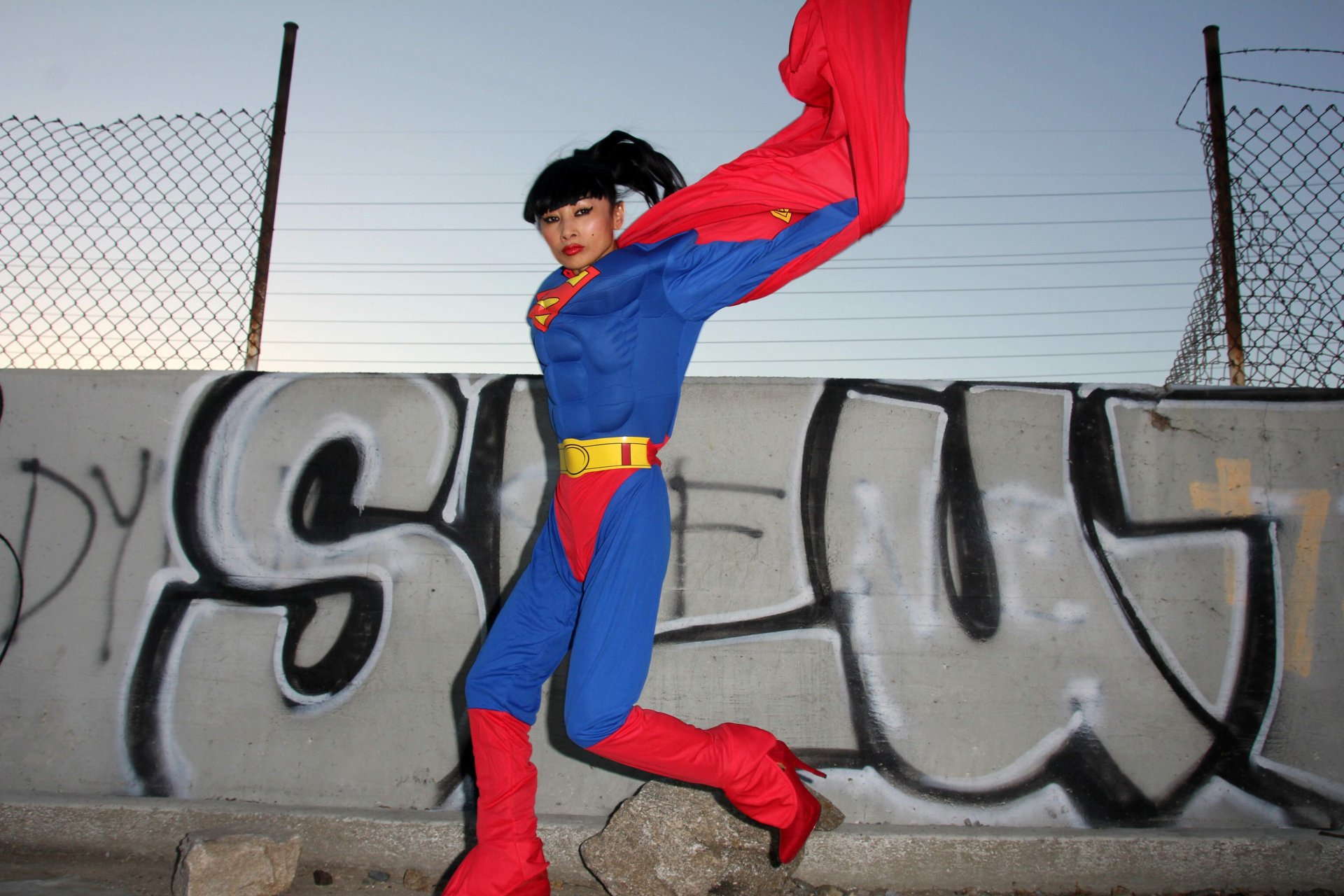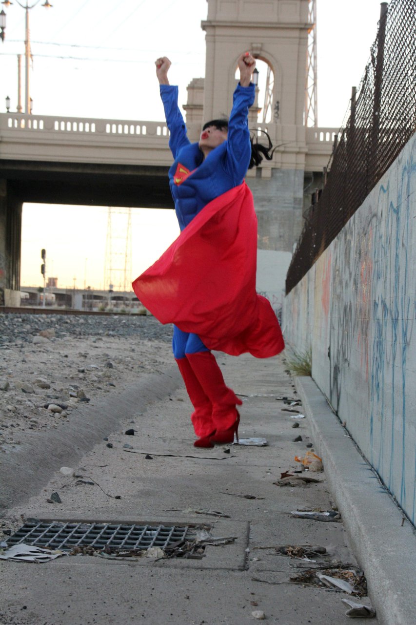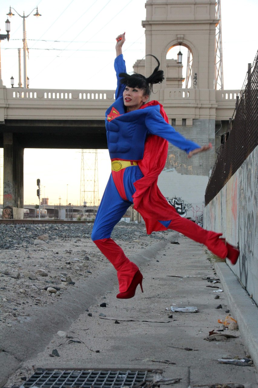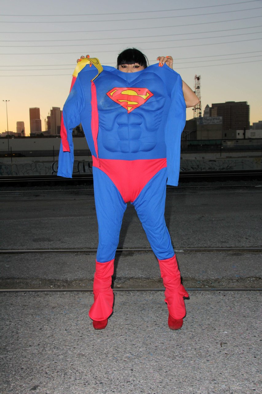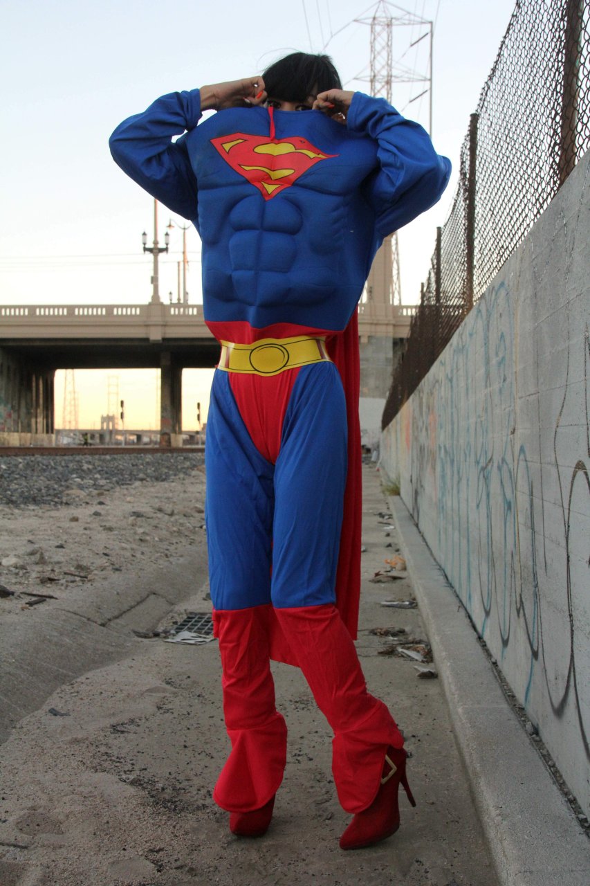 Novas fotos sensuais de Bai Ling posando com uma fantasia de Superman para o Halloween e depois ficando nua (31/10/2015). Bai Ling é uma atriz sino-americana. Idade 49 (10 de outubro de 1966).