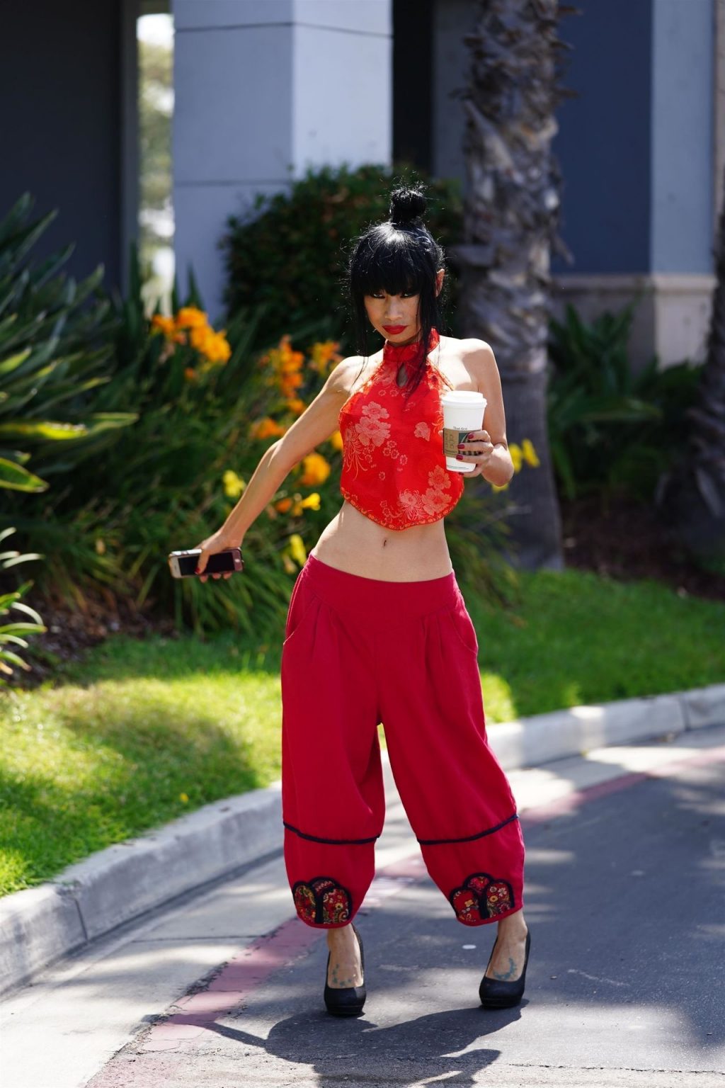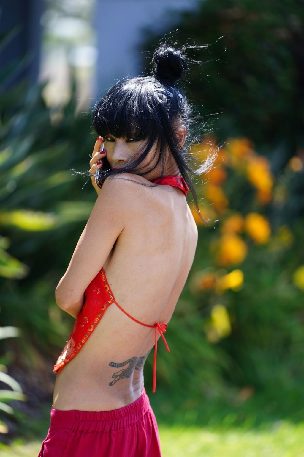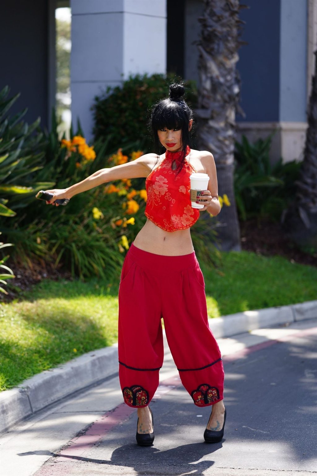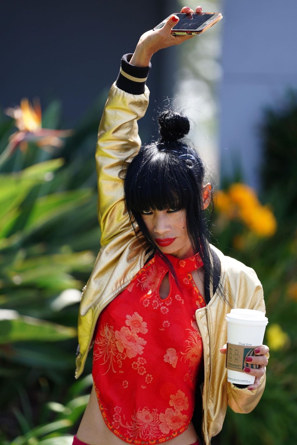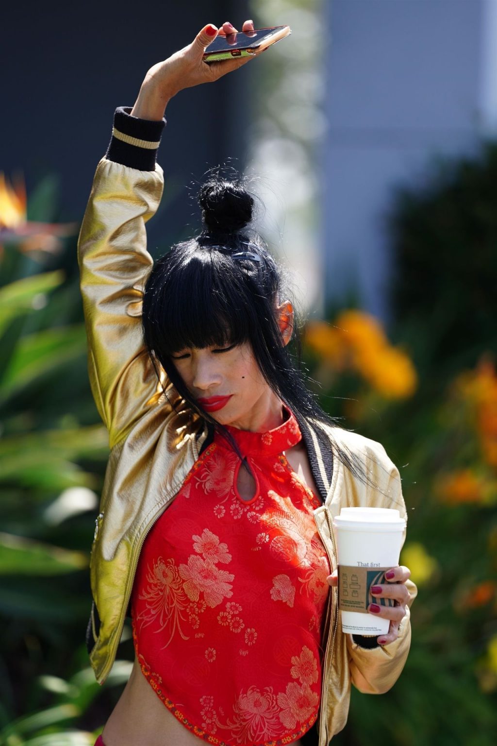 A atriz atemporal Bai Ling posa durante um ensaio fotográfico improvisado em West Hollywood, 09/07/2020.