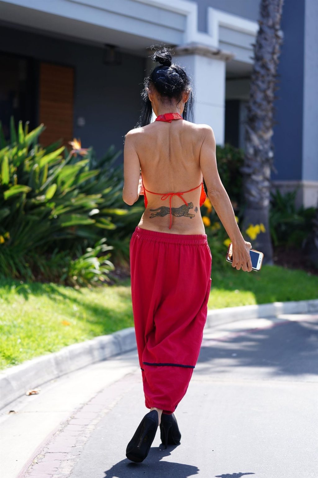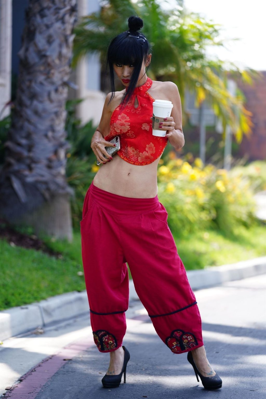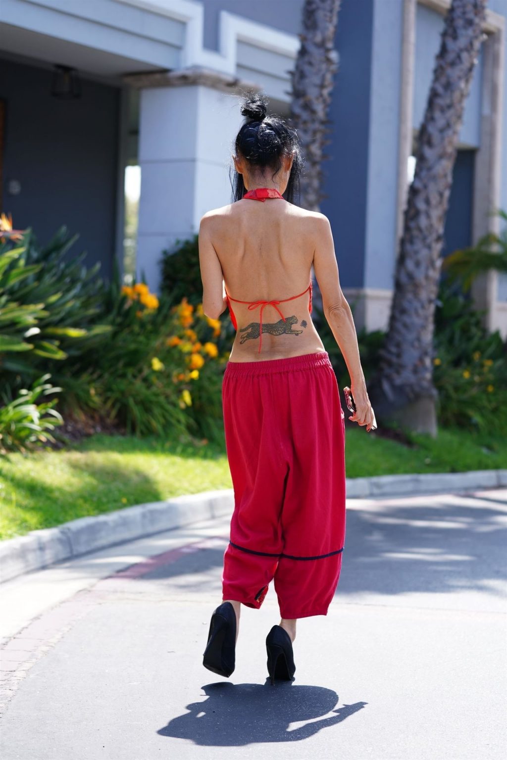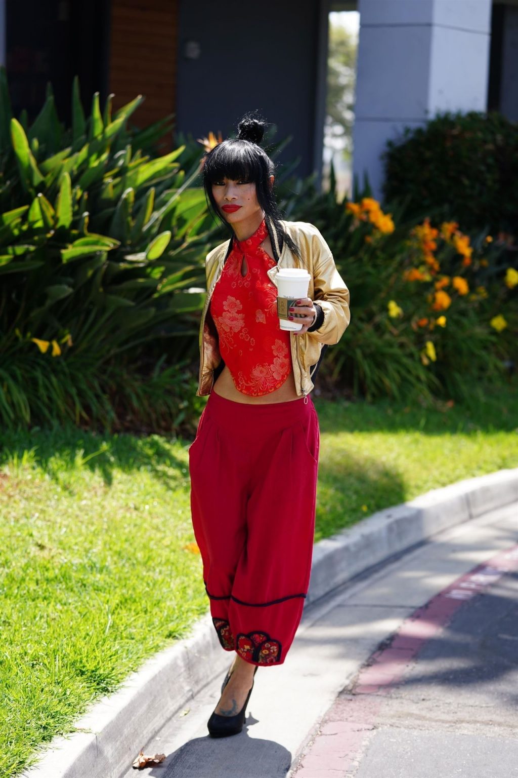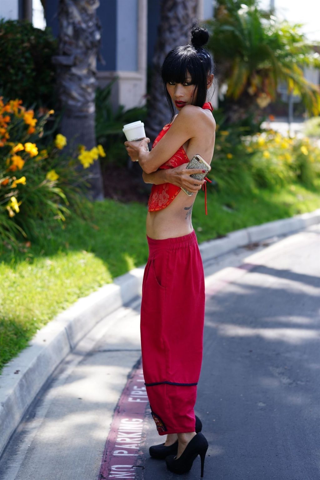 A atriz atemporal Bai Ling posa durante um ensaio fotográfico improvisado em West Hollywood, 09/07/2020.