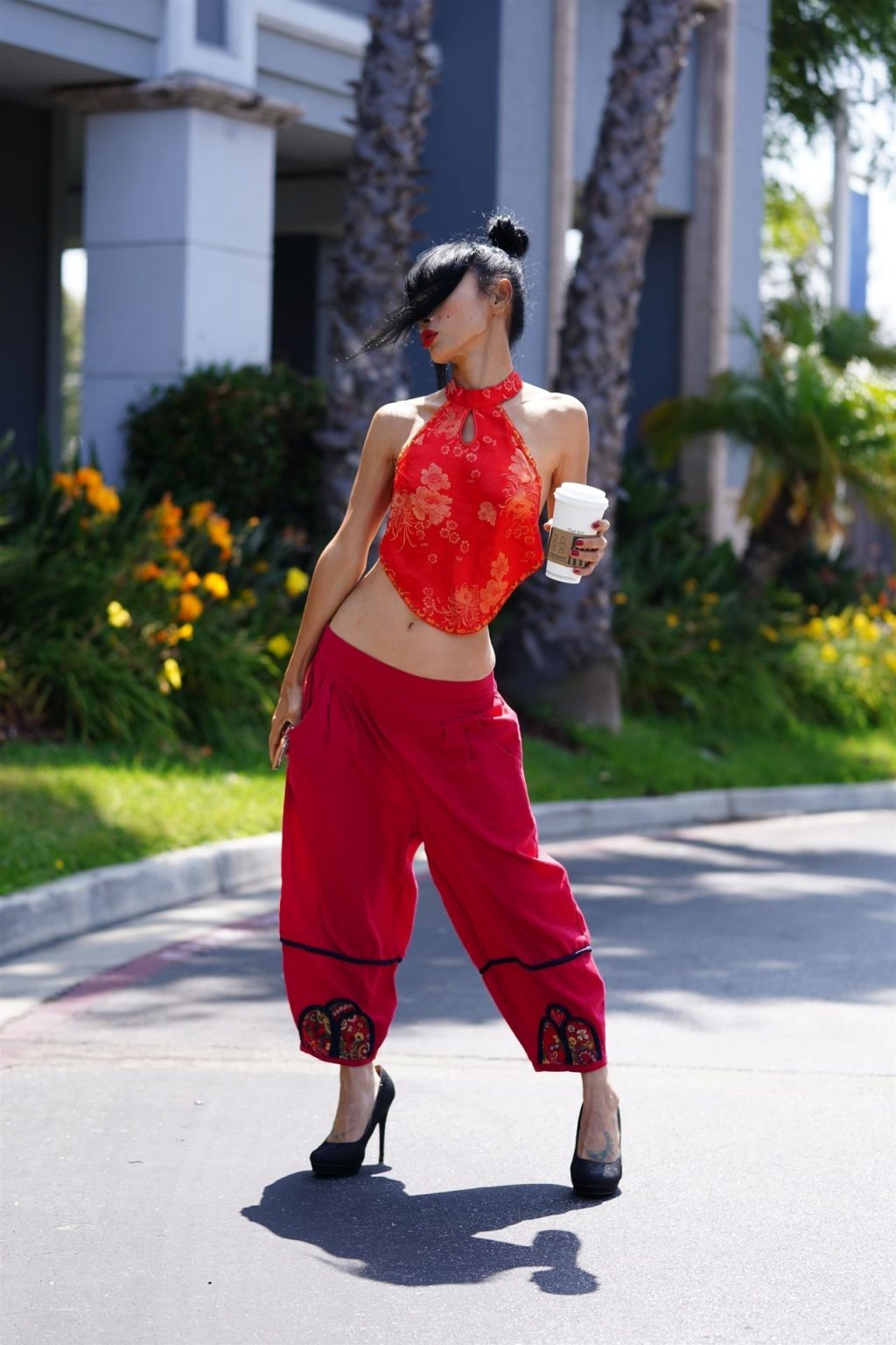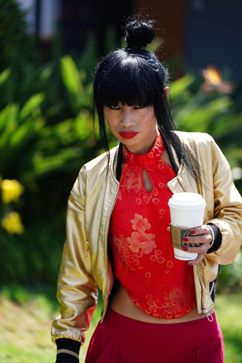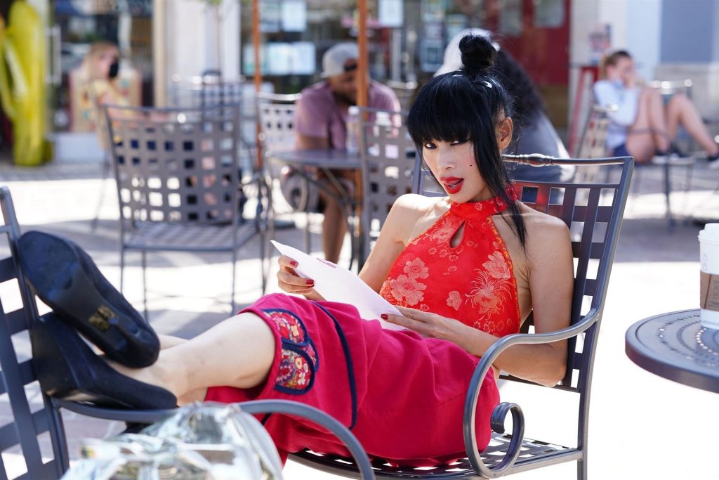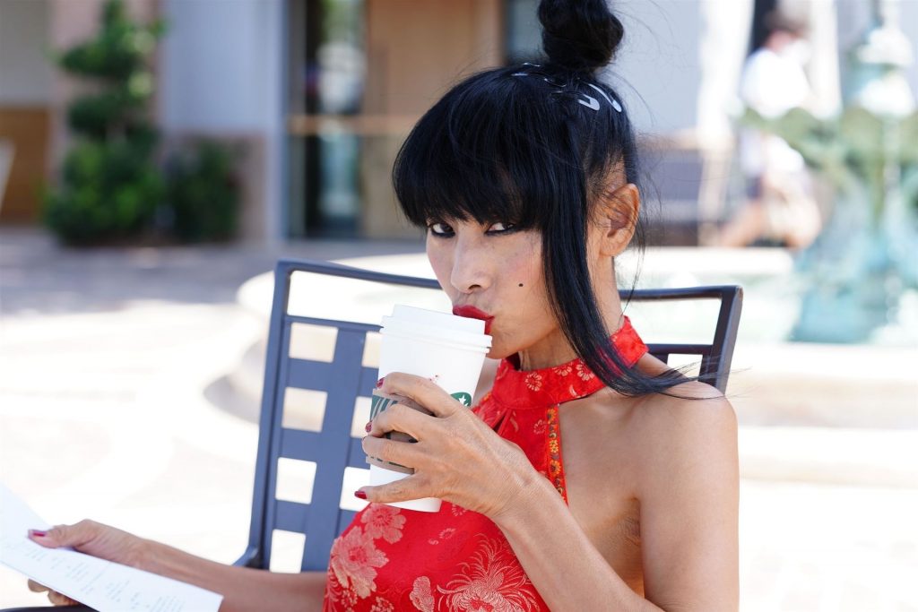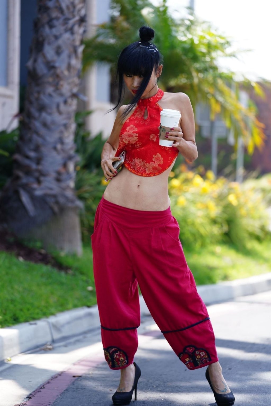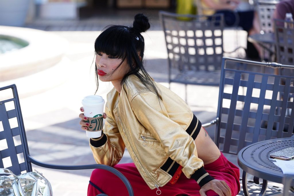 A atriz atemporal Bai Ling posa durante um ensaio fotográfico improvisado em West Hollywood, 09/07/2020.