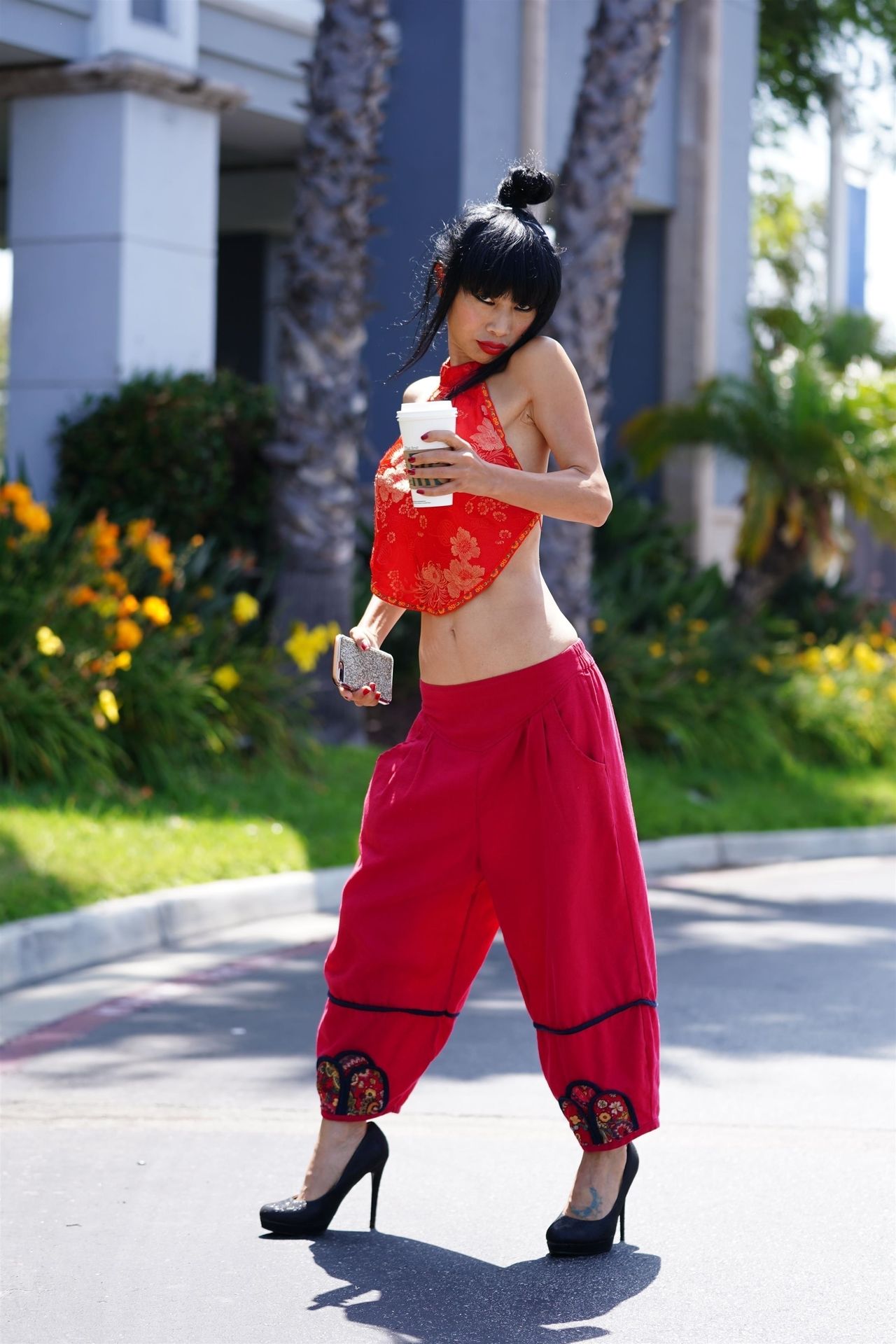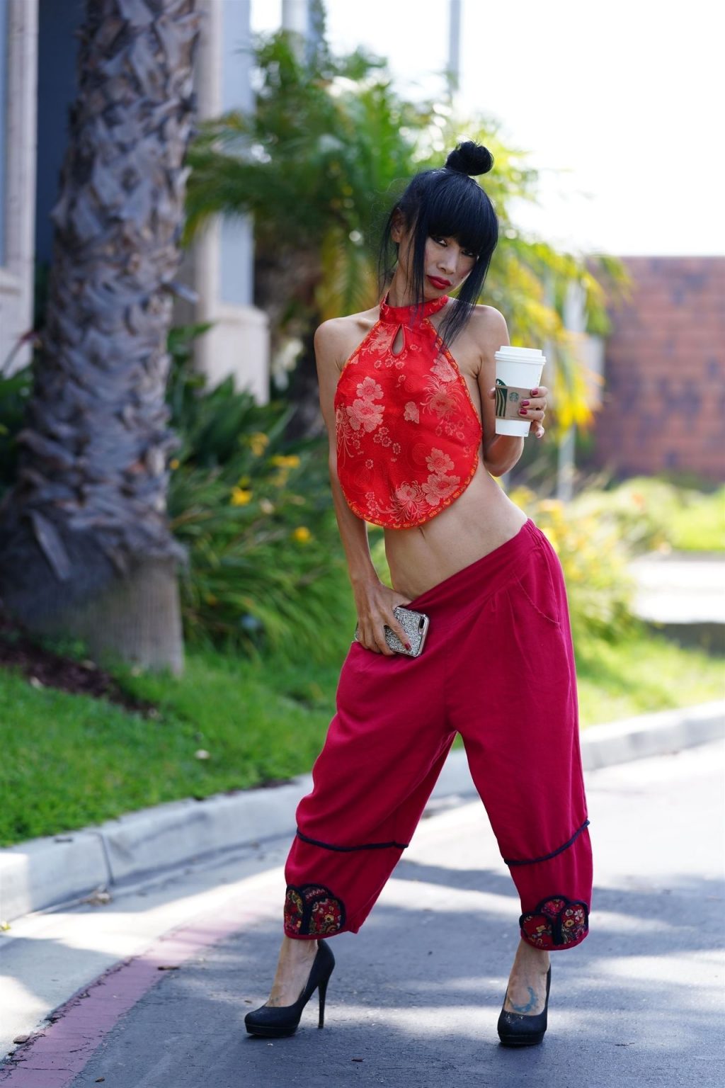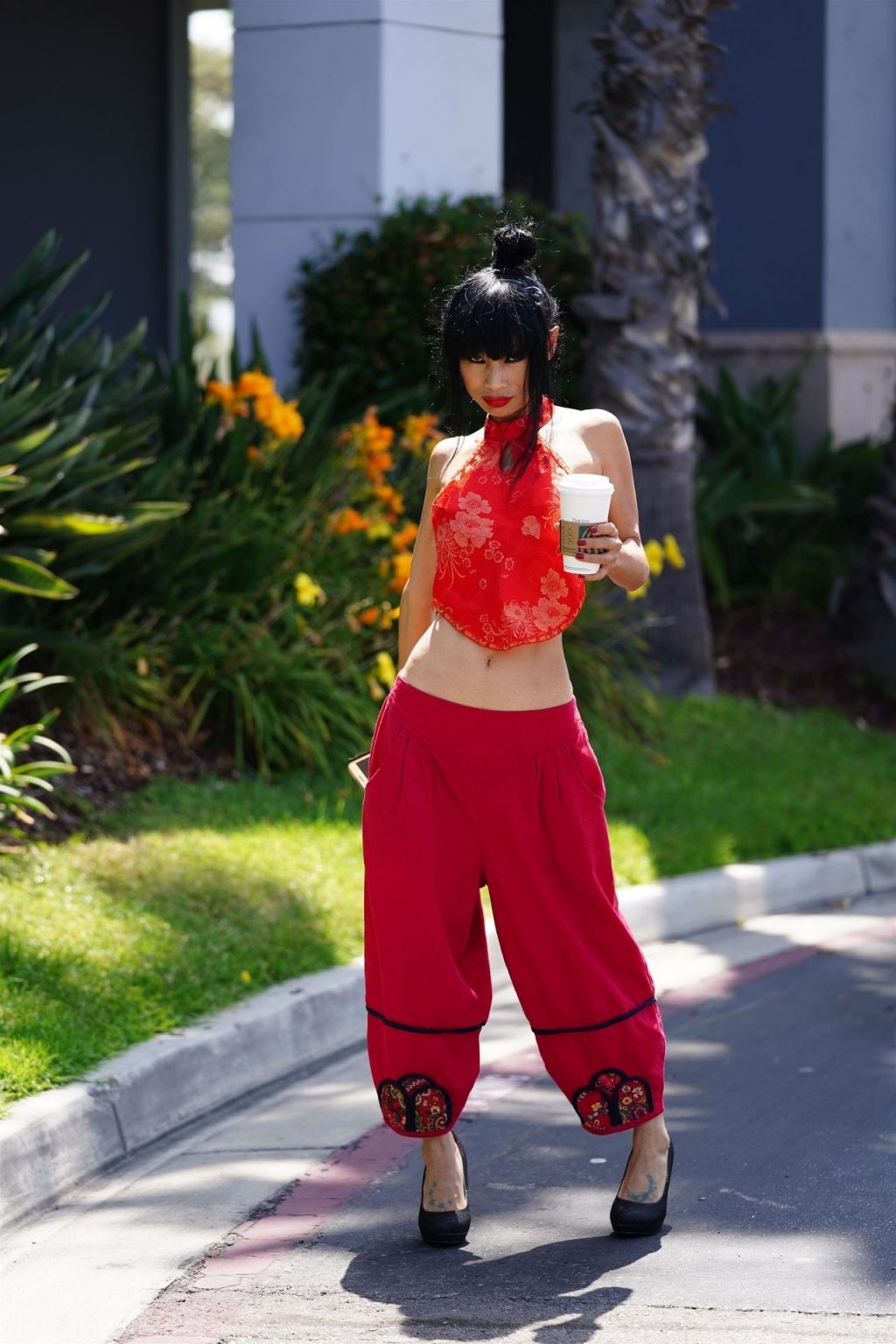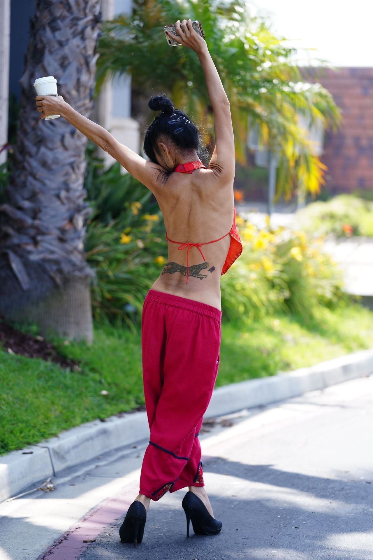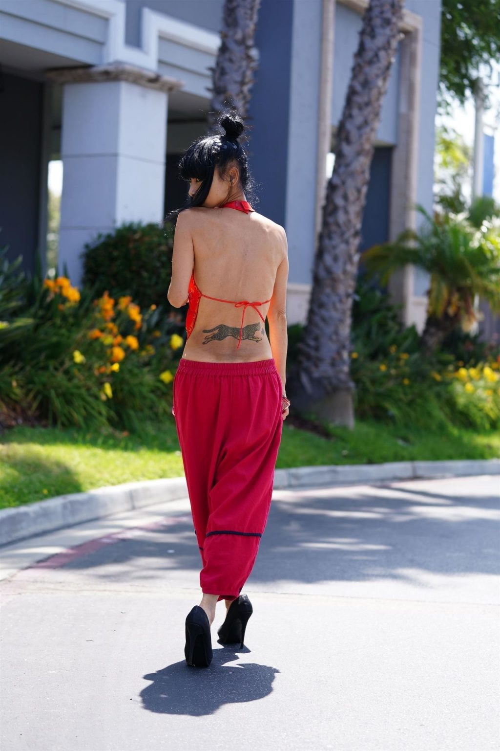 A atriz atemporal Bai Ling posa durante um ensaio fotográfico improvisado em West Hollywood, 09/07/2020.