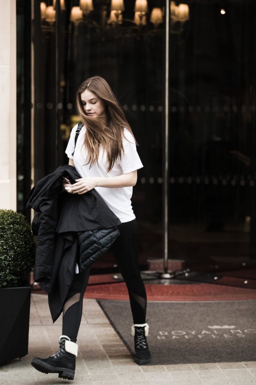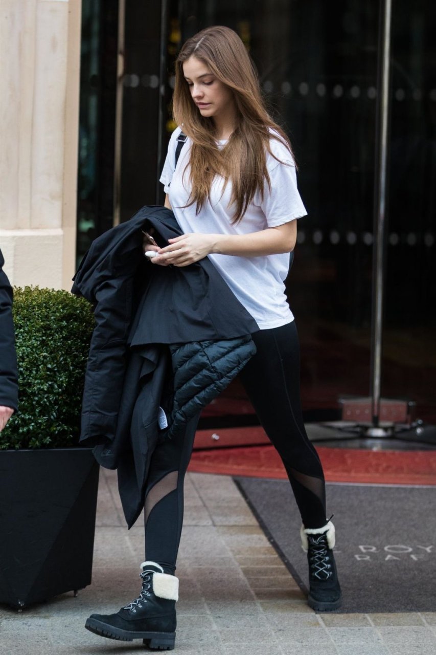 A modelo húngara e ex “Rookie do Ano” da edição 2016 da Sports Illustrated Swimsuit, Barbara Palvin, deixa o hotel Royal Monceau em Paris, 02/06/2019.