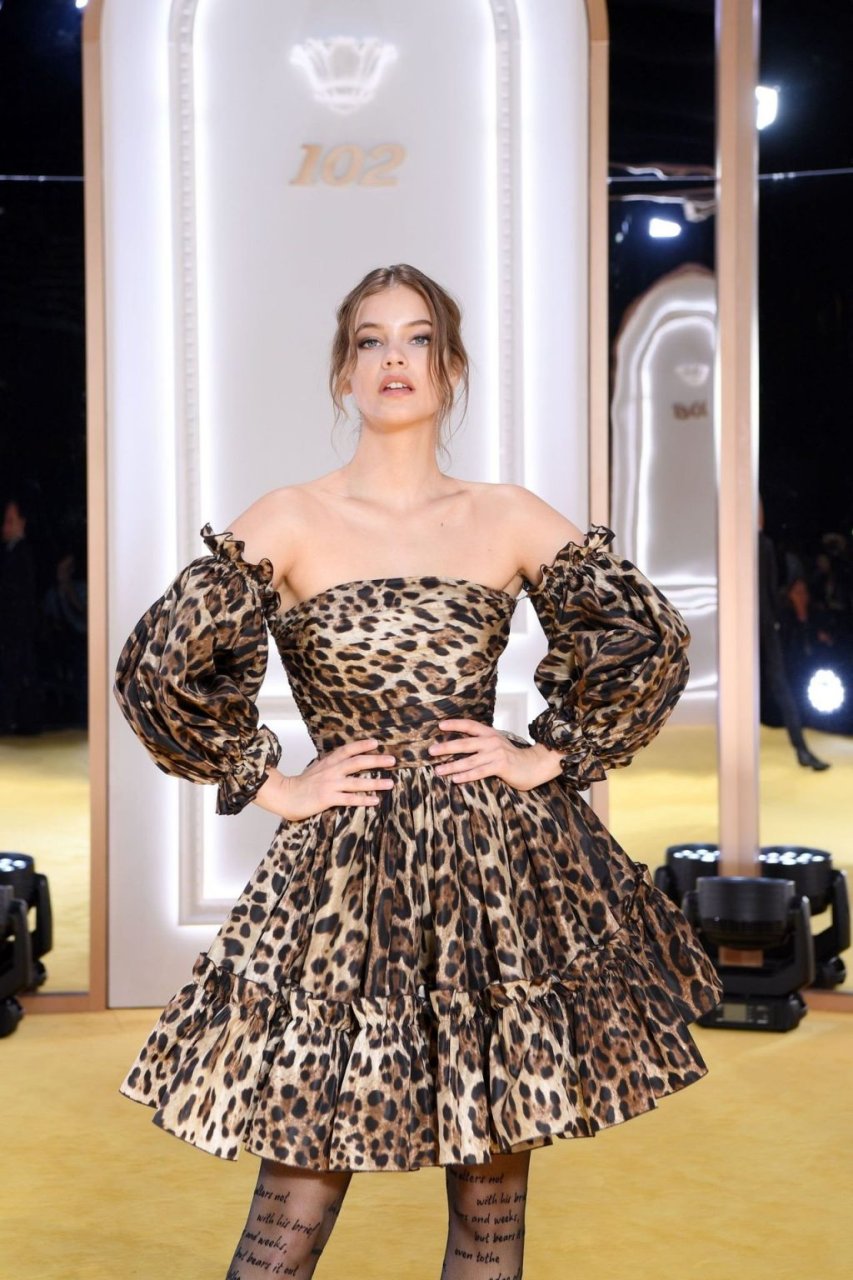Model Barbara Palvin exibiu suas pernas sexy em meia-calça com texto no Calzedonia Leg Show em Verona, Itália, 08/10/2019.