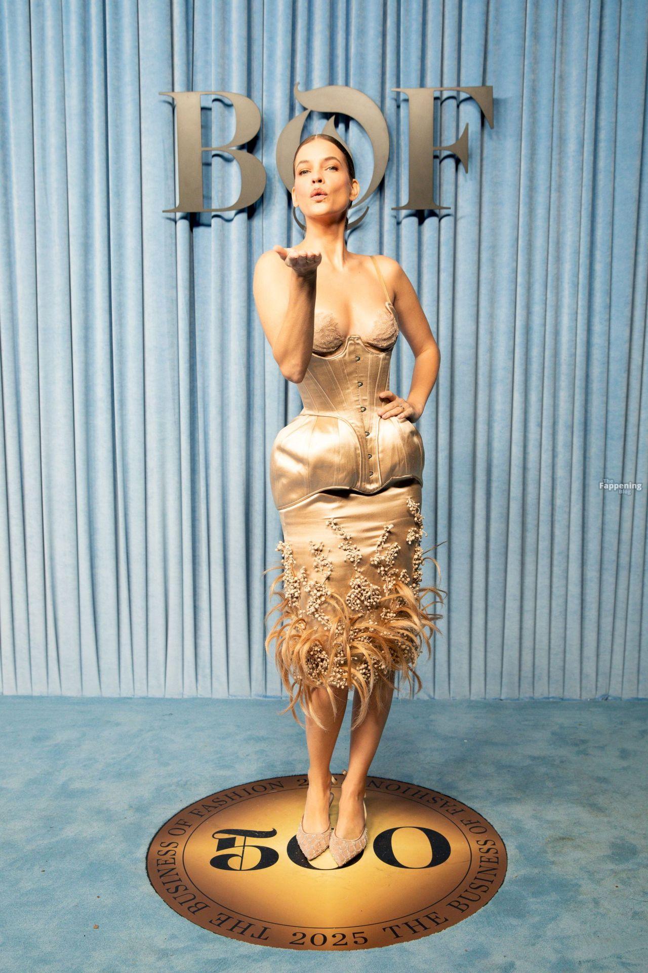 Barbara Palvin arrasou no Gala BOF 500 em Paris, usando um corpete transparente que mostrava seu decote.