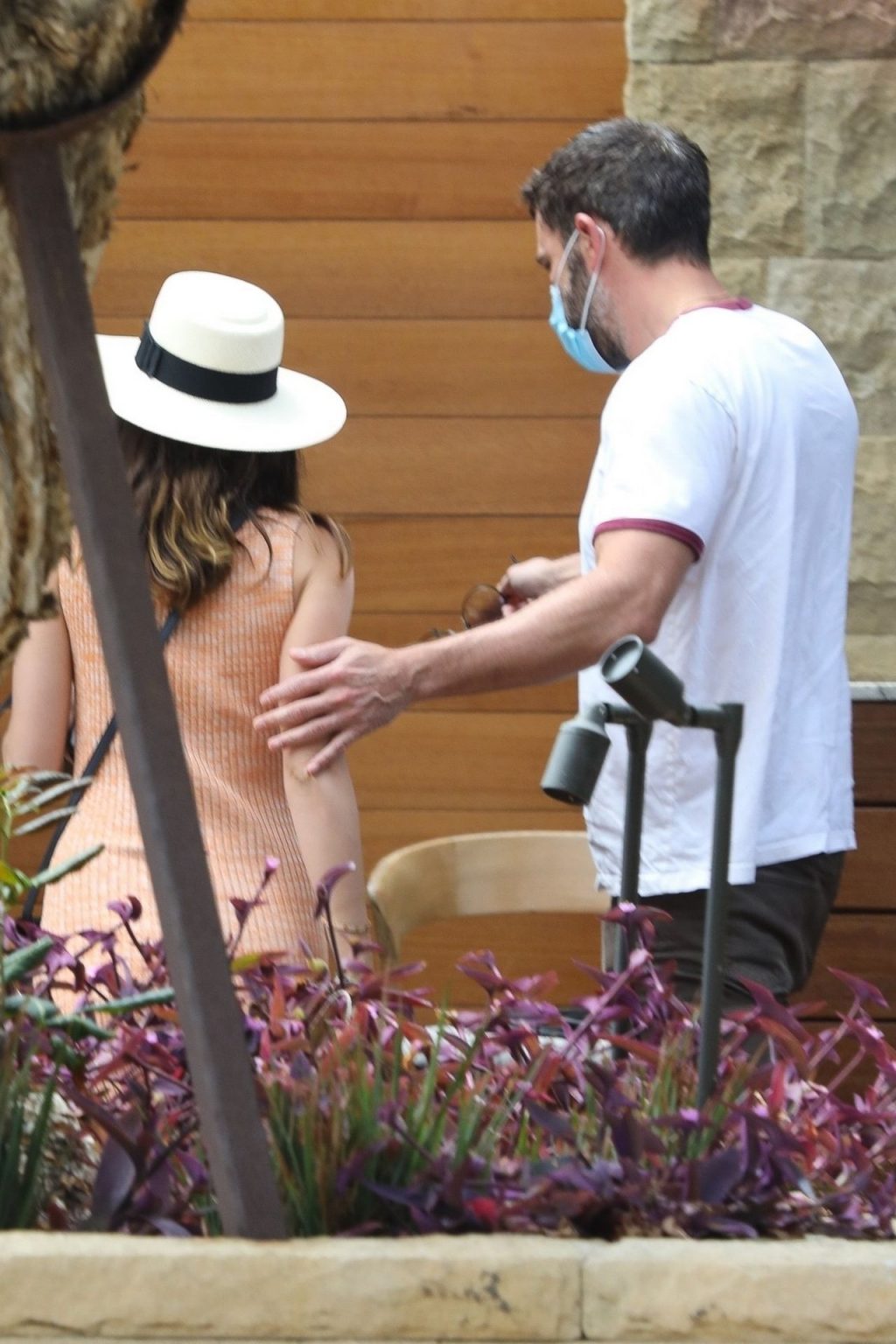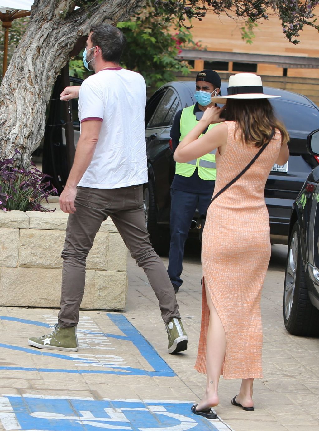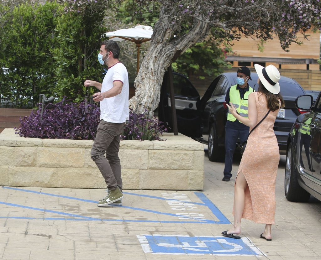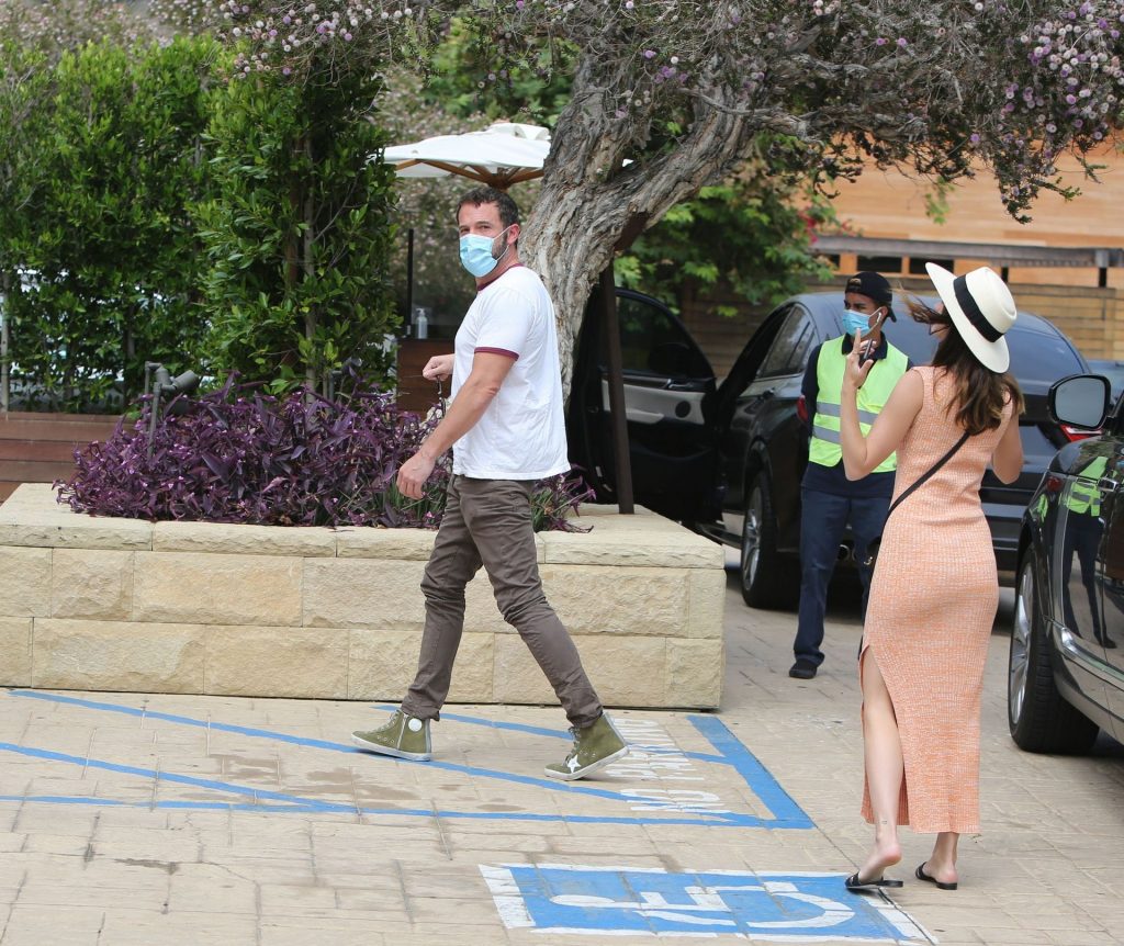 Ben Affleck leva a namorada Ana de Armas ao Nobu Malibu para um almoço antecipado de sábado (julho de 2020). A atriz cubano-espanhola quase parecia NUA em seu vestido pêssego canelado, complementado com uma bolsa transversal Saint Laurent e slides YSL. Ben estava usando tênis Golden Goose de $550. Ei, esses dois são de alta moda!