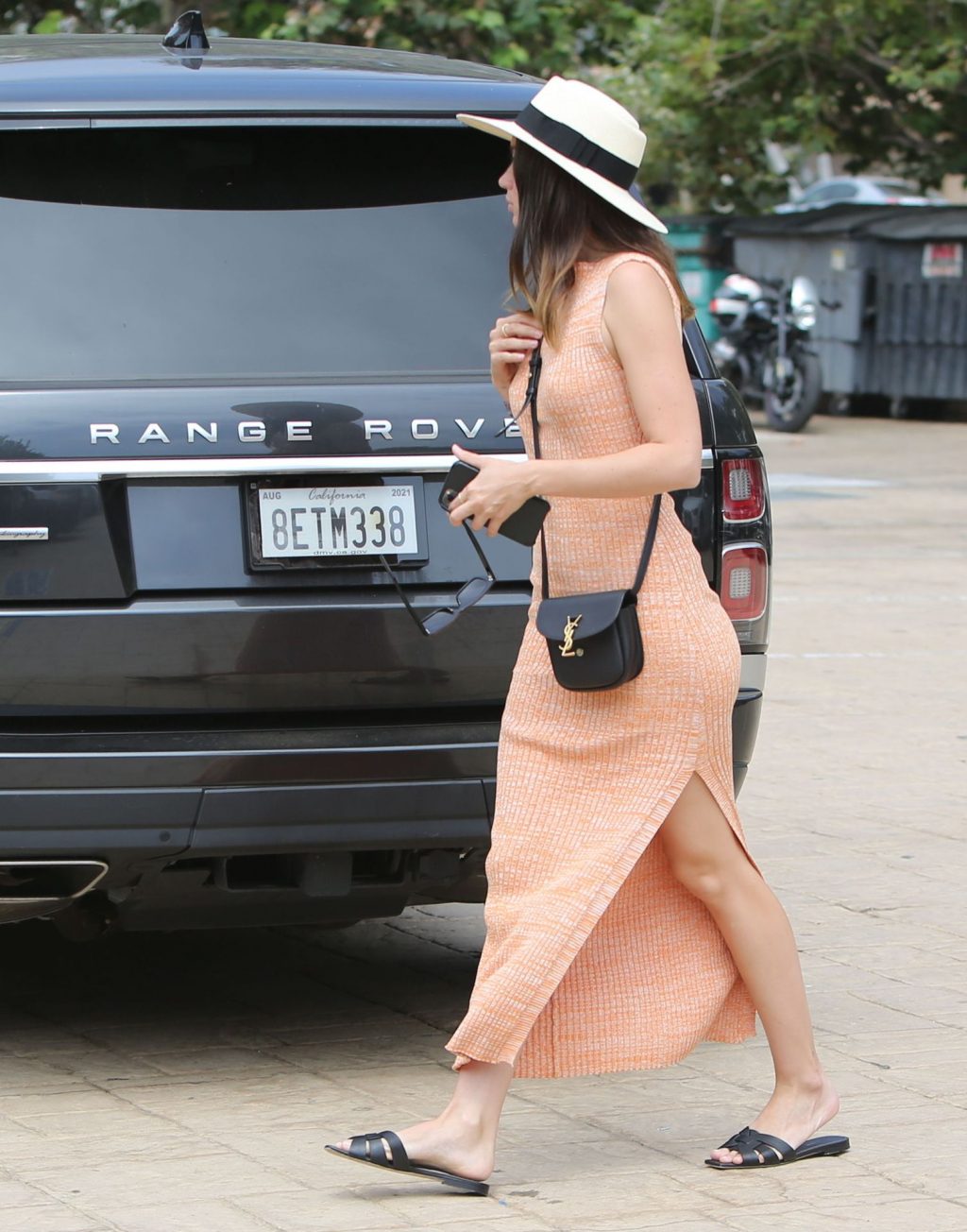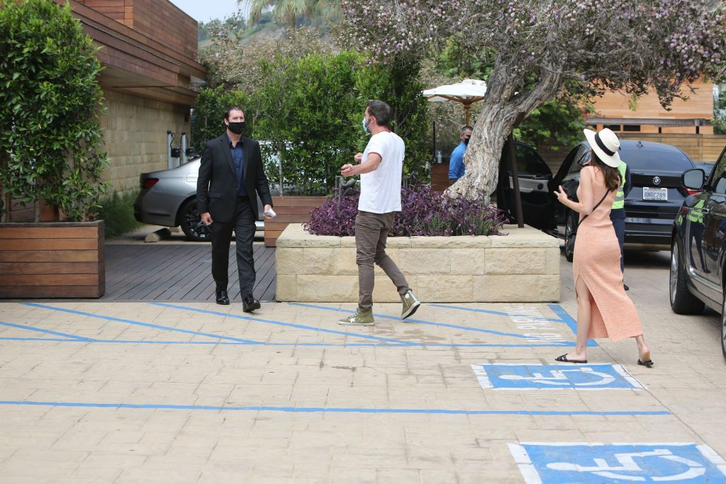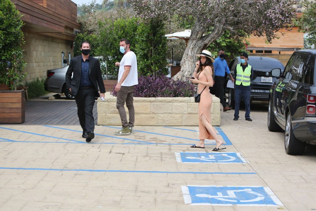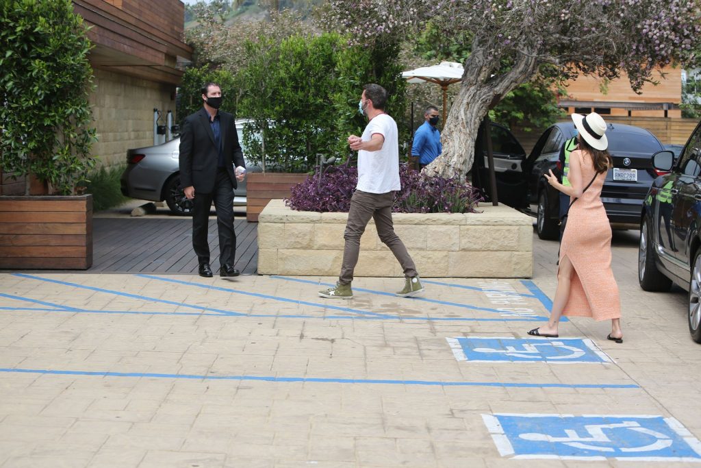 Ben Affleck leva a namorada Ana de Armas ao Nobu Malibu para um almoço antecipado de sábado (julho de 2020). A atriz cubano-espanhola quase parecia NUA em seu vestido pêssego canelado, complementado com uma bolsa transversal Saint Laurent e slides YSL. Ben estava usando tênis Golden Goose de $550. Ei, esses dois são de alta moda!