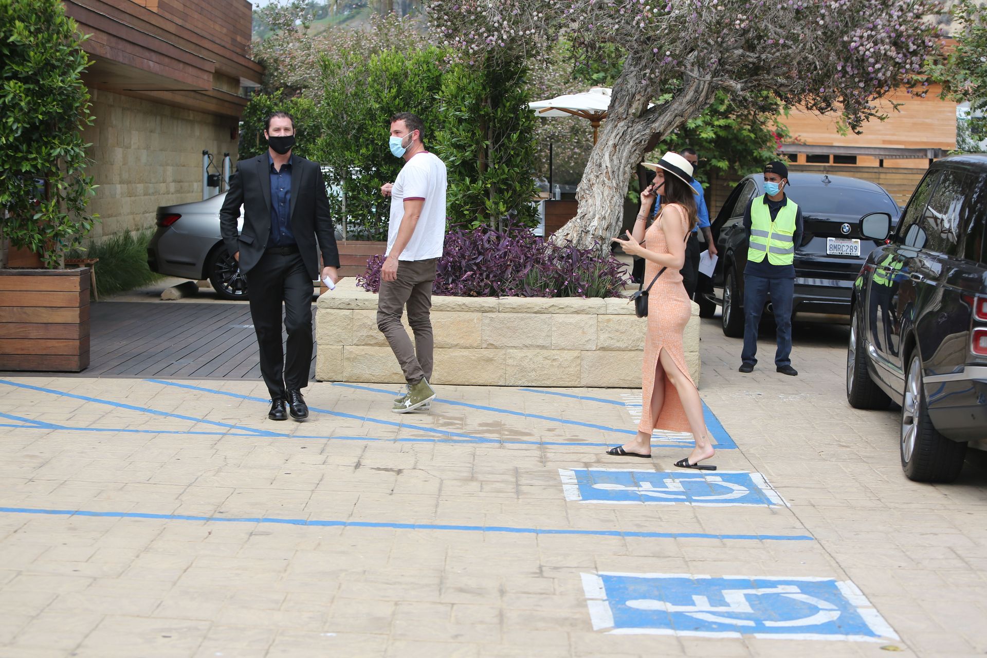 Ben Affleck leva a namorada Ana de Armas ao Nobu Malibu para um almoço antecipado de sábado (julho de 2020). A atriz cubano-espanhola quase parecia NUA em seu vestido pêssego canelado, complementado com uma bolsa transversal Saint Laurent e slides YSL. Ben estava usando tênis Golden Goose de $550. Ei, esses dois são de alta moda!