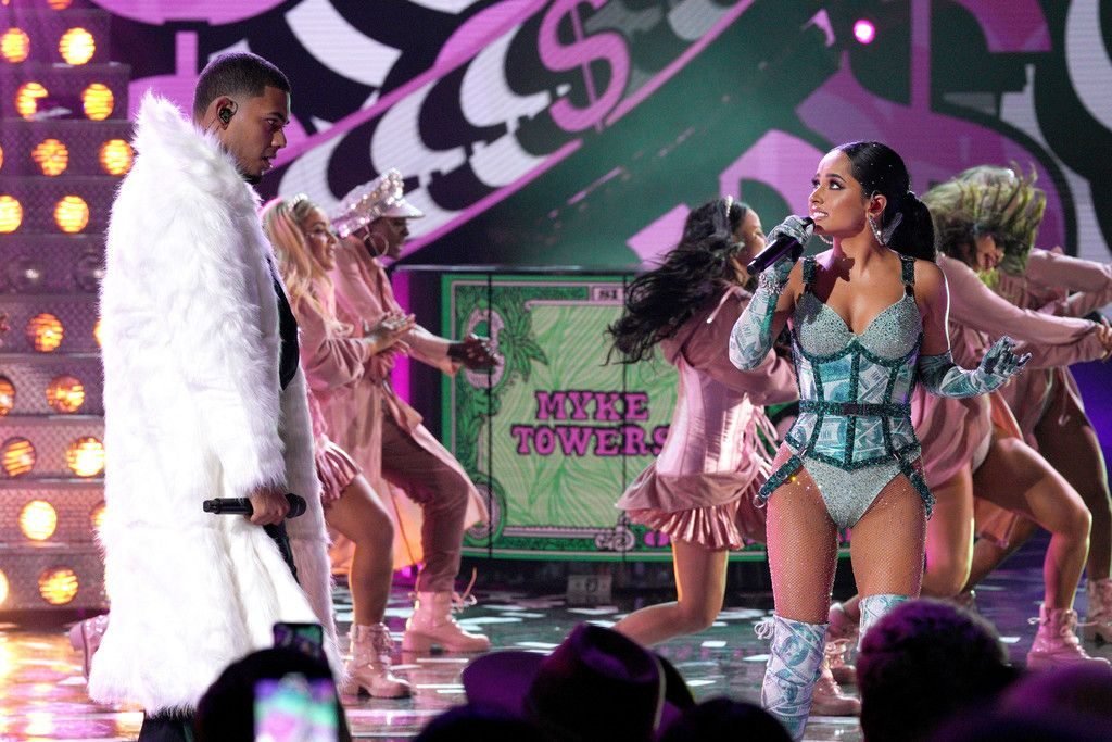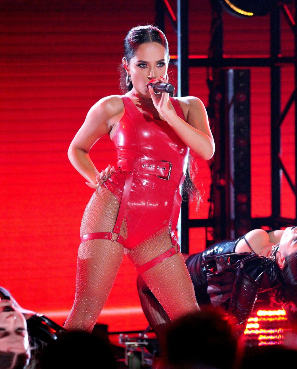 Rebbeca Marie Gomez (Becky G) se apresenta no Latin American Music Awards 2019 em Hollywood, 17/10/2019. A cantora mostrou seu bumbum sexy no palco, vestindo uma roupa vermelha justa.
