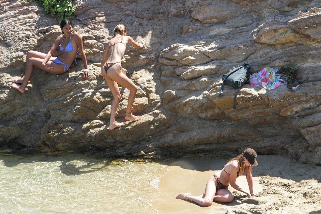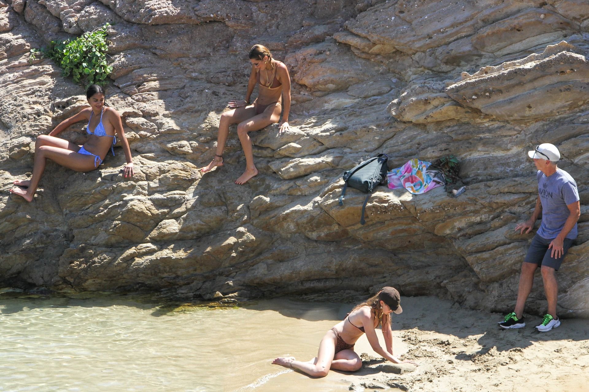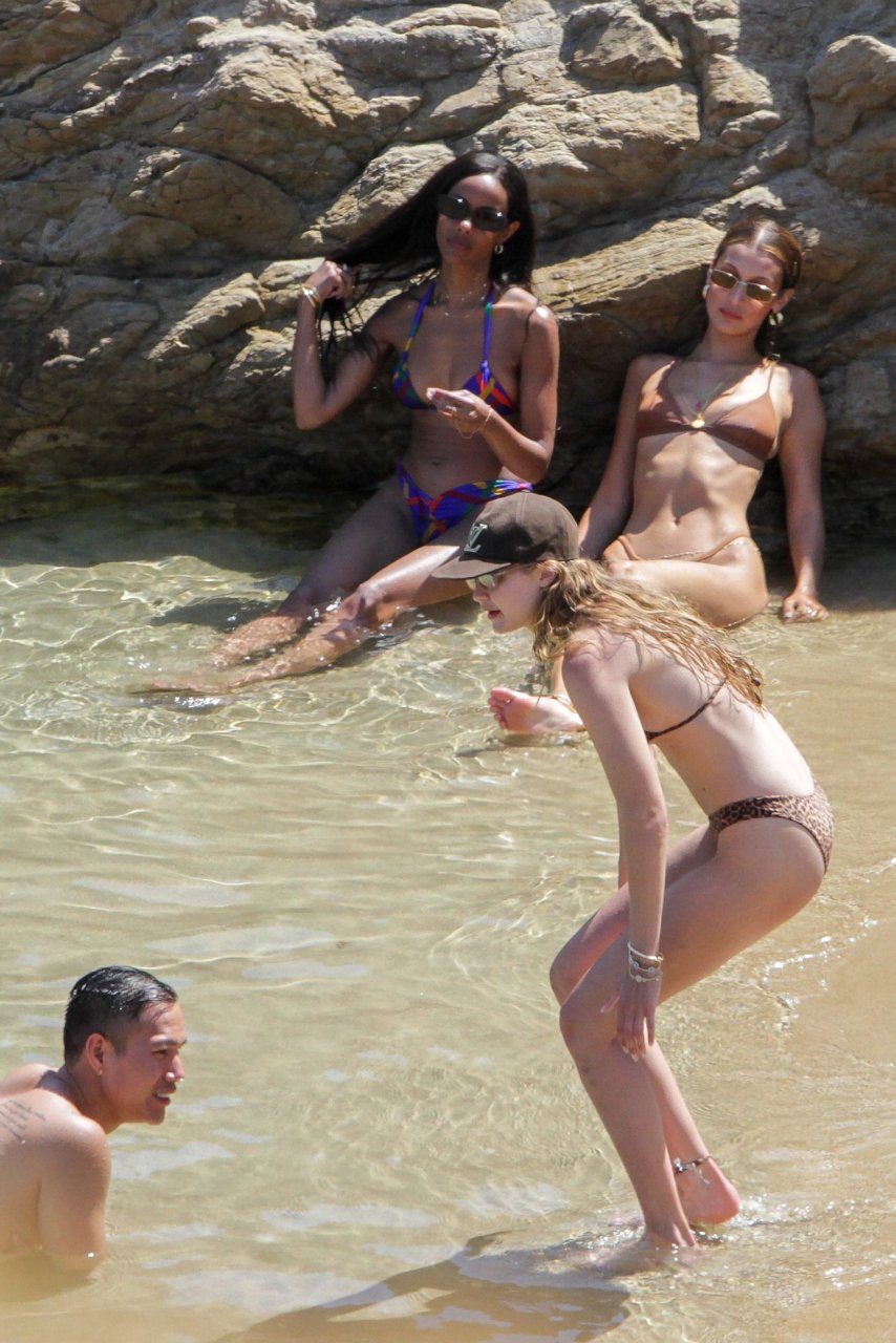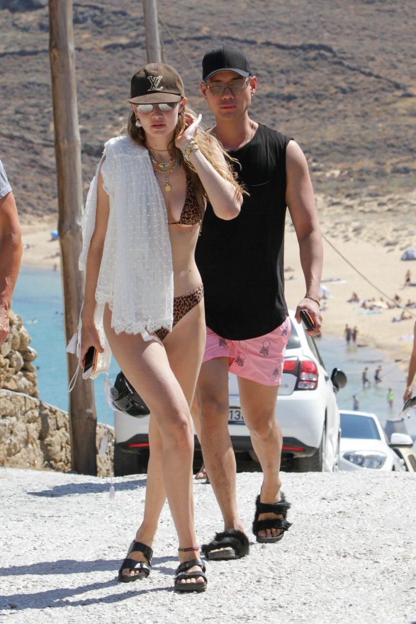 Gigi Hadid foi vista com sua irmã Bella Hadid de biquíni na Ilha de Mykonos, Grécia, 29/07/2019.