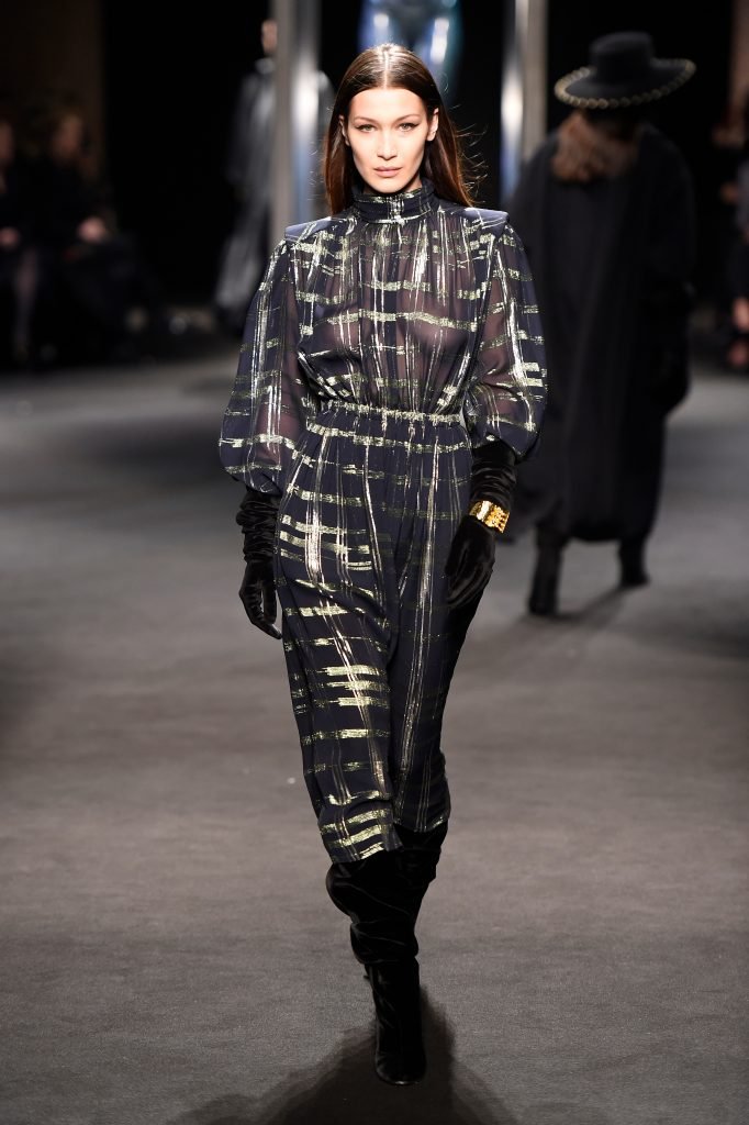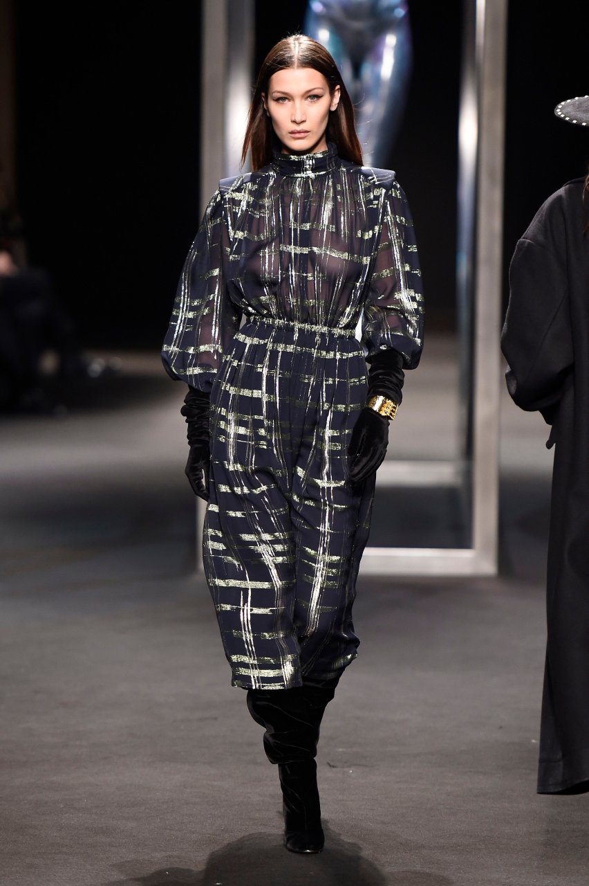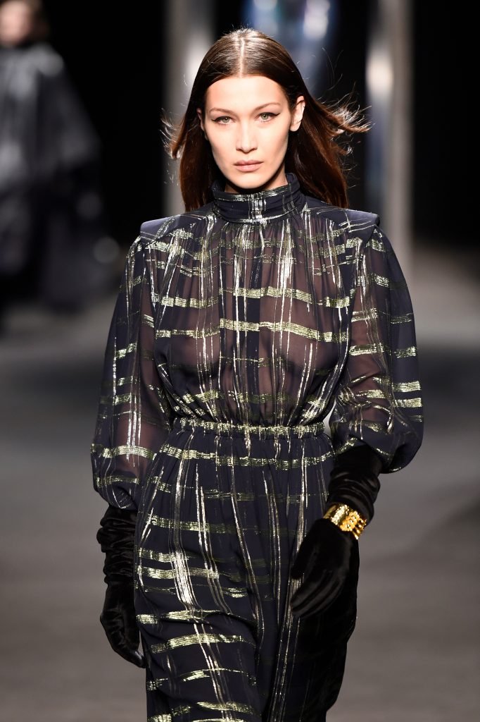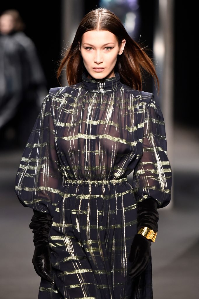 Model Bella Hadid desfila na passarela durante o Alberta Ferretti Outono/Inverno 2018/2019 em Milão, 21/02/2018.