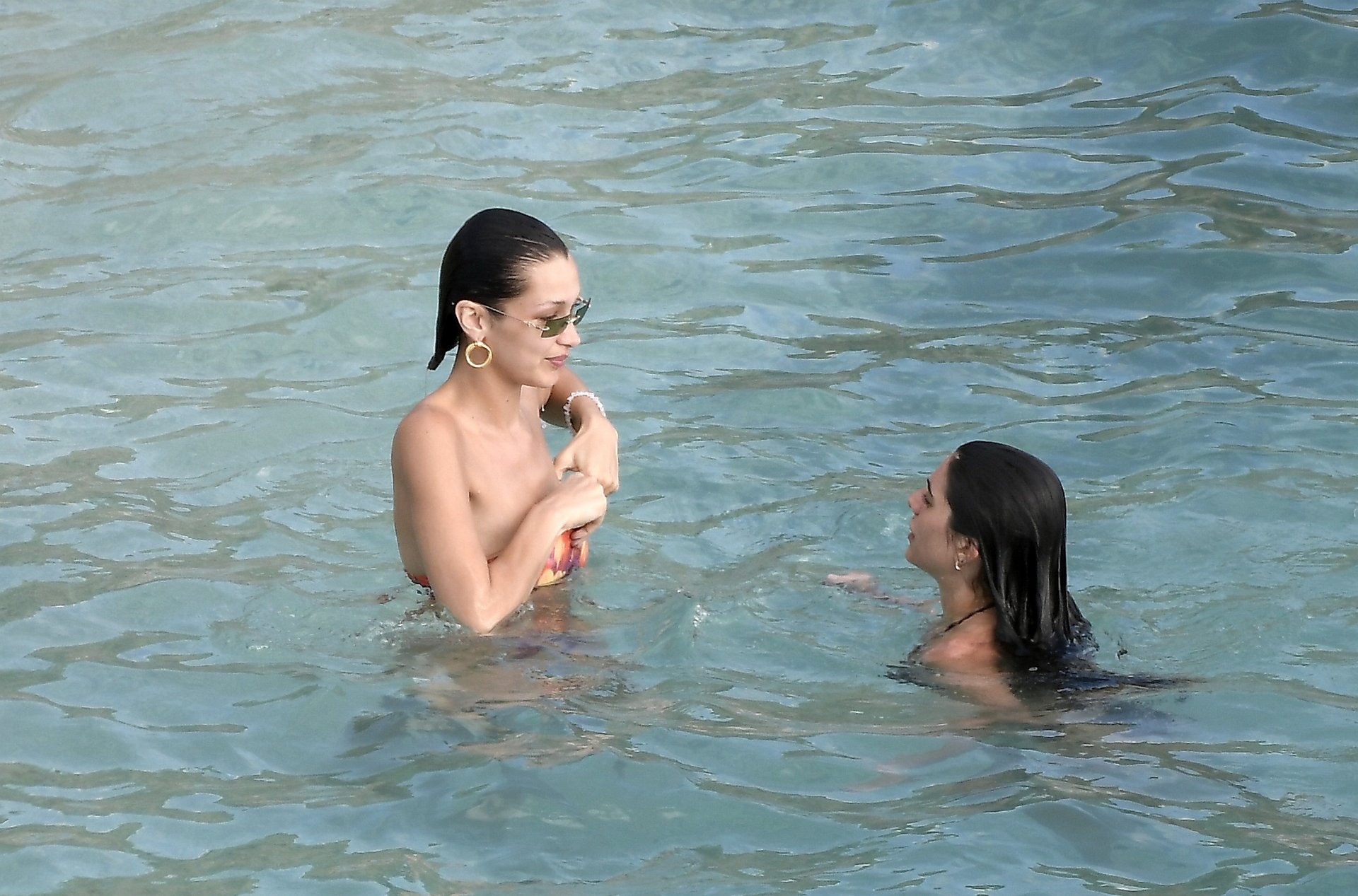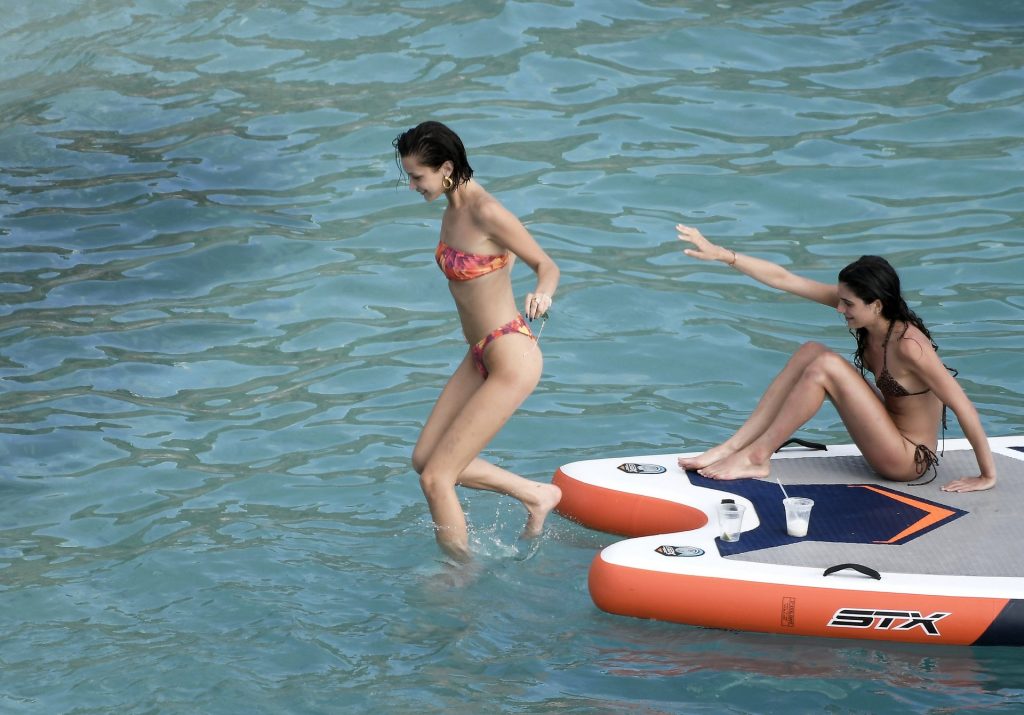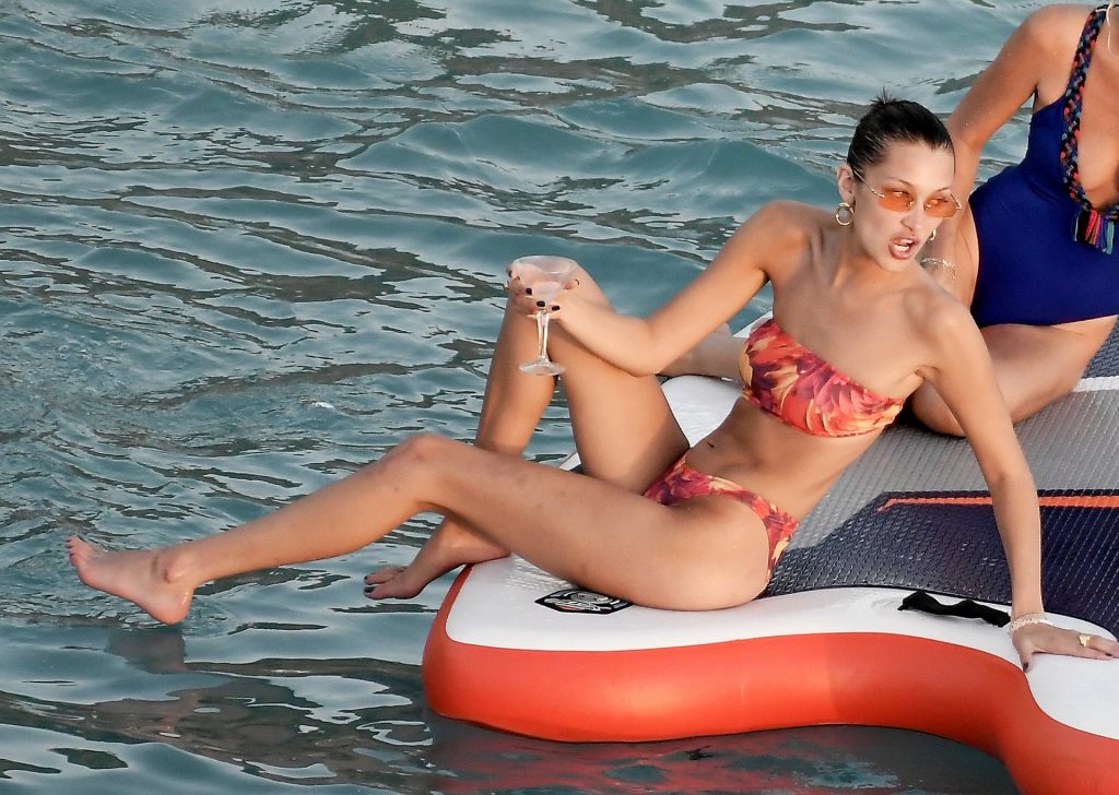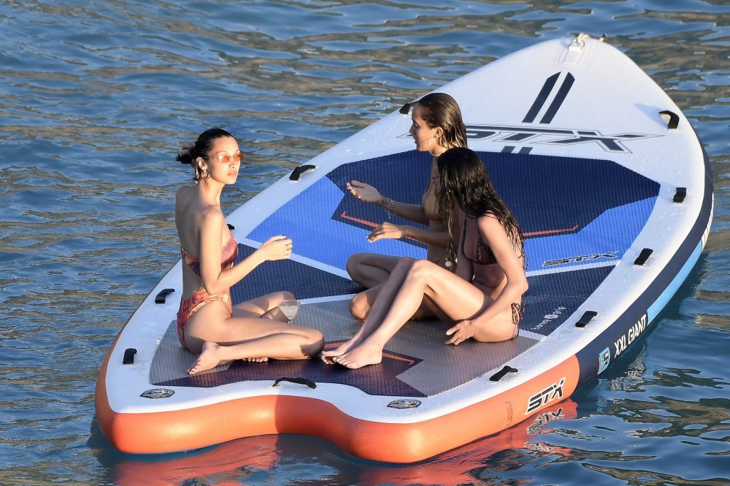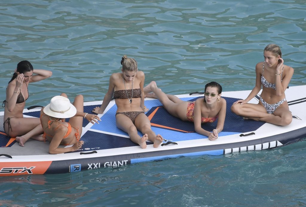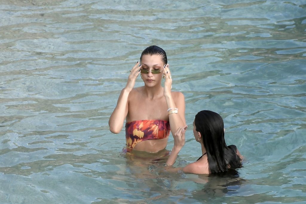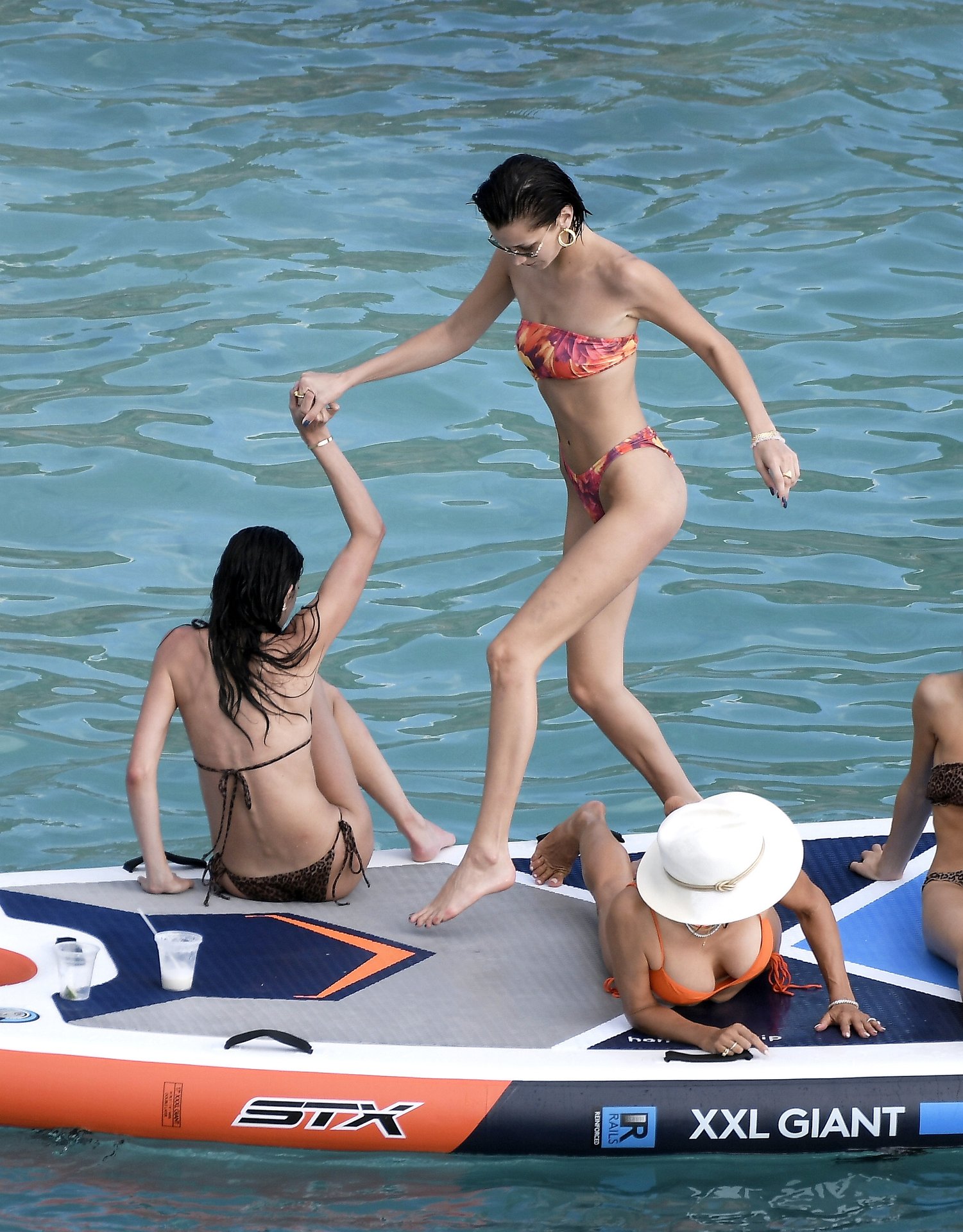 Bella Hadid exibe seu físico incrível em um biquíni minúsculo enquanto aproveita o sol do Caribe com amigos incluindo Jesse Jo Stark, Jordan Barrett, Devon Carlson e Lauren Perez em St Barths, 12/07/2019.