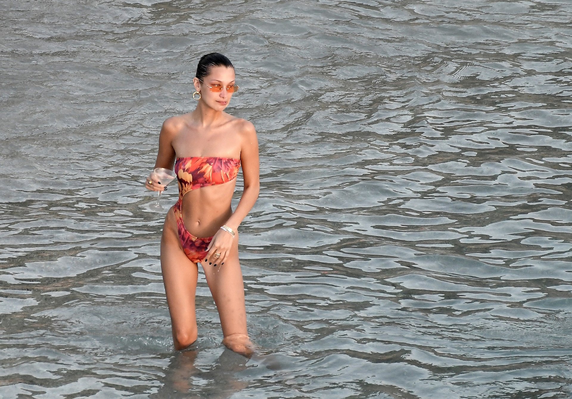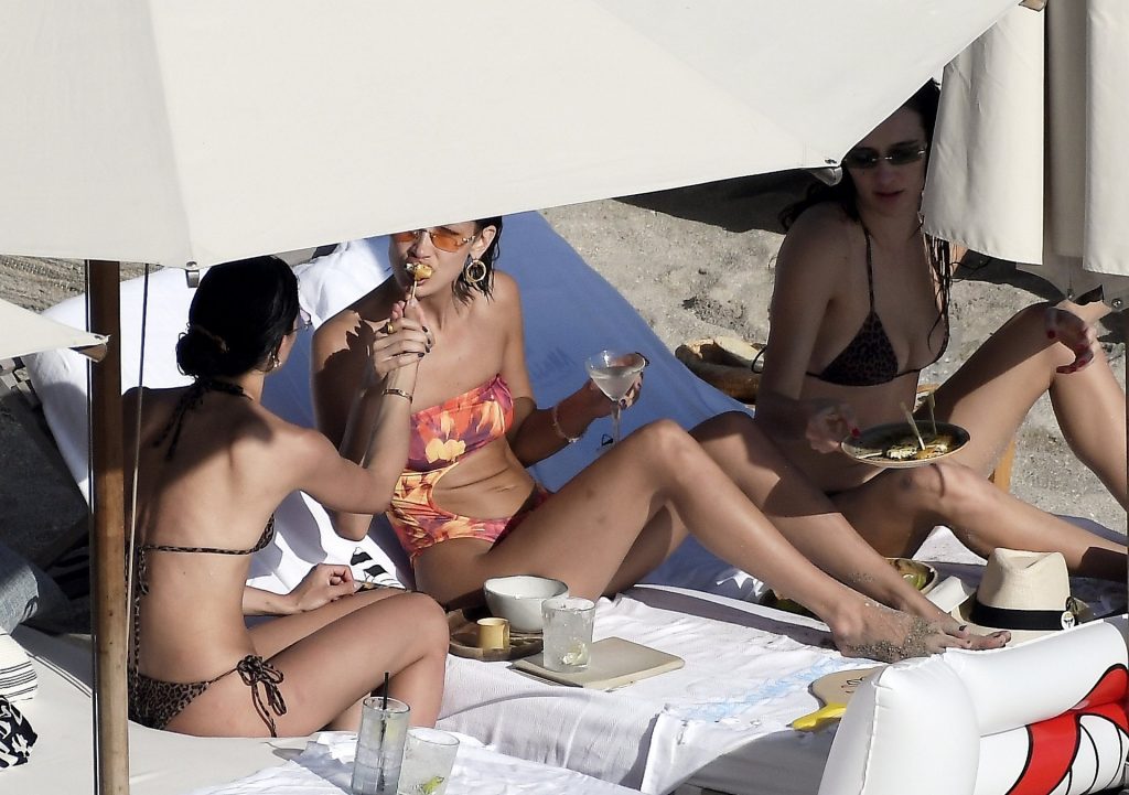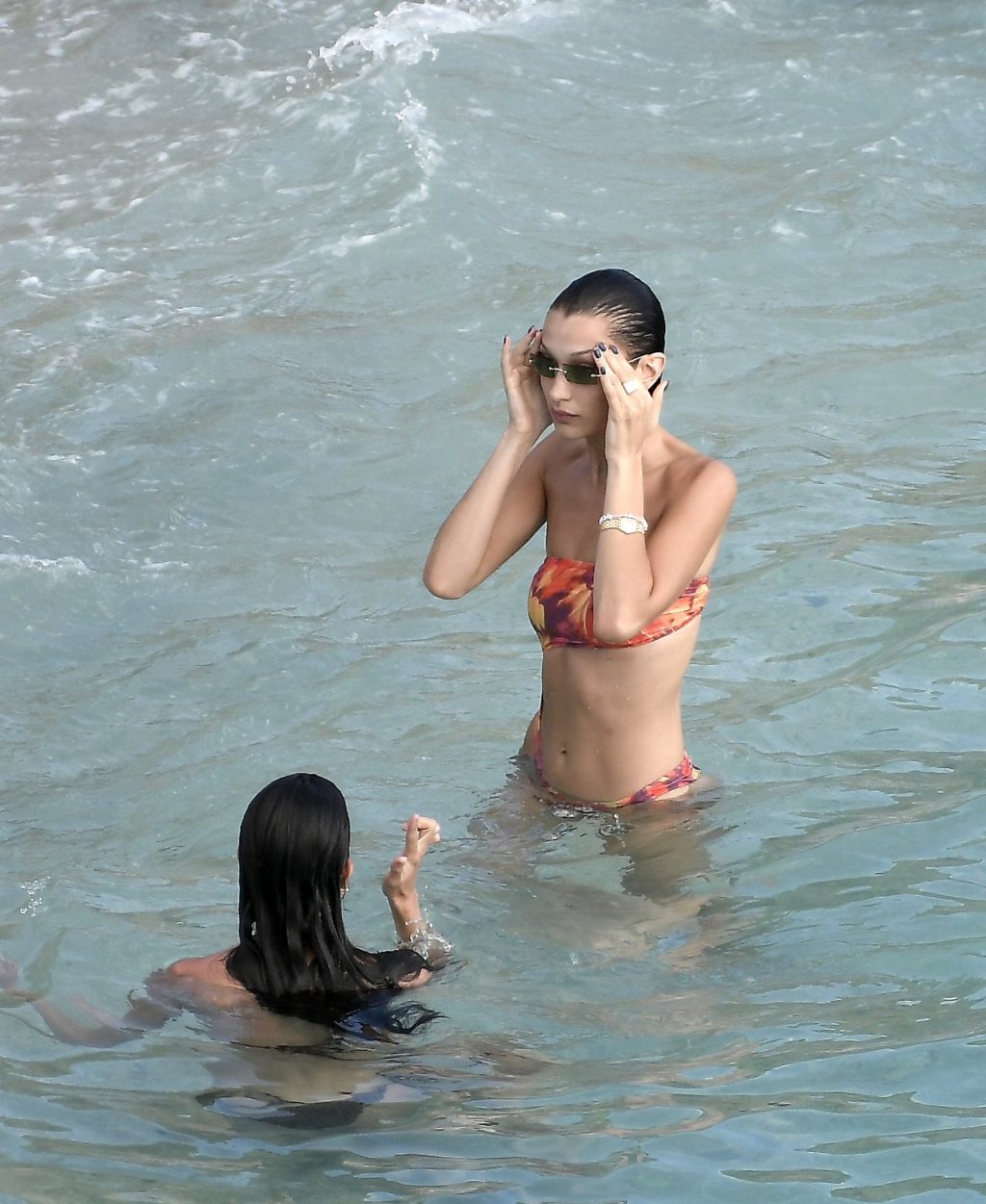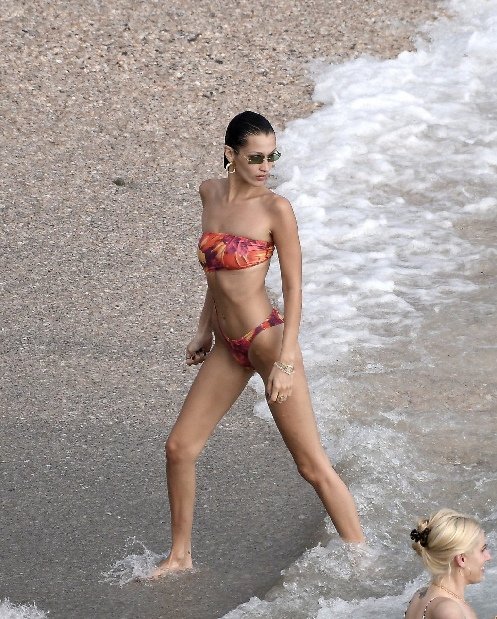 Bella Hadid exibe seu físico incrível em um biquíni minúsculo enquanto aproveita o sol do Caribe com amigos incluindo Jesse Jo Stark, Jordan Barrett, Devon Carlson e Lauren Perez em St Barths, 12/07/2019.