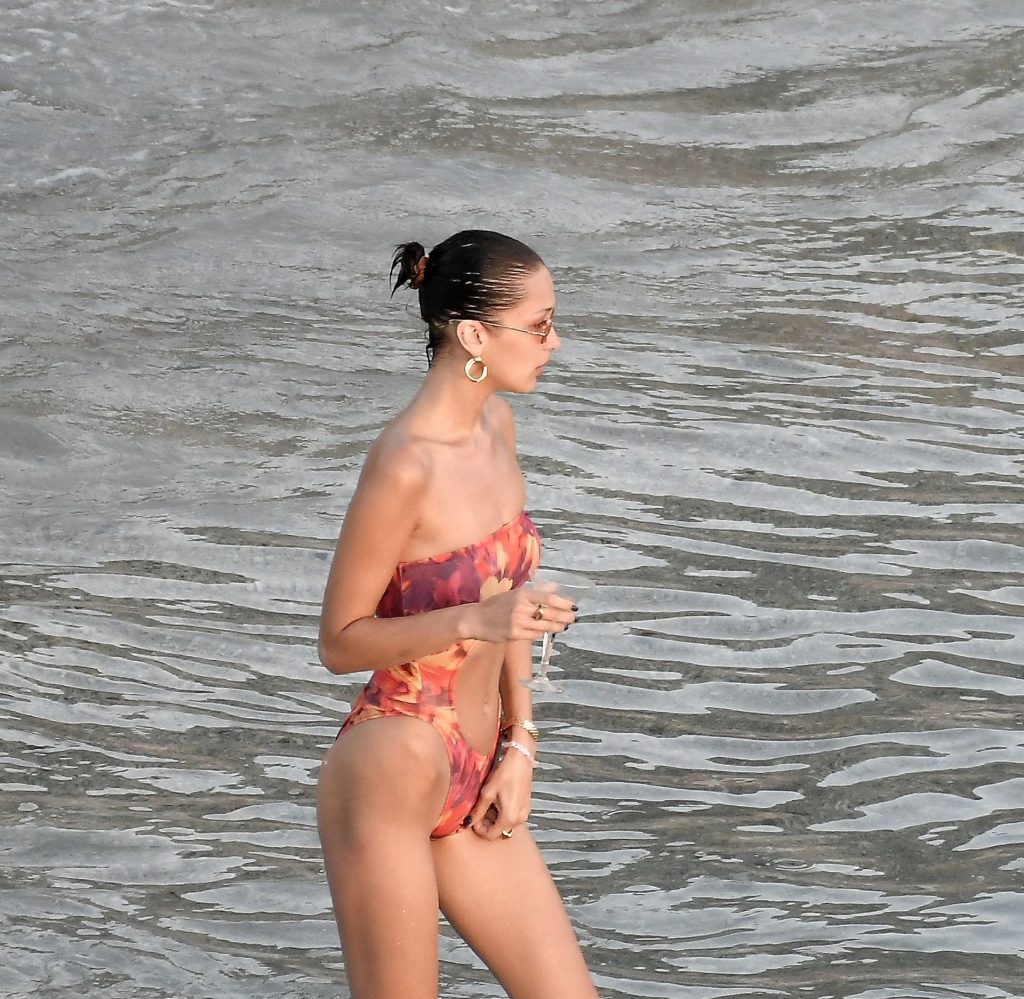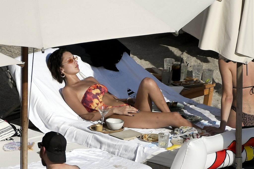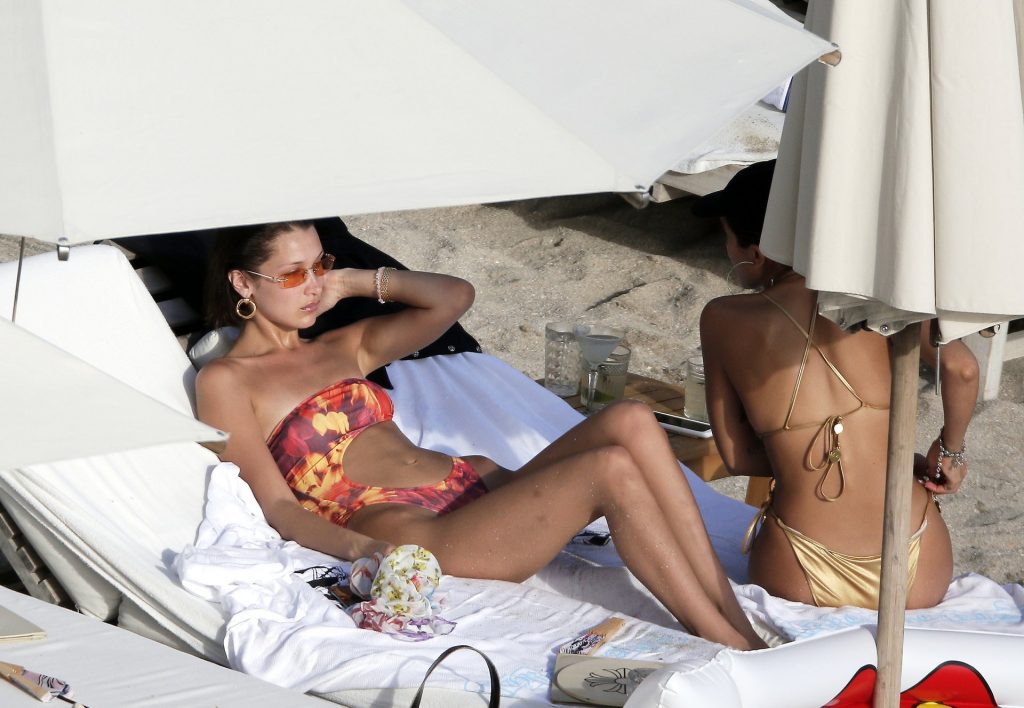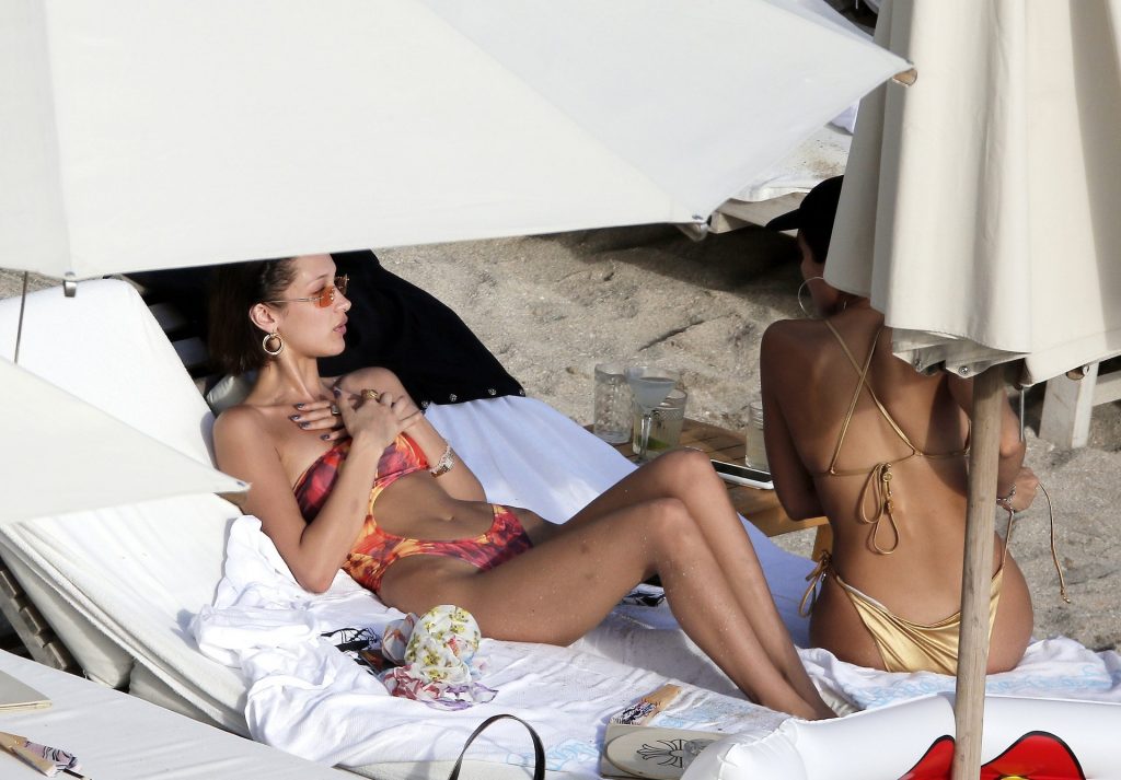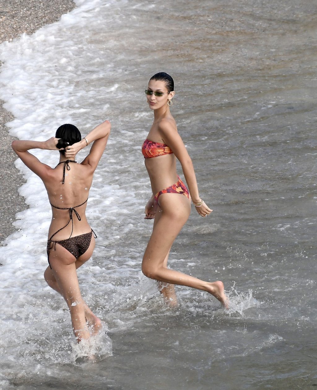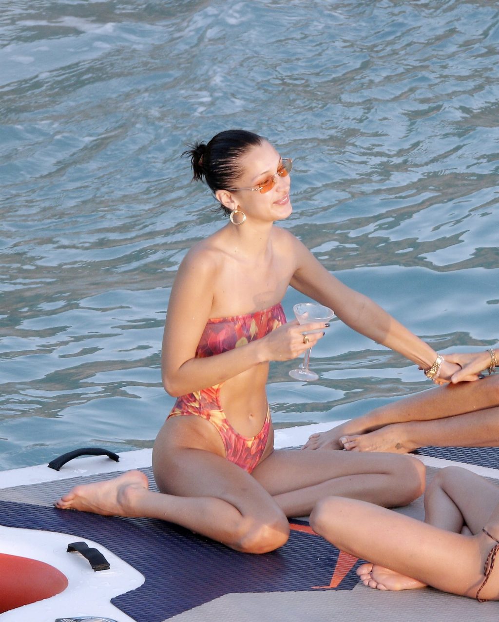 Bella Hadid exibe seu físico incrível em um biquíni minúsculo enquanto aproveita o sol do Caribe com amigos incluindo Jesse Jo Stark, Jordan Barrett, Devon Carlson e Lauren Perez em St Barths, 12/07/2019.