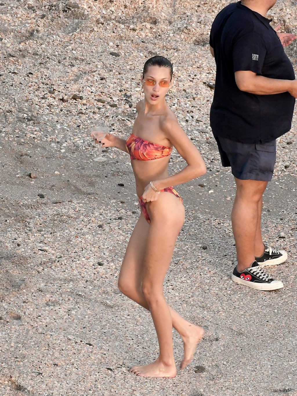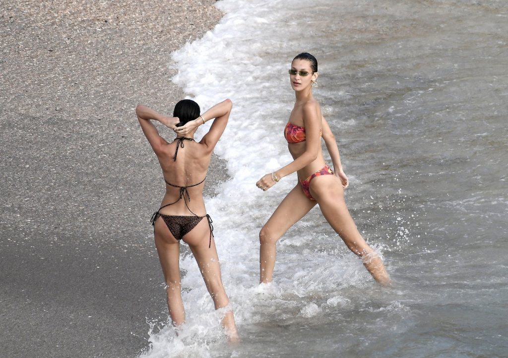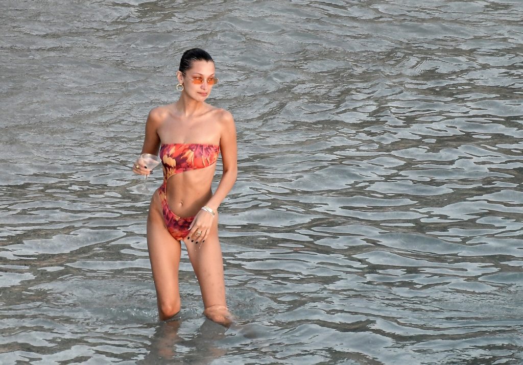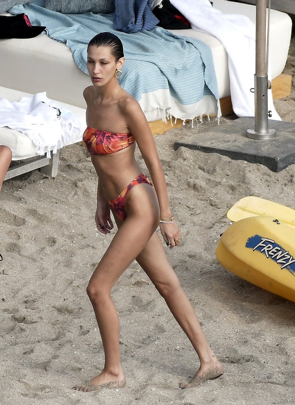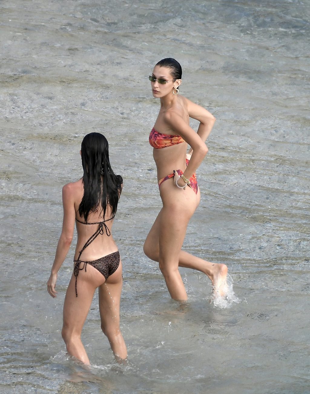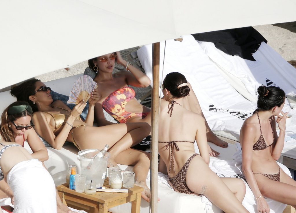 Bella Hadid exibe seu físico incrível em um biquíni minúsculo enquanto aproveita o sol do Caribe com amigos incluindo Jesse Jo Stark, Jordan Barrett, Devon Carlson e Lauren Perez em St Barths, 12/07/2019.